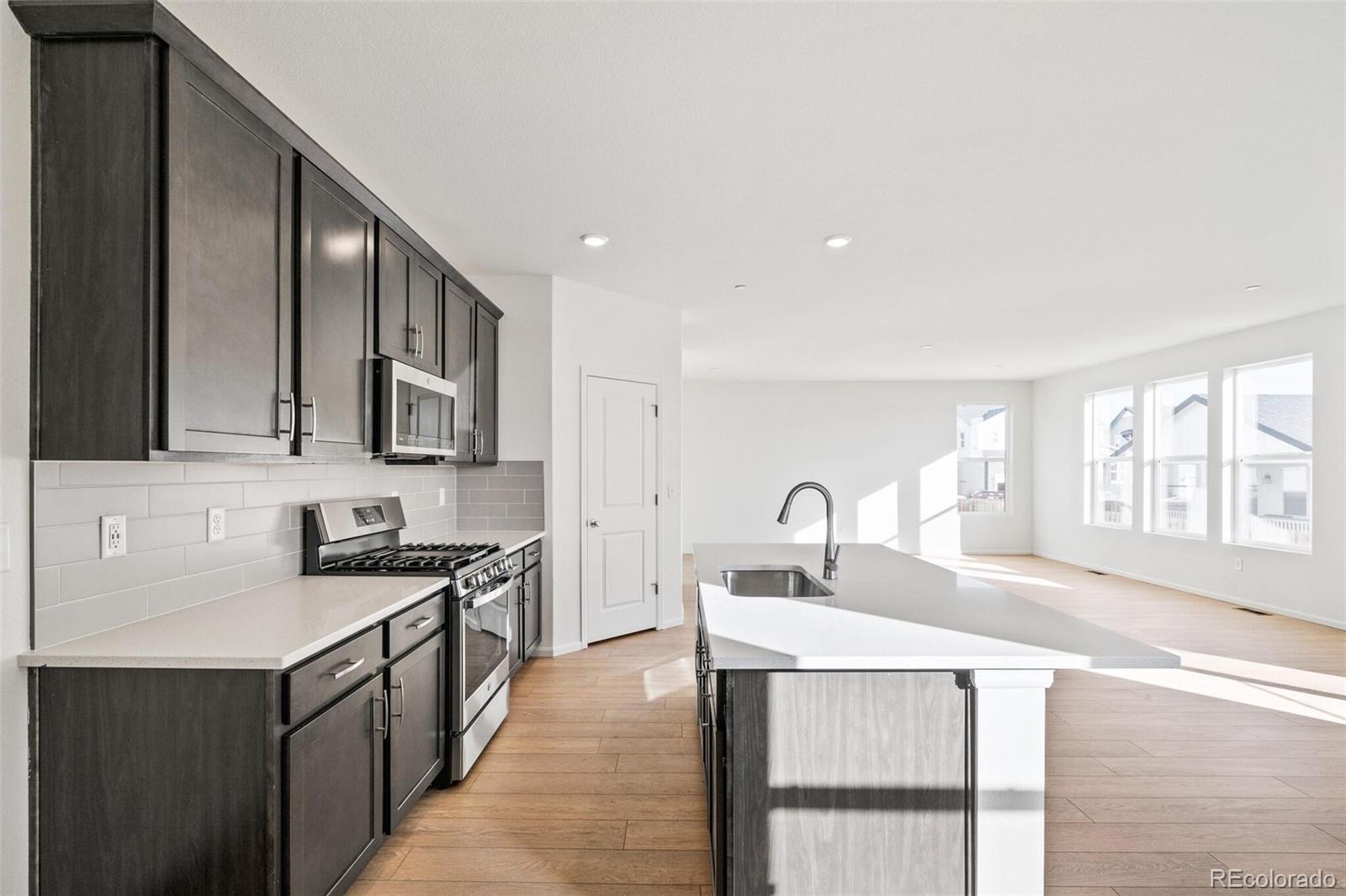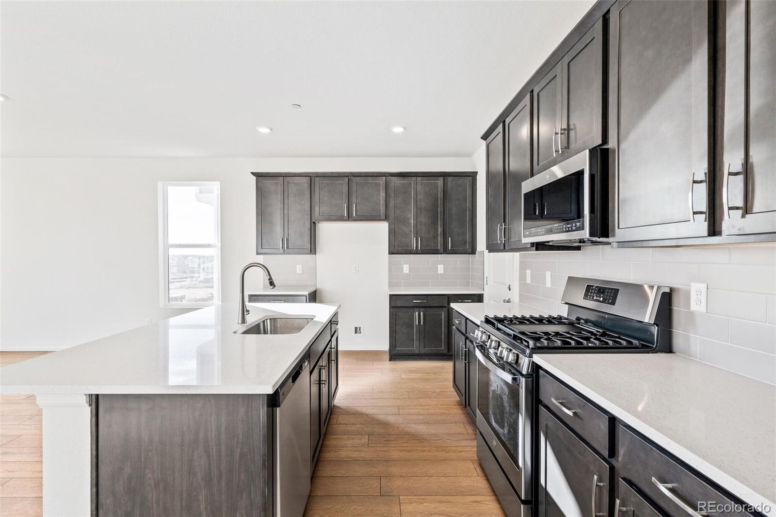 This spacious, two-story home offers an open floor plan with an inviting great room with luxury vinyl plank flooring throughout the primary living areas, bathrooms and laundry. The modern kitchen boasts quartz countertops, an expansive island, ample pantry and stainless-steel appliances. Unwind in the primary suite, which includes 2 spacious walk-in closets and connecting bath that with a generous shower w/seat. See sales counselor for approximate timing required for move-in ready homes. The listing team represents seller/builder as a Transaction Broker.