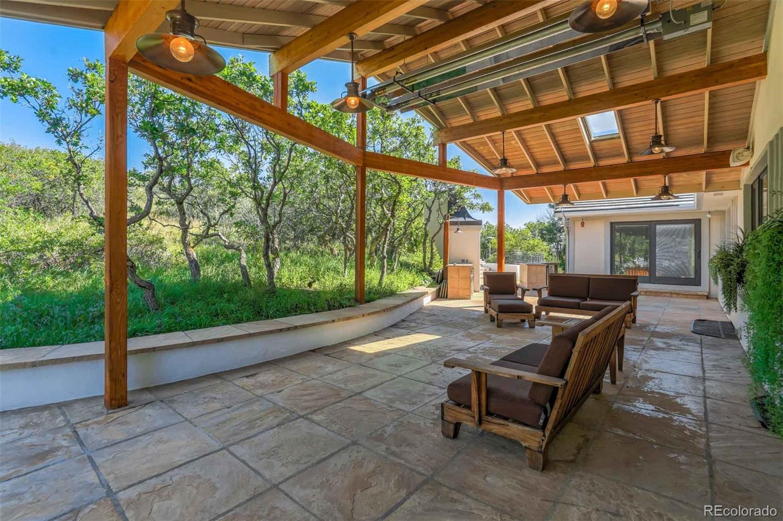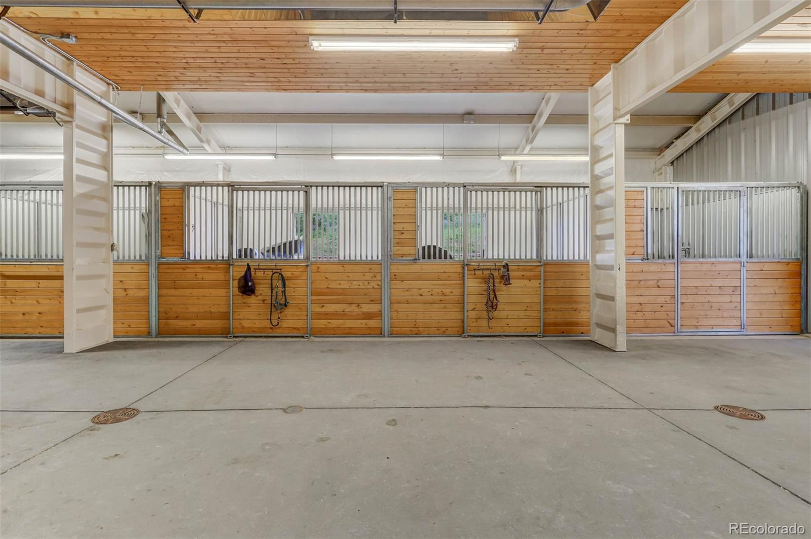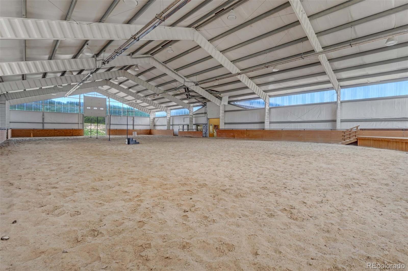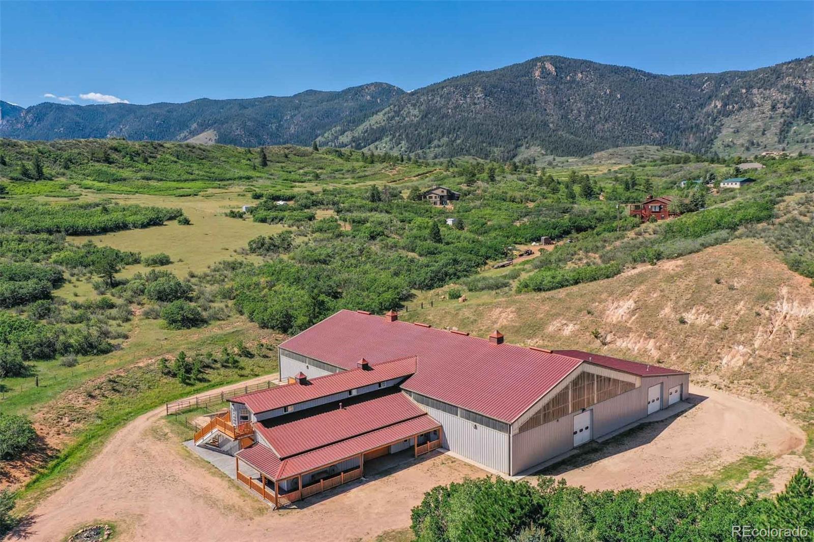 Luxury equestrian modern home on 13+ acres w/indoor riding arena, & barn w/studio. As you enter natural slate & solid hardwd flrs lead you to the great rm. Large bay window captures views of the valley. The light & bright great rm features a wd burning FP w/flr to ceiling slate & granite surround, built-ins & entertainment cabinet. The views & natural light continue in the chefs dream kitchen. Designer glass countertop island w/breakfast bar, craftsman-built cabinets, subway tile, commercial SS appliances, LED lighting, dumb waiter, pantry w/ pull out drawers & more! Walk out to the backyard oasis w/expansive multi-tier flagstone patio incl a covered/heated area w/built-in kitchen grill/smoker, 2 beverage taps, bar, & stream/waterfall features on either side. Lighted/fenced sports court perfect for pickle ball in the beautiful private setting. Back inside the formal dining rm features chandelier & wd flrs. The main lvl primary suite is loaded w/amenities; walk-out access, panoramic views, FP, sitting area, lux 5pc bath w/standalone jetted tub w/great mtn views, spa shower w/steam, radiant heat flr, separate glass vanities w/ floor to ceiling glass tile walls, custom luxury closet, & adj laundry rm w/cabinets & 2 sinks. 2nd main level bedrm has built in shelving & in-wall bed, offering a flexible guest rm w/nearby full bath. The walk-out bsmnt offers a large wd bar w/plenty of seating, space for pool table & sitting area w/wd burning stove. Lower-lvl office captures mtn views & has wall of built-in shelving & desk. 1 of the 2 bsmnt bedrms has sitting area while the other bedrm is setup as a workout rm. Both have easy access to hall bath w/steam shower. Quick walk to the heated/irrigated 140x80 riding arena, 60x40 shop w/concrete floor, 5 stall barn w/tongue & groove walls/ceiling, multiple large entries/exits, tack rm, handicap accessible bath, spacious 1bd 1ba barndominium w/full kitchen above, & more. Must see CO luxury ranch w/great access.