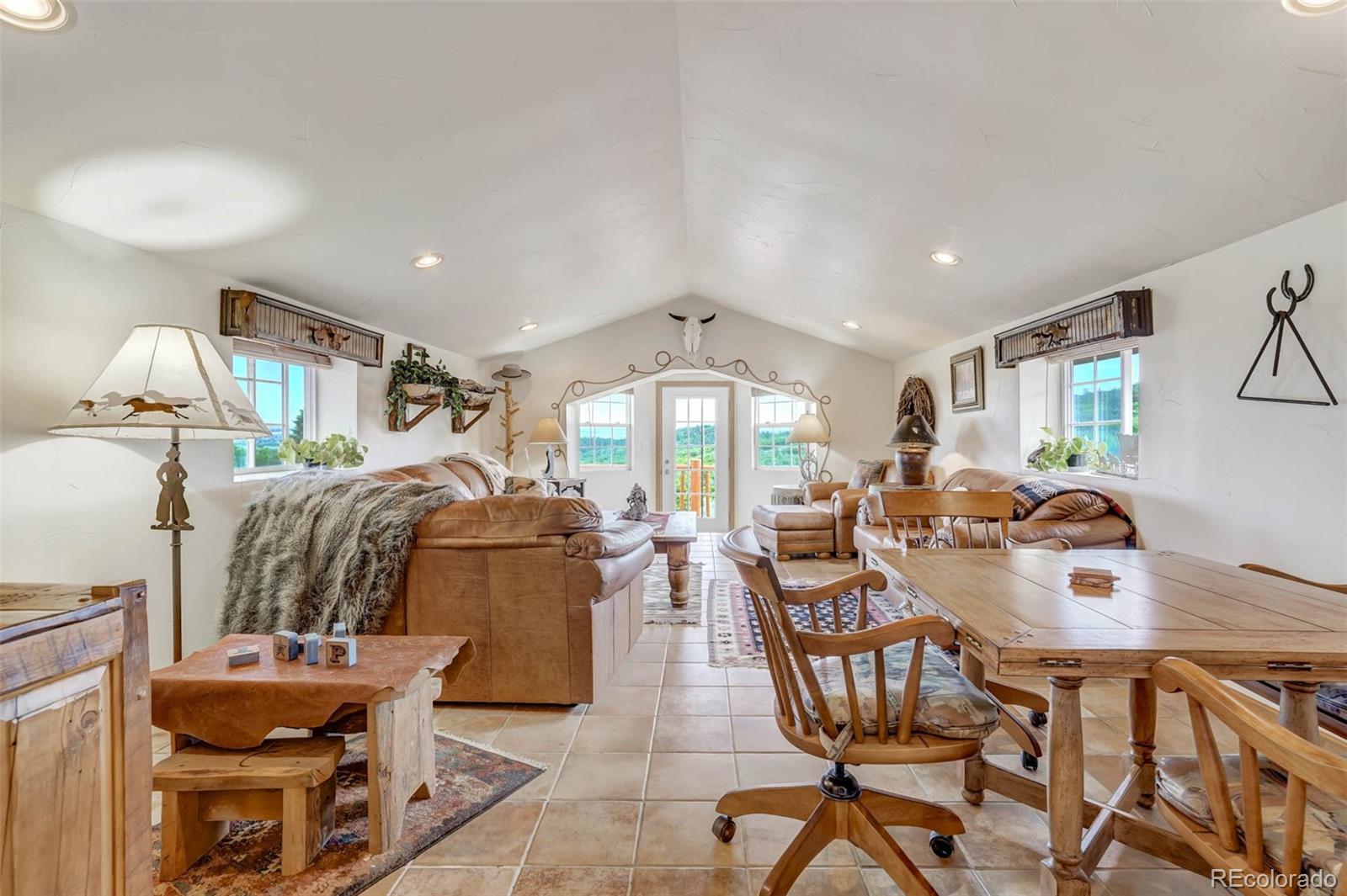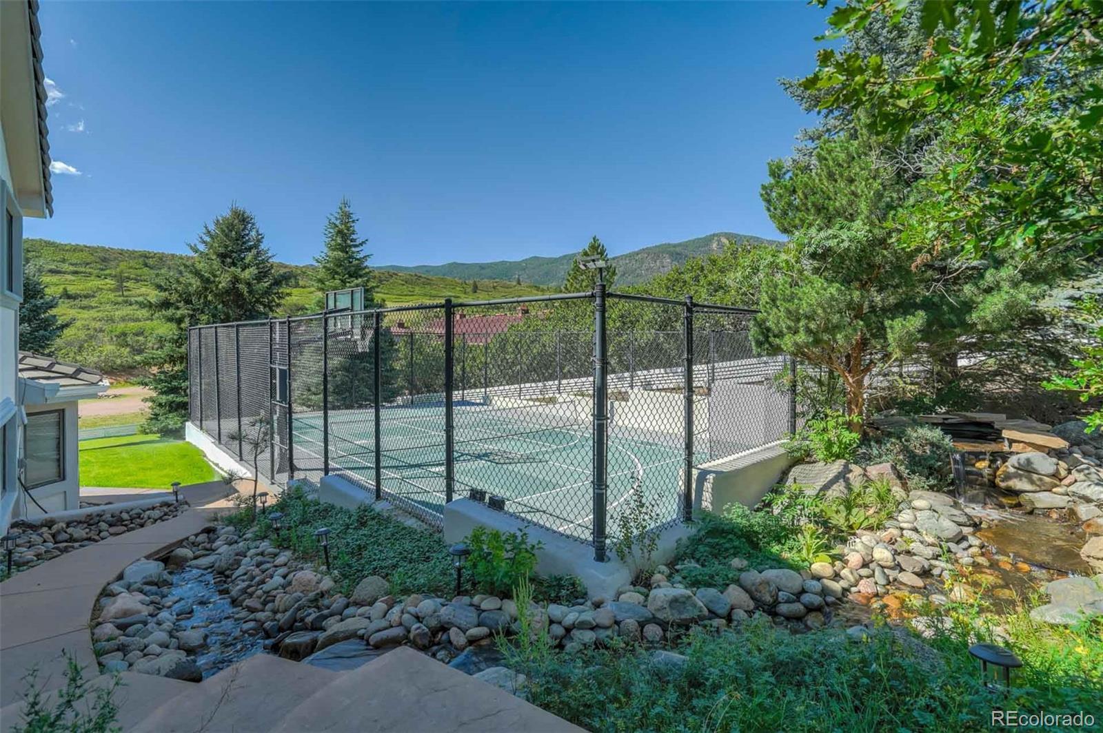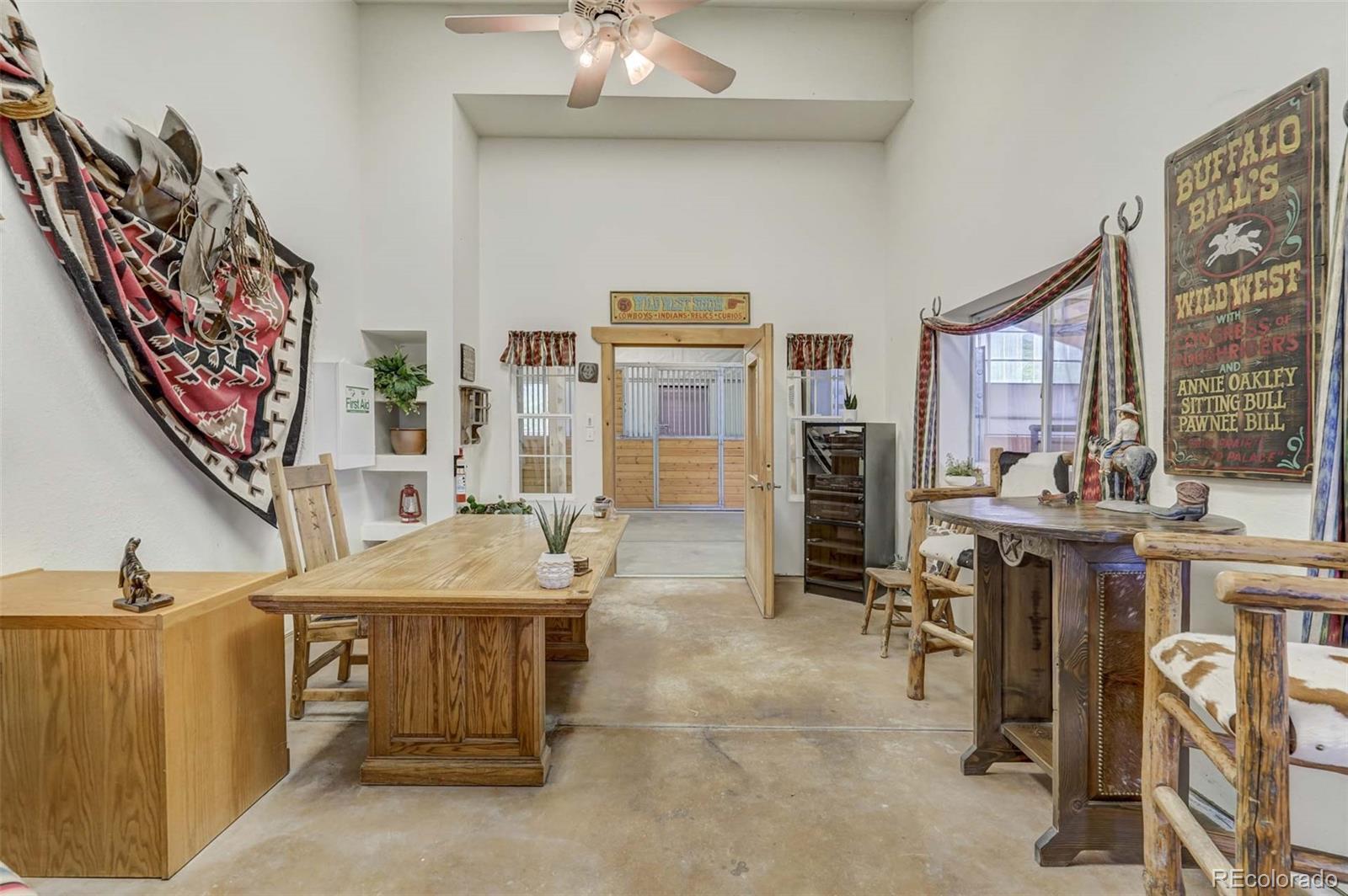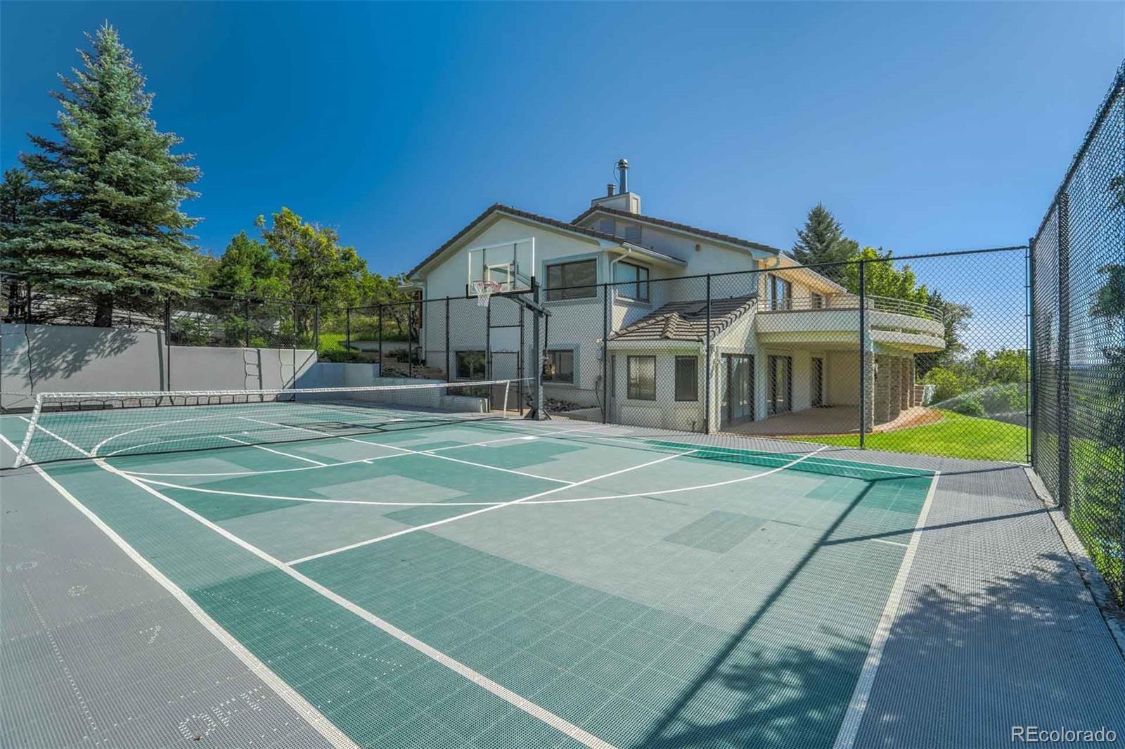 Luxury equestrian modern home on 13+ acres w/indoor riding arena, & barn w/studio. As you enter natural slate & solid hardwd flrs lead you to the great rm. Large bay window captures views of the valley. The light & bright great rm features a wd burning FP w/flr to ceiling slate & granite surround, built-ins & entertainment cabinet. The views & natural light continue in the chefs dream kitchen. Designer glass countertop island w/breakfast bar, craftsman-built cabinets, subway tile, commercial SS appliances, LED lighting, dumb waiter, pantry w/ pull out drawers & more! Walk out to the backyard oasis w/expansive multi-tier flagstone patio incl a covered/heated area w/built-in kitchen grill/smoker, 2 beverage taps, bar, & stream/waterfall features on either side. Lighted/fenced sports court perfect for pickle ball in the beautiful private setting. Back inside the formal dining rm features chandelier & wd flrs. The main lvl primary suite is loaded w/amenities; walk-out access, panoramic views, FP, sitting area, lux 5pc bath w/standalone jetted tub w/great mtn views, spa shower w/steam, radiant heat flr, separate glass vanities w/ floor to ceiling glass tile walls, custom luxury closet, & adj laundry rm w/cabinets & 2 sinks. 2nd main level bedrm has built in shelving & in-wall bed, offering a flexible guest rm w/nearby full bath. The walk-out bsmnt offers a large wd bar w/plenty of seating, space for pool table & sitting area w/wd burning stove. Lower-lvl office captures mtn views & has wall of built-in shelving & desk. 1 of the 2 bsmnt bedrms has sitting area while the other bedrm is setup as a workout rm. Both have easy access to hall bath w/steam shower. Quick walk to the heated/irrigated 140x80 riding arena, 60x40 shop w/concrete floor, 5 stall barn w/tongue & groove walls/ceiling, multiple large entries/exits, tack rm, handicap accessible bath, spacious 1bd 1ba barndominium w/full kitchen above, & more. Must see CO luxury ranch w/great access.