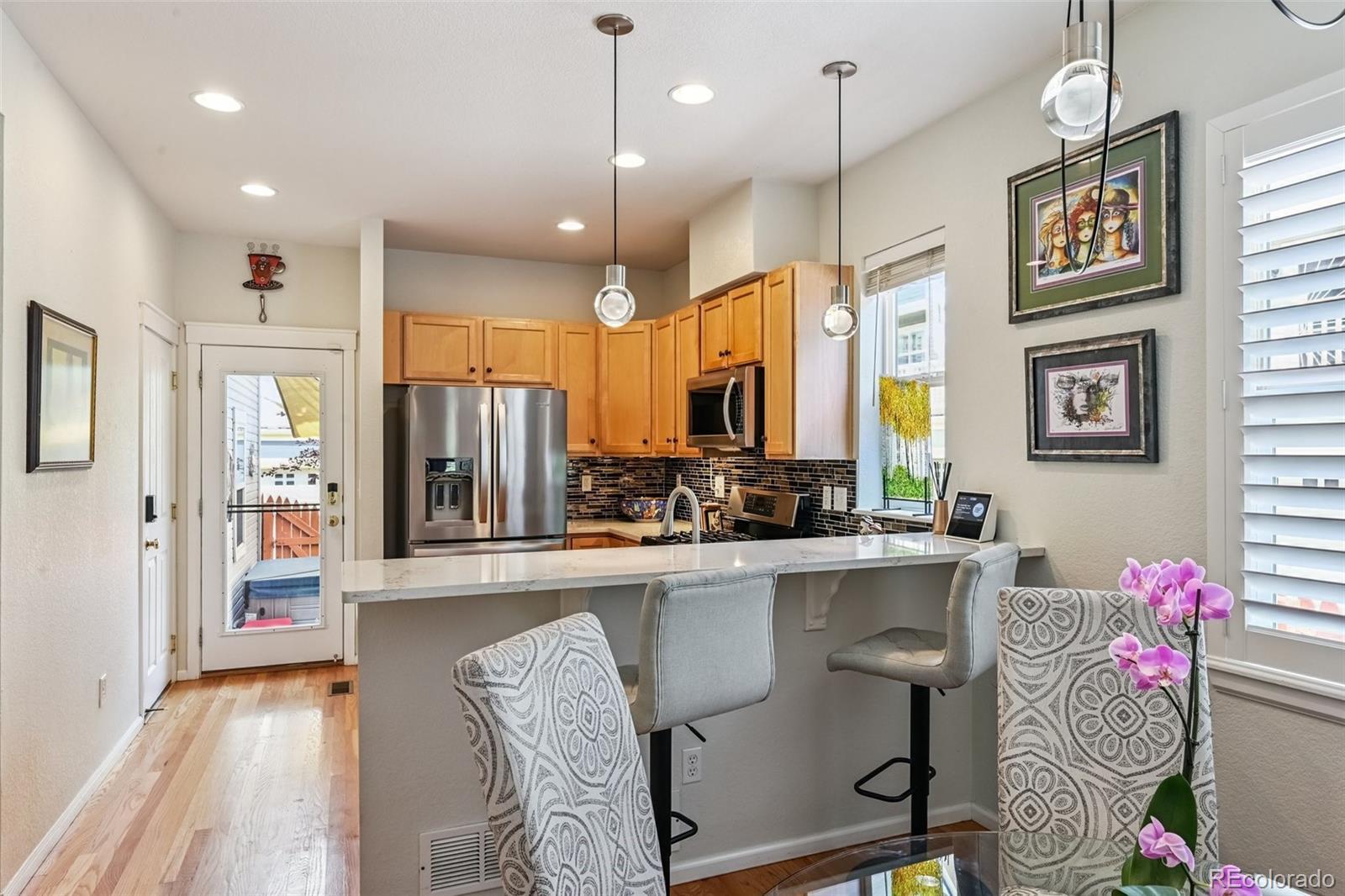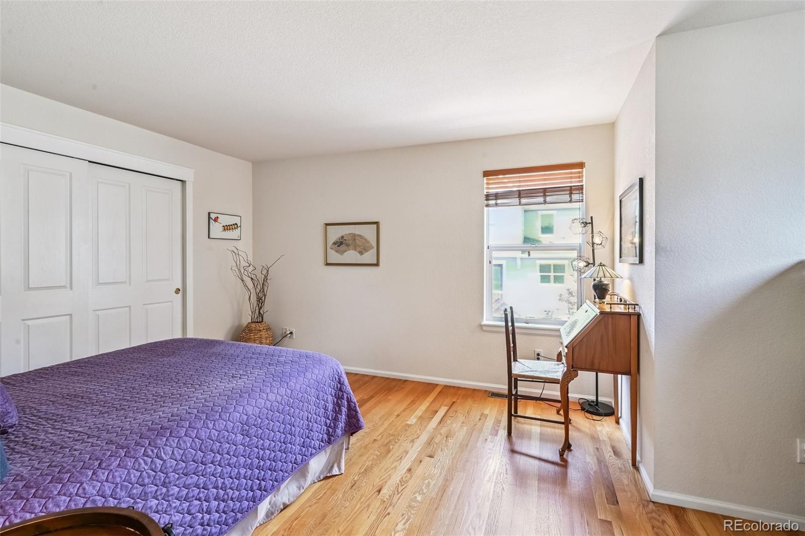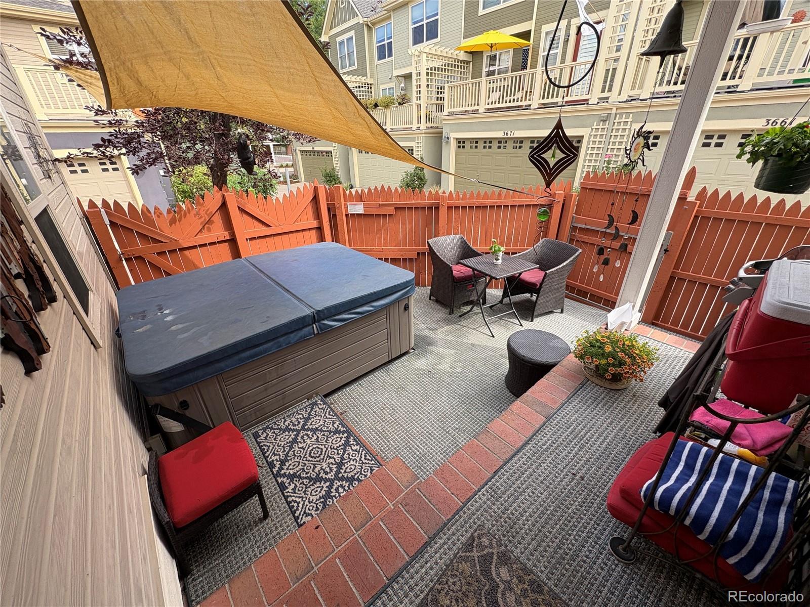 Nestled within the award-winning Highlands' Garden Village, this charming cottage features a rare main floor ensuite bedroom and main floor laundry room. Both the main floor and second floor bathrooms have been recently remodeled with luxurious, high-end finishes. Newer appliances include the refrigerator, washer, and dryer, along with a furnace and air conditioning upgrade completed in fall 2023. Newer granite countertops in the kitchen and newer exterior paint. Plenty of storage space throughout the home including the massive closets of the second-floor bedrooms. Entertain guests in the naturally bright lower-level family room and wet bar, highlighted by its tall ceilings. The quiet lower-level bedroom and bath offer privacy and comfort for guests. Relax on the front porch overlooking lush park greenery and mature trees on a peaceful, shaded street across from the neighborhood pocket park, garden plots, and the beautifully restored gazebo. Enjoy unwinding in the hot tub located in the low-maintenance backyard. Conveniently situated less than 1,000 feet from Sprouts Market, Starbucks, Highland Wine, 24 Hour Fitness, medical and dental offices, Children's Park, the Historic Elitch Theatre and Old Elitch Gardens Carousel shell. Just two blocks from the vibrant dining, bars, and shops of Tennyson Street, and only a mile and a half to Berkeley Lake Park, pool, dog park, and quick access to I-70 for downtown or mountain adventures!