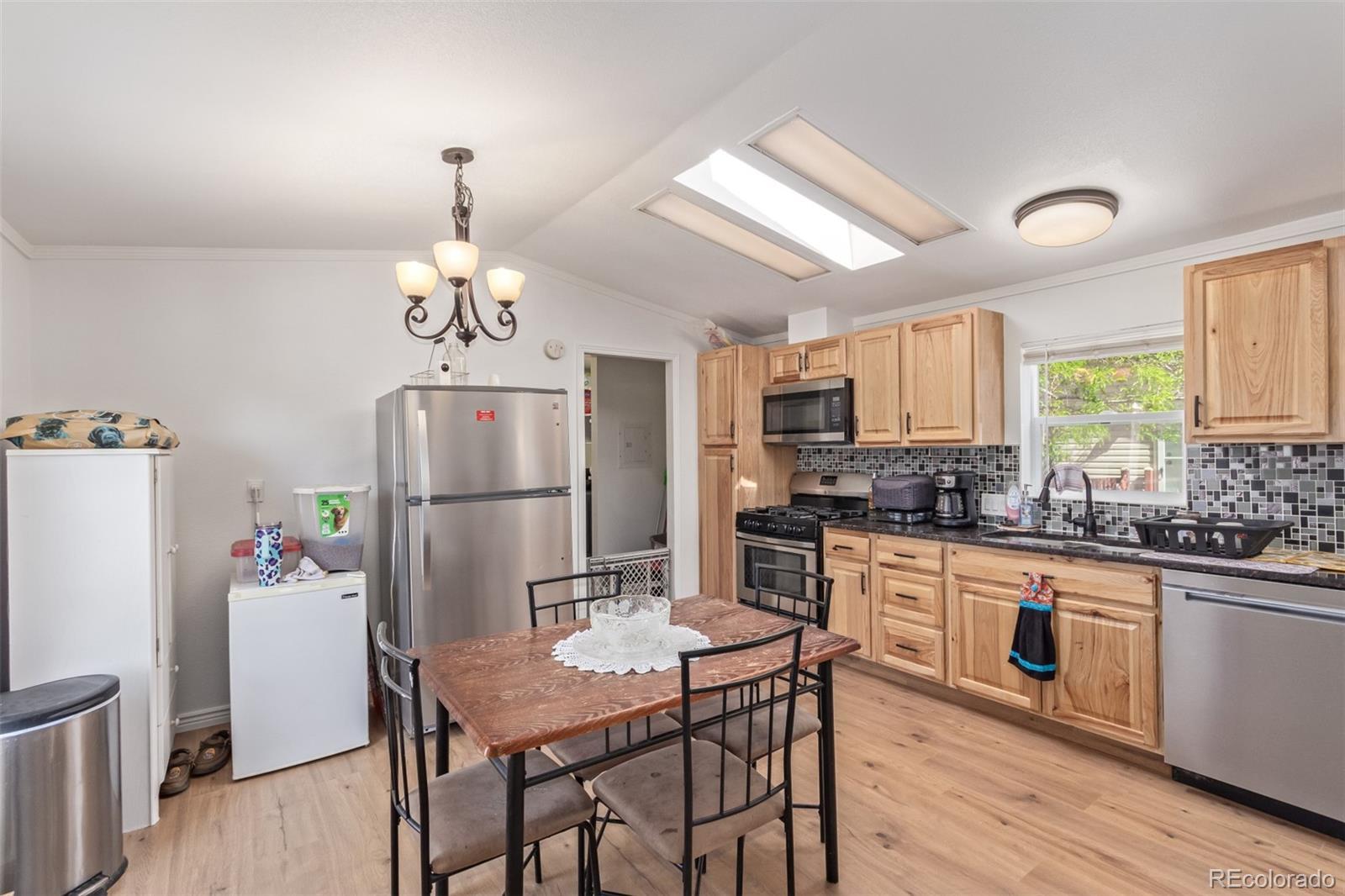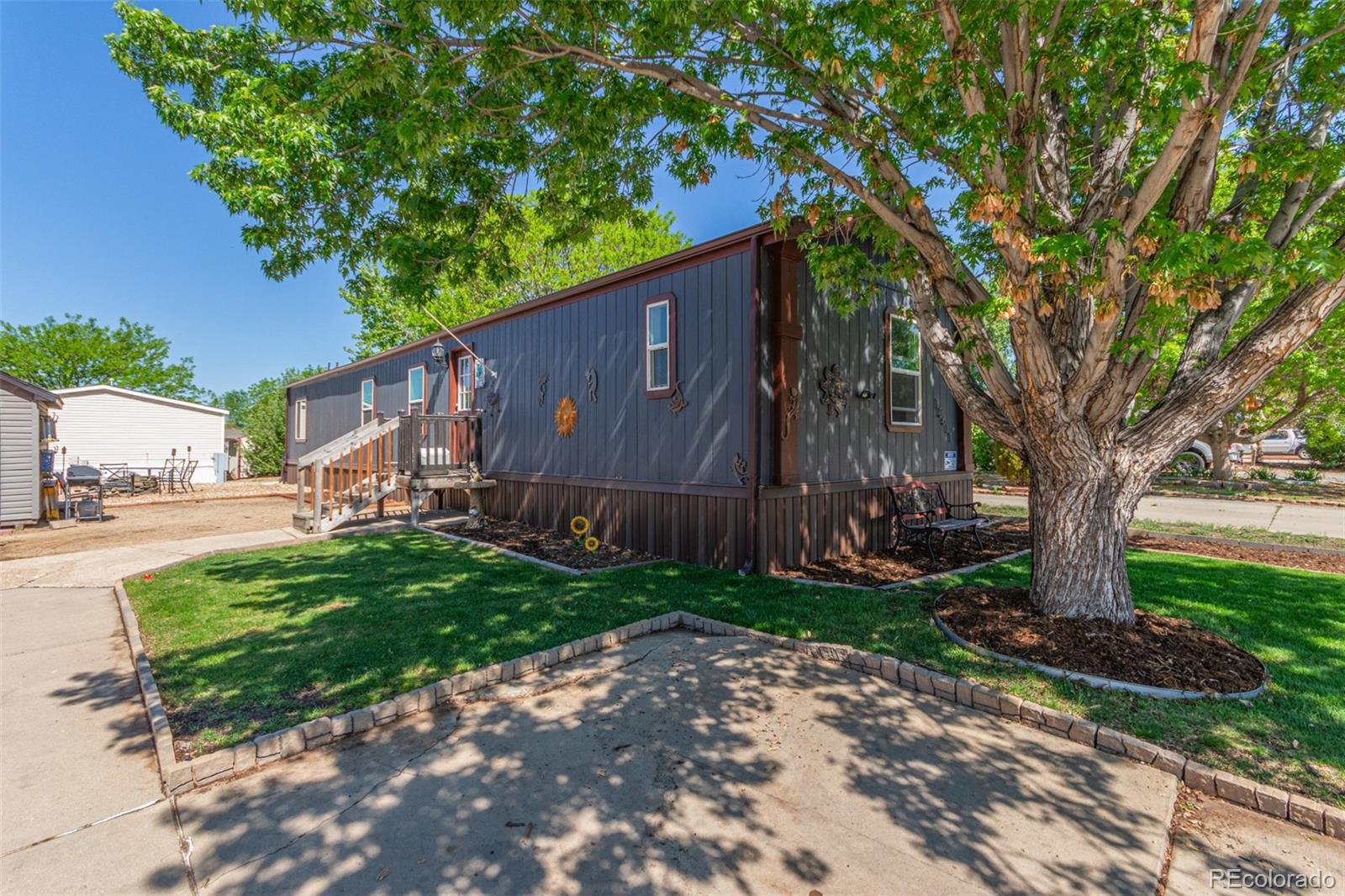 Welcome to this beautifully remodeled 3-bedroom, 2-bath home in the Eagle Crest community! You’ll love the open floor plan that highlights a stunning kitchen featuring granite countertops, upgraded glass tile backsplash, a pantry cabinet, and plenty of storage. Just off the kitchen is a designated dining area perfect for meals and gatherings. The spacious primary suite offers a private bath with a brand-new vanity, stylish mirror, tile flooring, and a fully tiled tub surround. The secondary bathroom is also fully updated with modern finishes and tilework. A separate laundry room doubles as a convenient mudroom with outdoor access. Enjoy the outdoors with a mature front tree, a beautiful grassed yard, and xeriscaped side and backyard areas for low-maintenance living. Additional highlights include off-street parking, a storage shed, a new roof, and a new water heater! As a resident of Eagle Crest, you’ll have access to top-tier amenities like a heated swimming pool, fitness center, community clubhouse with full kitchen, basketball court, BBQ area, and free WiFi in common areas. Located near Saddleback Golf Course, St. Vrain State Park, Union Reservoir, and UC Health Longs Peak Hospital, with easy access to I-25—this is Colorado living at its best!