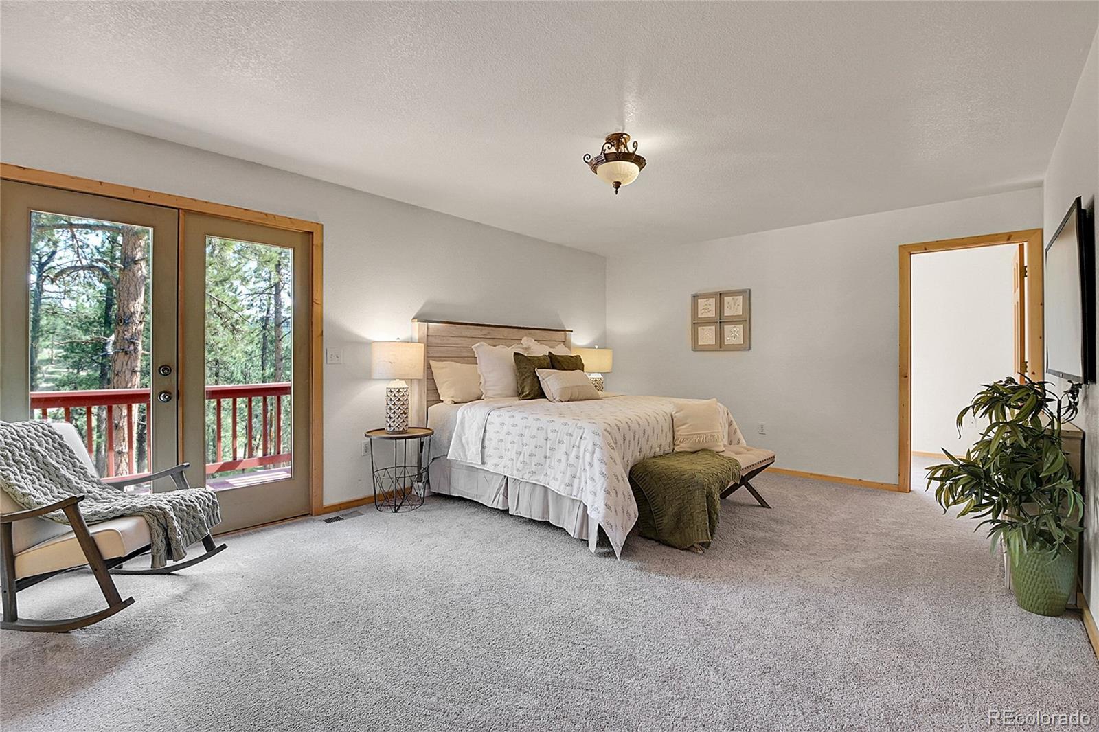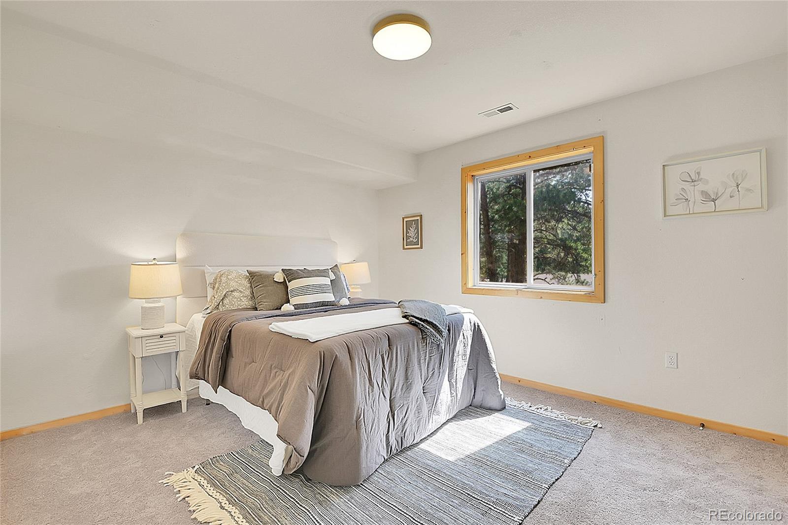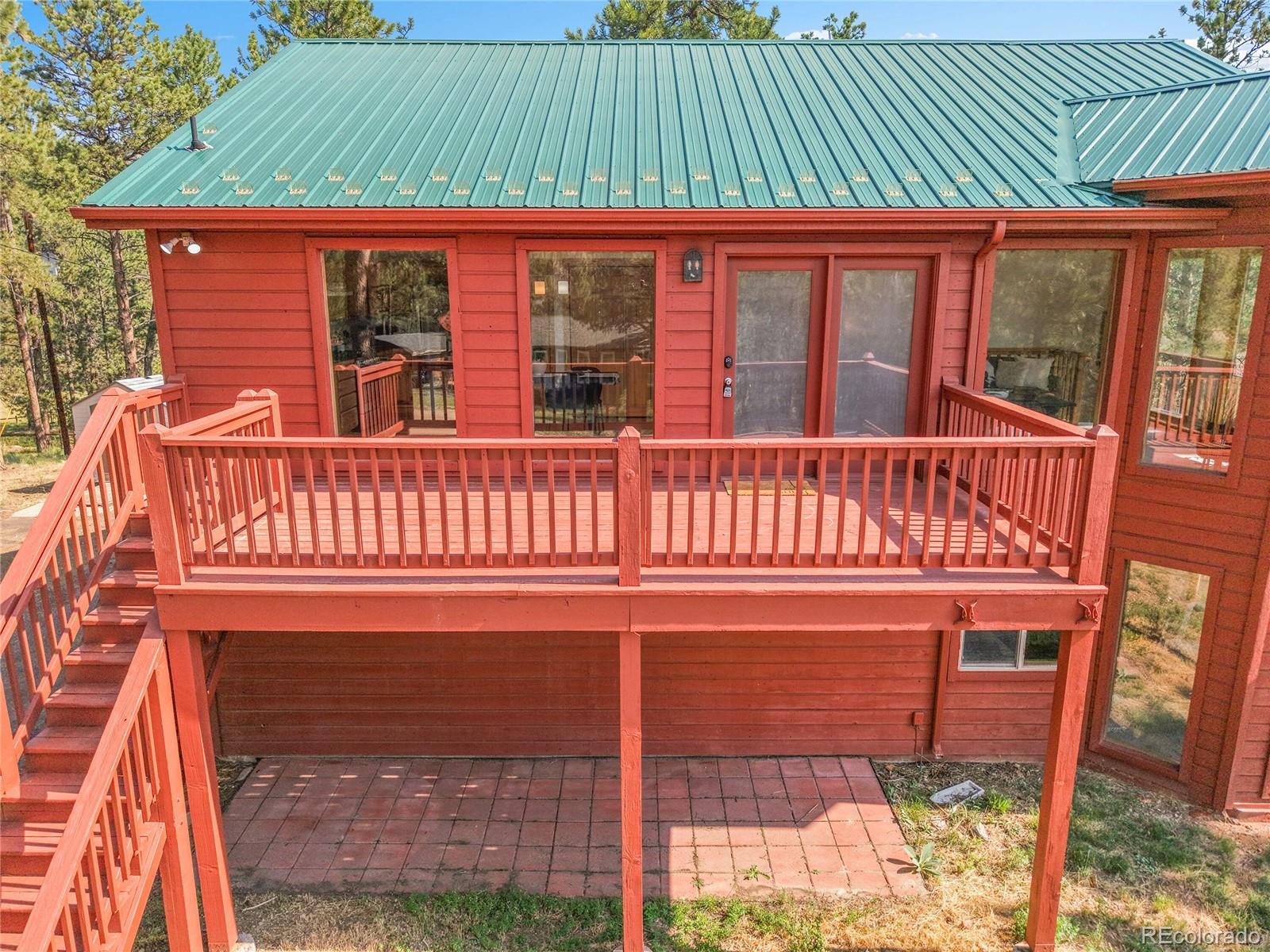 MOTIVATED SELLER! Tucked into the serene foothills of Bailey, in the beloved Burland Ranchettes, this mountain home is more than move-in ready—it’s a sanctuary. With 3 bedrooms, 2 full bathrooms, and a full acre of wooded beauty, it offers space to breathe, dream, and settle into the rhythm of nature. Southern light pours through floor-to-ceiling windows, painting the interior with golden warmth and framing sweeping panoramic views. Open and inviting floor plan offers you and your guests the ideal entertaining space, along with a large deck to grill out and watch those beautiful Colorado sunsets. Huge primary suite with massive walk in closet and private deck for viewing into your wooded acre lot. Two bedrooms are located on the lower level with full bathroom; lots of natural light and large closets. Home includes an oversized 2 car garage with tons of room for storing toys, vehicles and gear! Beneath its durable aluminum roof (2015), every modern comfort has been quietly taken care of: a full 200-amp electrical upgrade with a Leviton smart panel (2025) and a brand-new ion9 water conditioner- installed this year. The septic system was serviced in late 2024, offering the gift of peace of mind. Inside, you’ll find soft new carpet underfoot, refinished hardwood in the kitchen, updated fixtures, and the gentle glow of a pellet stove in the secondary bedroom. Outside, a blacktop driveway, attached garage, storage shed, and 16-ft container make everyday living seamless. With a county-maintained road and nearby RTD bus stop, this is a rare blend of mountain stillness and city connection. Minutes from 285 makes for a quick commute to the city, minutes from downtown Bailey and relaxing on the river at one of the local restaurants. Make this beautiful Bailey house your home! The hard work is already done. What’s left is beauty, simplicity, and the joy of coming home. Schedule your showing today!!