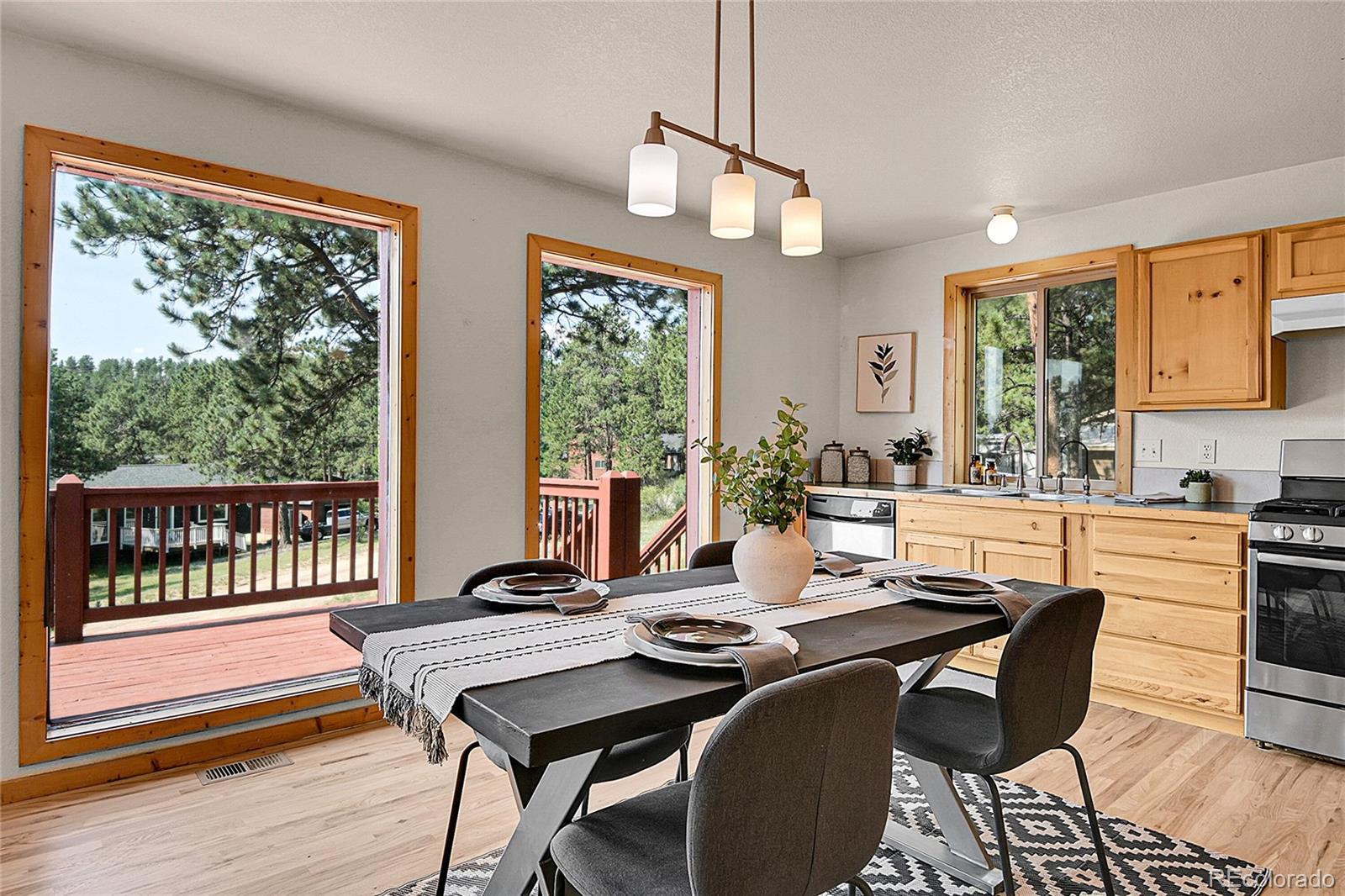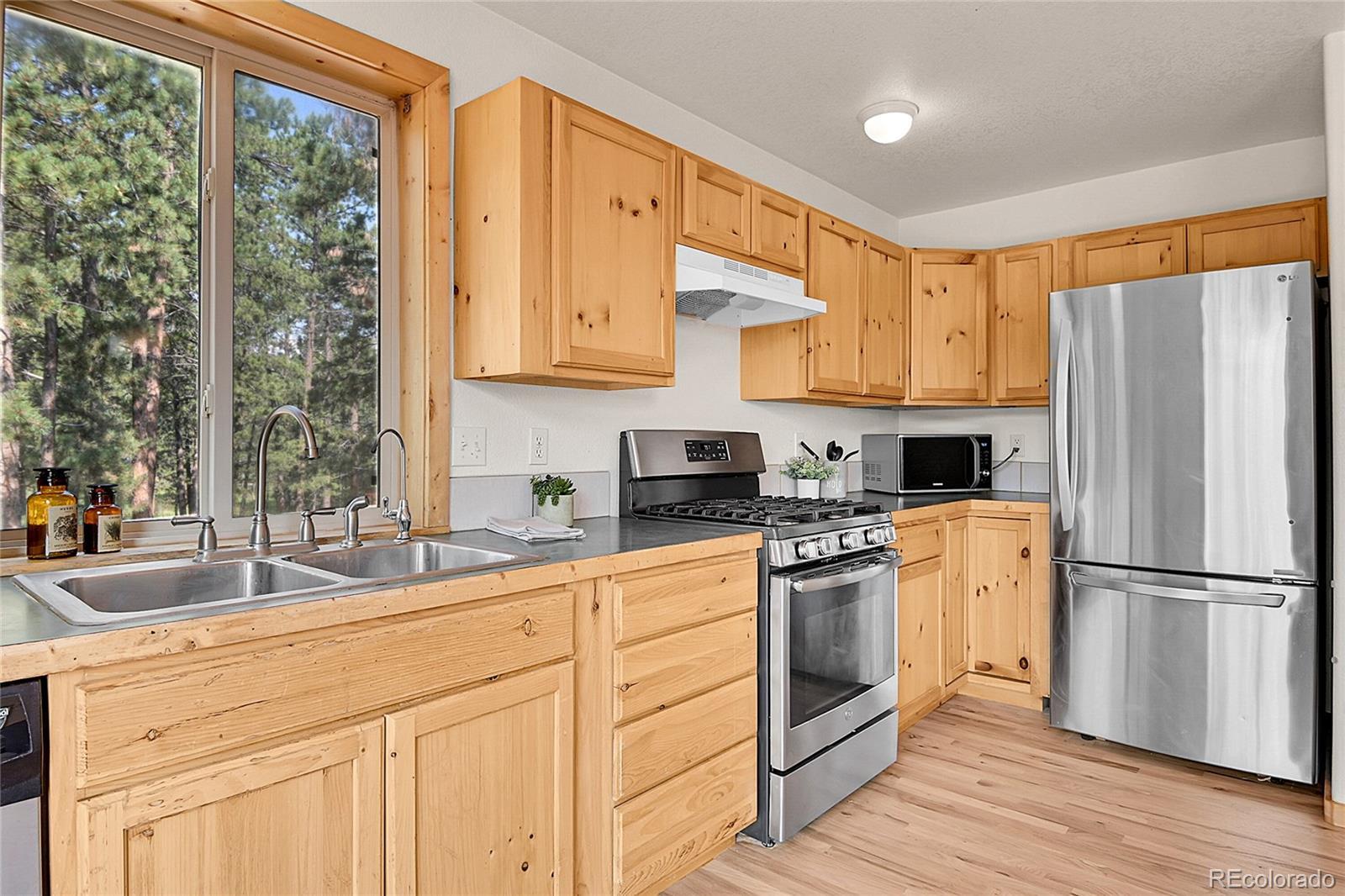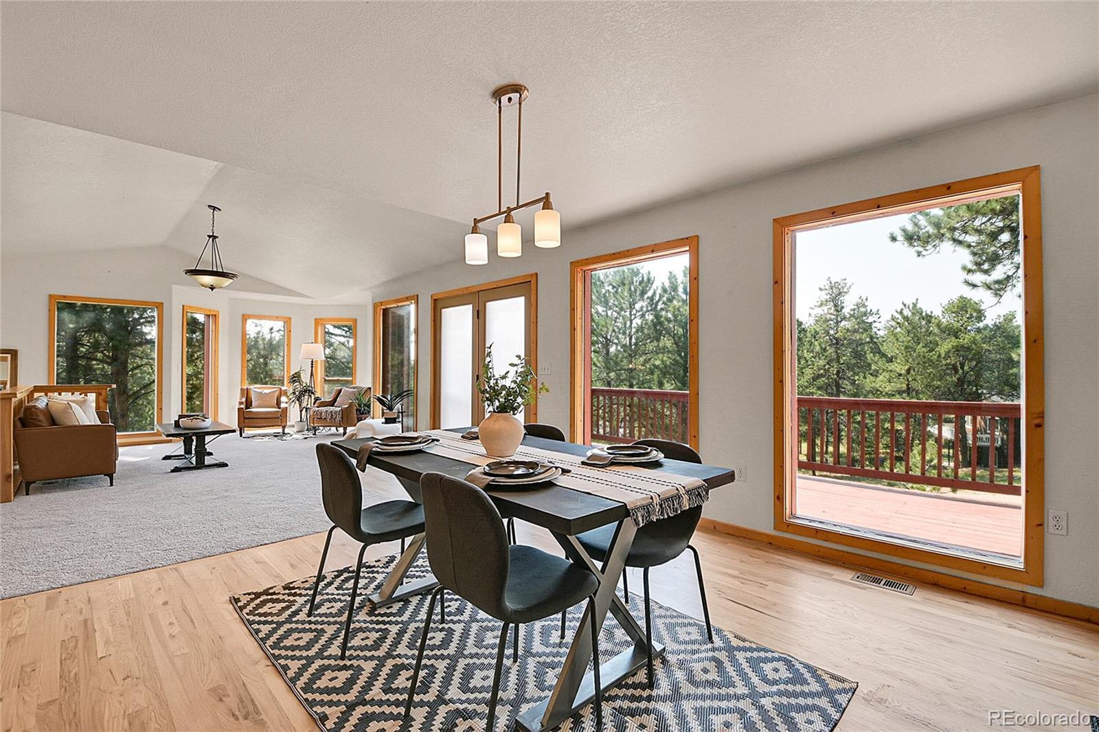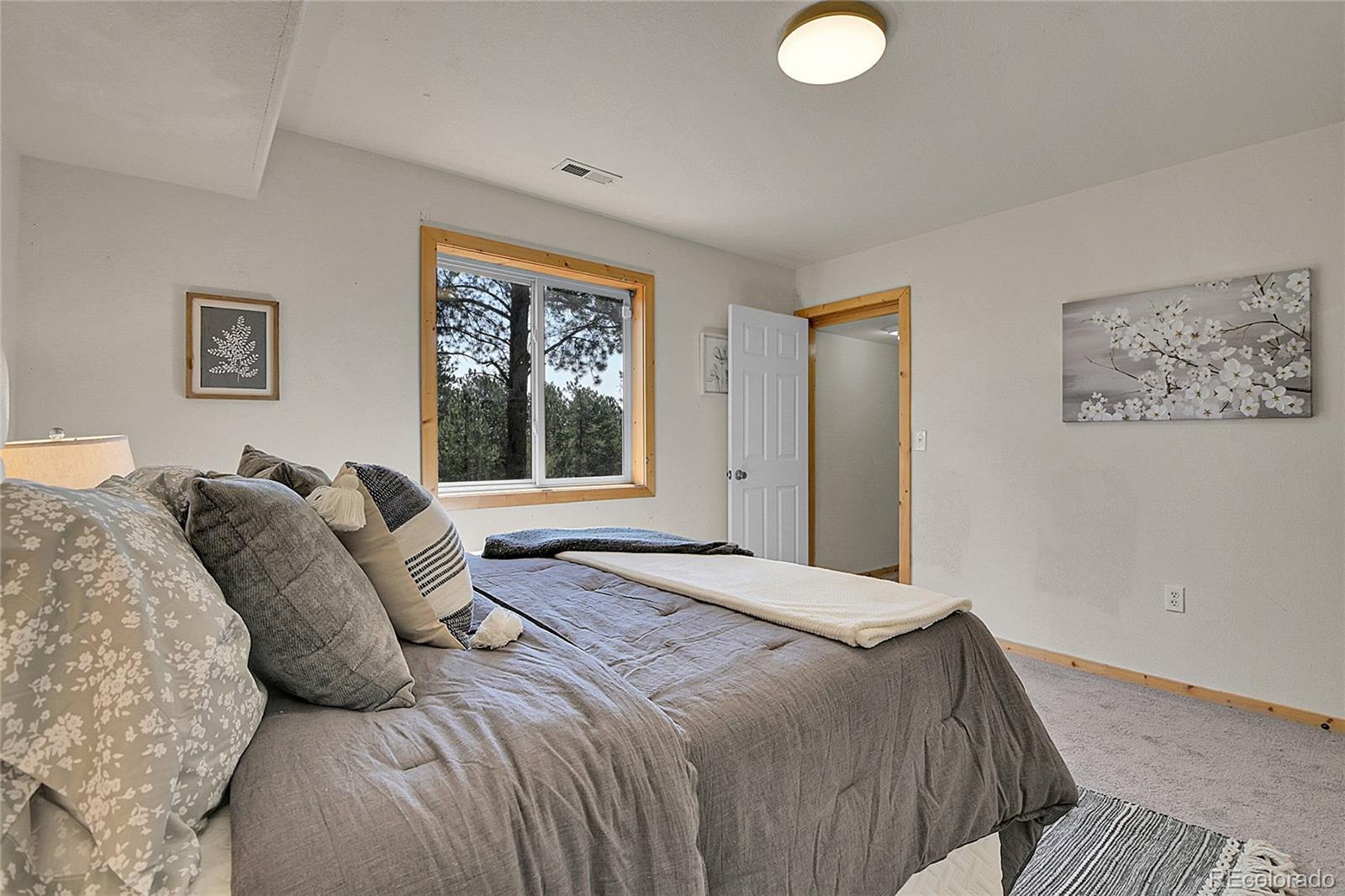 MOTIVATED SELLER! Tucked into the serene foothills of Bailey, in the beloved Burland Ranchettes, this mountain home is more than move-in ready—it’s a sanctuary. With 3 bedrooms, 2 full bathrooms, and a full acre of wooded beauty, it offers space to breathe, dream, and settle into the rhythm of nature. Southern light pours through floor-to-ceiling windows, painting the interior with golden warmth and framing sweeping panoramic views. Open and inviting floor plan offers you and your guests the ideal entertaining space, along with a large deck to grill out and watch those beautiful Colorado sunsets. Huge primary suite with massive walk in closet and private deck for viewing into your wooded acre lot. Two bedrooms are located on the lower level with full bathroom; lots of natural light and large closets. Home includes an oversized 2 car garage with tons of room for storing toys, vehicles and gear! Beneath its durable aluminum roof (2015), every modern comfort has been quietly taken care of: a full 200-amp electrical upgrade with a Leviton smart panel (2025) and a brand-new ion9 water conditioner- installed this year. The septic system was serviced in late 2024, offering the gift of peace of mind. Inside, you’ll find soft new carpet underfoot, refinished hardwood in the kitchen, updated fixtures, and the gentle glow of a pellet stove in the secondary bedroom. Outside, a blacktop driveway, attached garage, storage shed, and 16-ft container make everyday living seamless. With a county-maintained road and nearby RTD bus stop, this is a rare blend of mountain stillness and city connection. Minutes from 285 makes for a quick commute to the city, minutes from downtown Bailey and relaxing on the river at one of the local restaurants. Make this beautiful Bailey house your home! The hard work is already done. What’s left is beauty, simplicity, and the joy of coming home. Schedule your showing today!!