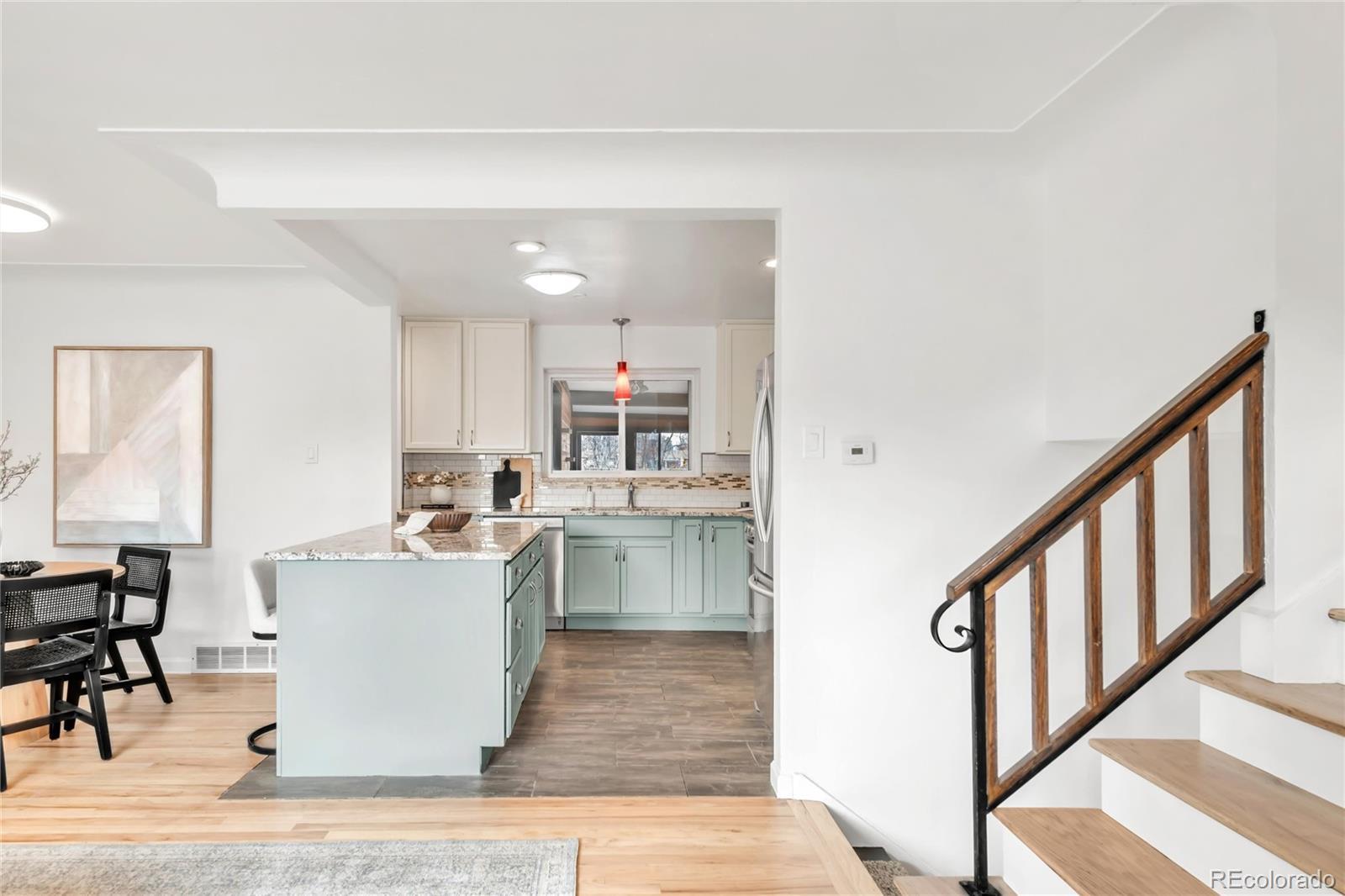 Bright, remodeled, and move-in ready, this home blends mid-century charm with modern comfort. A spacious, updated kitchen anchors the main level, with the formal dining room thoughtfully tucked behind it, ideal for dinners or weekend gatherings. A cheerful sunroom extends your living space and flows to the deck and an extra-spacious backyard, **significantly larger than most in the neighborhood—a rare find—**perfect for summer parties, gardening, pets, and play. Retreat upstairs to a generous main bedroom with its own en-suite bathroom, an uncommon luxury in this area that adds comfort and privacy. The basement with independent entrance offers a cozy family room with a fireplace, great for movie nights, a home office, or guest space. Fresh interior and exterior paint deliver a crisp, turnkey feel throughout. Out back, the oversized yard features a vegetable planting area ready for your harvest. The extra-large garage handles it all: bikes, skis, tools, a workshop, or that hobby you’ve been saving for “someday.” When you’re ready to roam, you’re close to Harvey Park’s lakes and trails, neighborhood favorites, and quick routes to the foothills. All of this with no HOA, on a quiet block near parks and commuter routes. This one won’t last, tour it this week and make it your own!