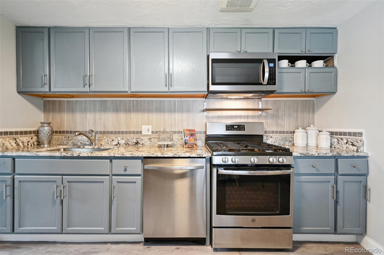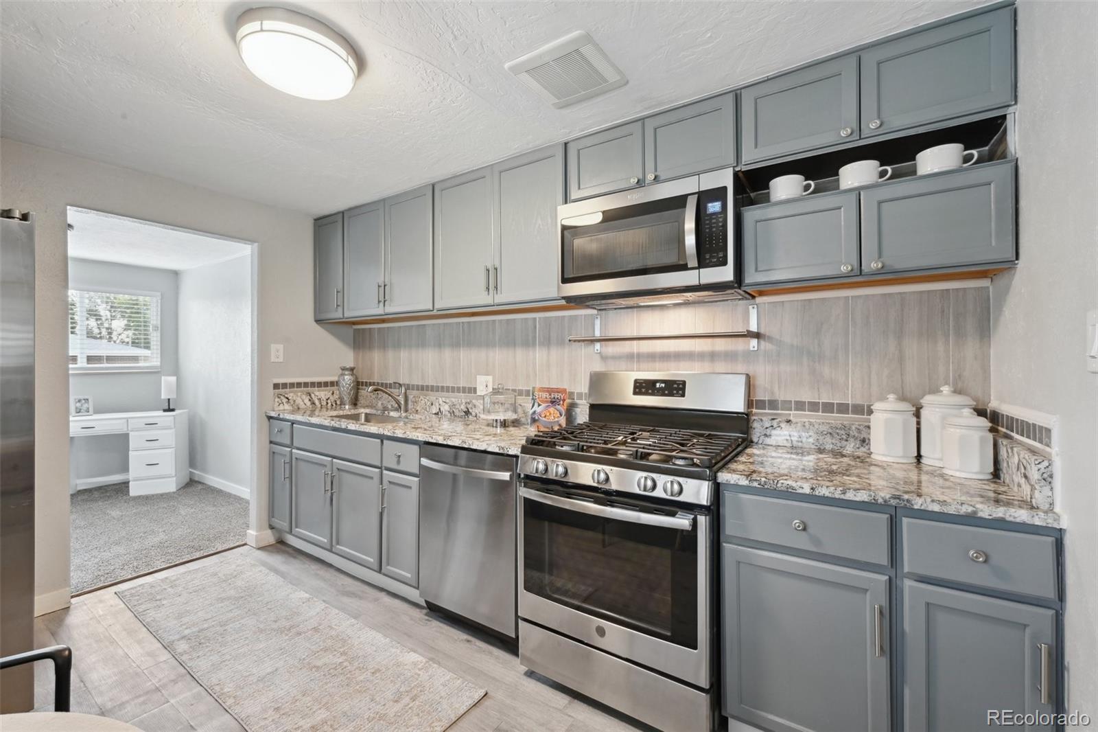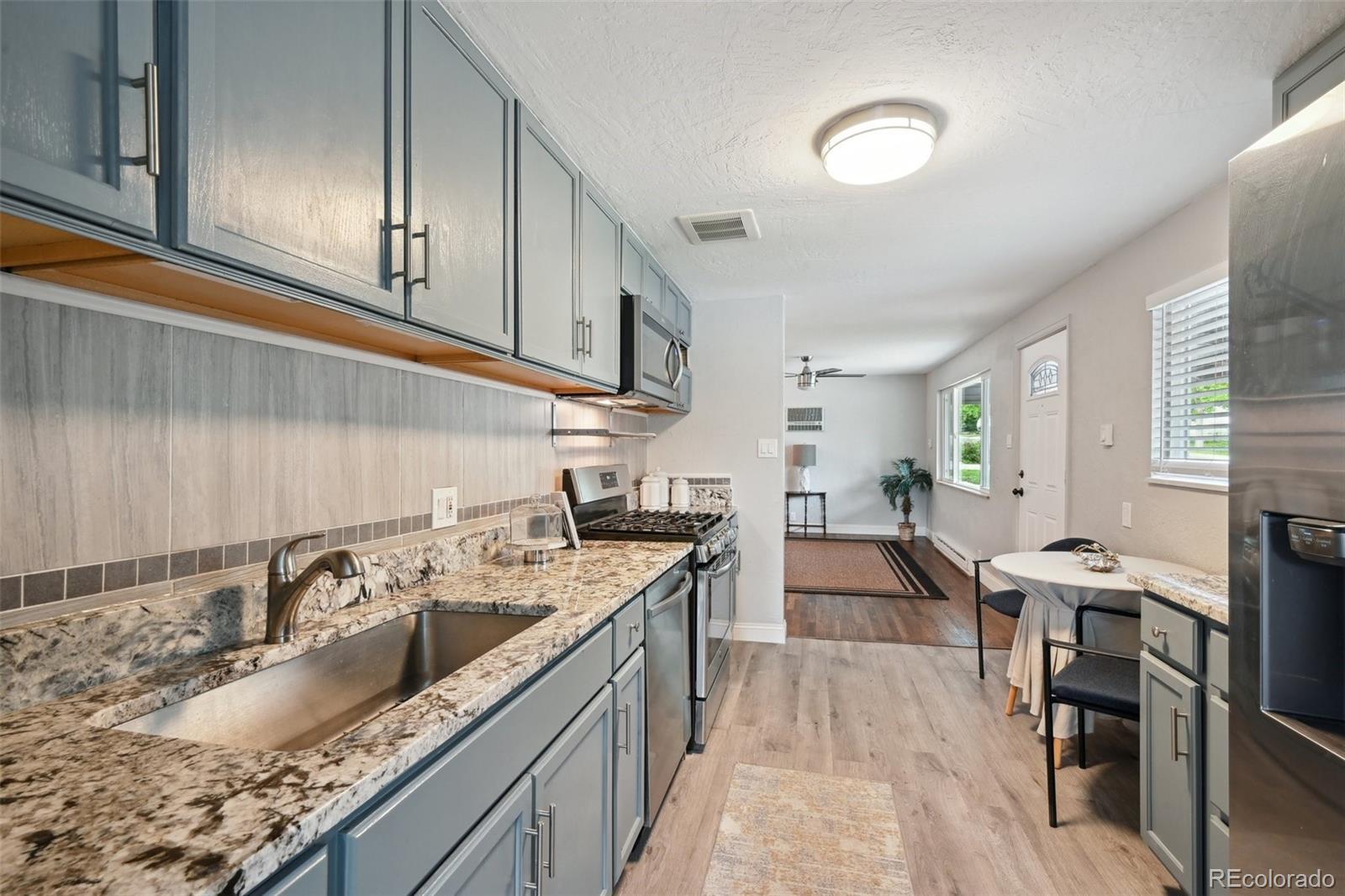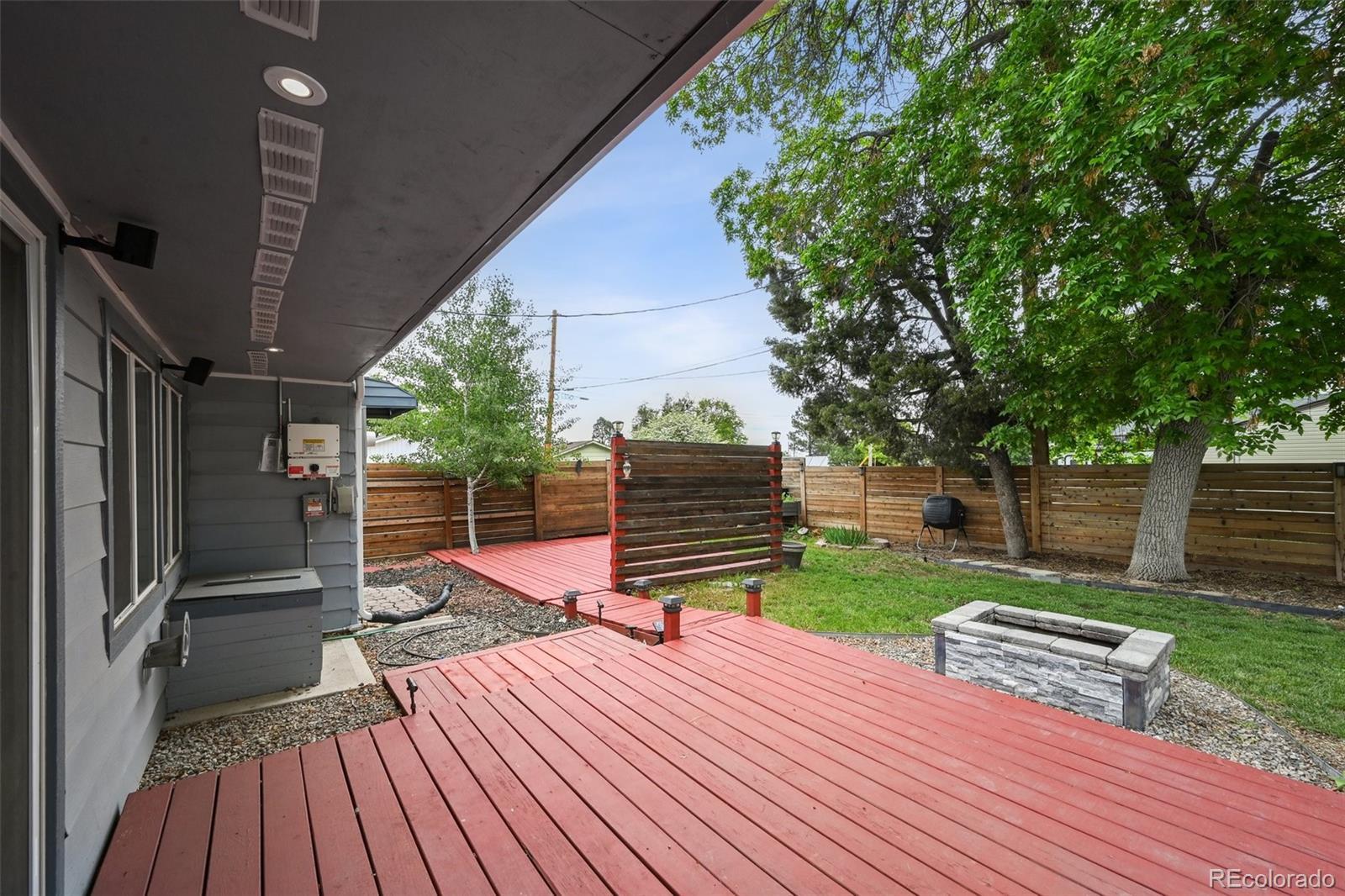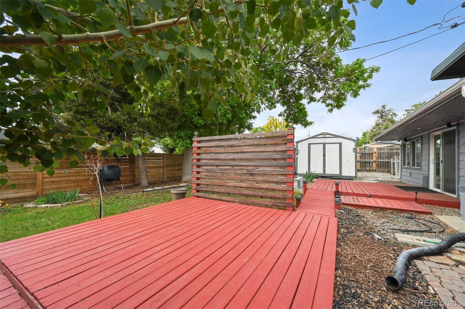 $1000.oo DOWN PAYMENT w/CHFA ASST PROGRAM! (does not have to be 1st time buyer) APPRAISED at $528,000! $5,000 BUYER CONCESSIONS. —INSTANT EQUITY & MOVE IN READY! BEAUTIFULLY REMODELED 1 LEVEL LIVING! This home blends charm, function & value. Plenty of room for everyone to enjoy. Can be 4th bedrooms plus a flex room for office, nursery: Whatever UR needs. FEELS LIKE HOME! Step in & escape from the world. Beautiful memories will be made here! Livingroom & family room to gather & also plenty of areas for everyone to have their privacy. Living room features a large picture window and enjoyable space for conversation. Stunning Family room w/electric FIREPLACE: Beautiful & functional for extra heat on cozy cold nights. Set up your dream entertainment center! Sliding glass doors to the GET-AWAY BACKYARD. Kitchen GRANITE counters, STAINLESS STEEL appliances, GAS STOVE & Stylish Cabinetry. Peaceful Primary Suite w/Oversized ENSUITE Bathroom; tile shower & DOUBLE SINKS! Room for a Cozy chair or Make-up Vanity & Chair. Refinished walnut-stained original HARDWOOD FLOORS run through the main living areas & new carpet in other rooms. Fresh paint throughout. Spacious laundry room w/WASHER & DRYER. WOW! PARK LIKE CORNER LOT, PRIVACY FENCE w/2 Large Multilevel Decks for entertaining; Ideal for BBQs & enjoying the good life. Tree lined backyard, Garden area, Firepit, RV/BOAT GATE access. 2 storage SHEDS: Use as Playhouse, Art Center, Hideaway Cave. 2022 SOLAR SYSTEM (30k Value included Free & Clear) Clean electric heat w/INEXPENSIVE ELECTRIC BILL. Radon mitigation system included. ROOF=2024. Gutters=2024. Evap Cooler & 2 mini split AC/heat. South side Mini=2025. JUST MOVE IN! LOCATION: 3 min-RIVER POINT Shopping Costco, Target, Theater, Restaurants, Entertainment & more. 5 min walk: 2 Parks (Nesbitt Park/Veterans Park) Sheridan Early Childhood Center & Sheridan HS.(Pls confirm Schools) 3 Min-Hwy 285. 5 Min-Santa Fe Dr. Ez access-Mtn & transportation.