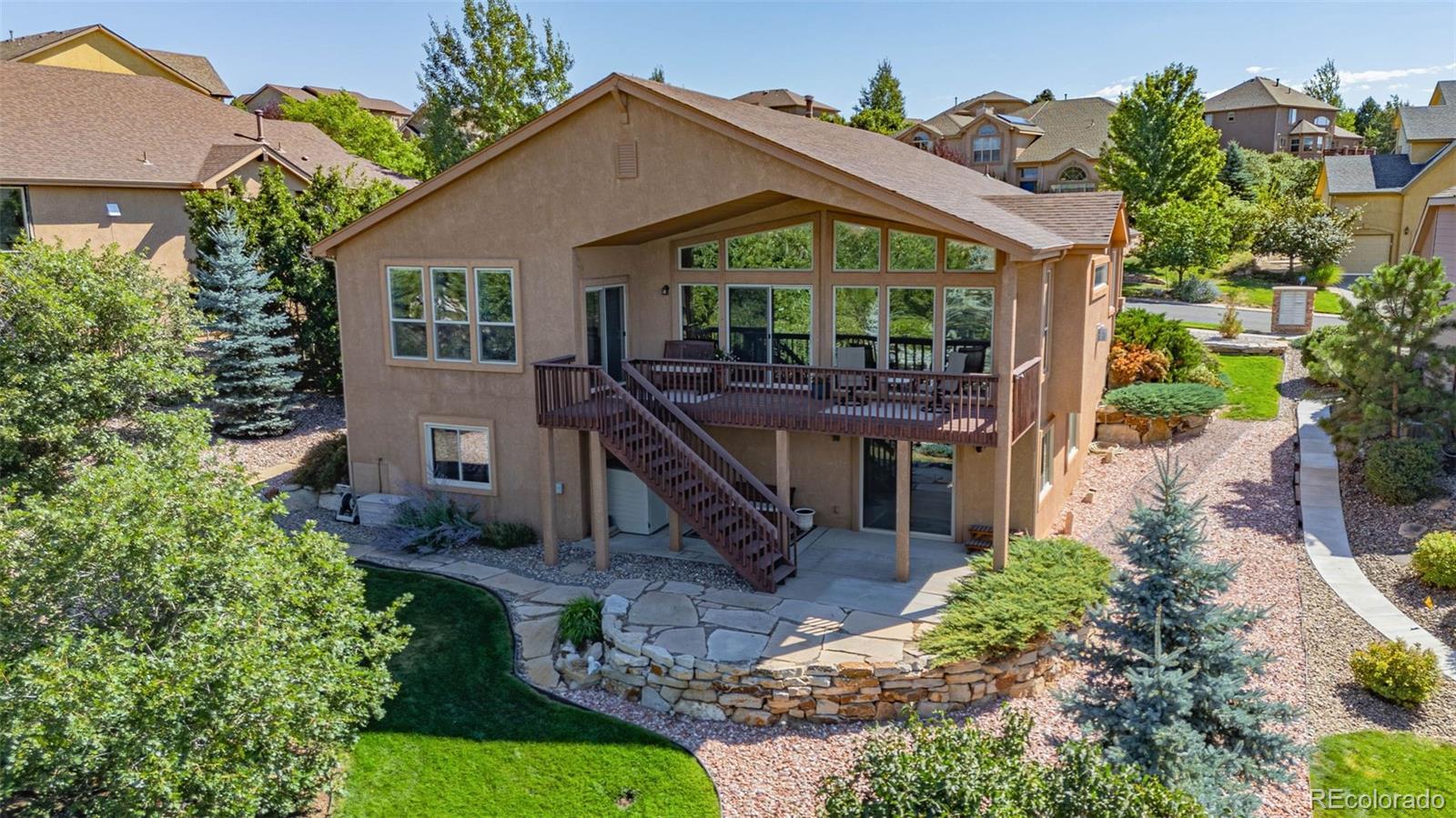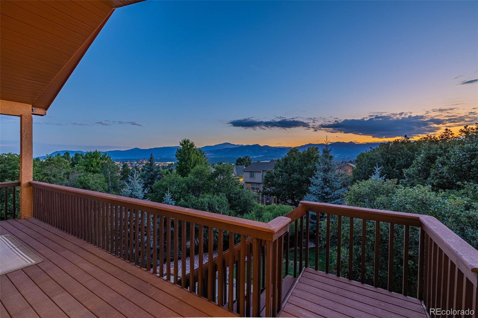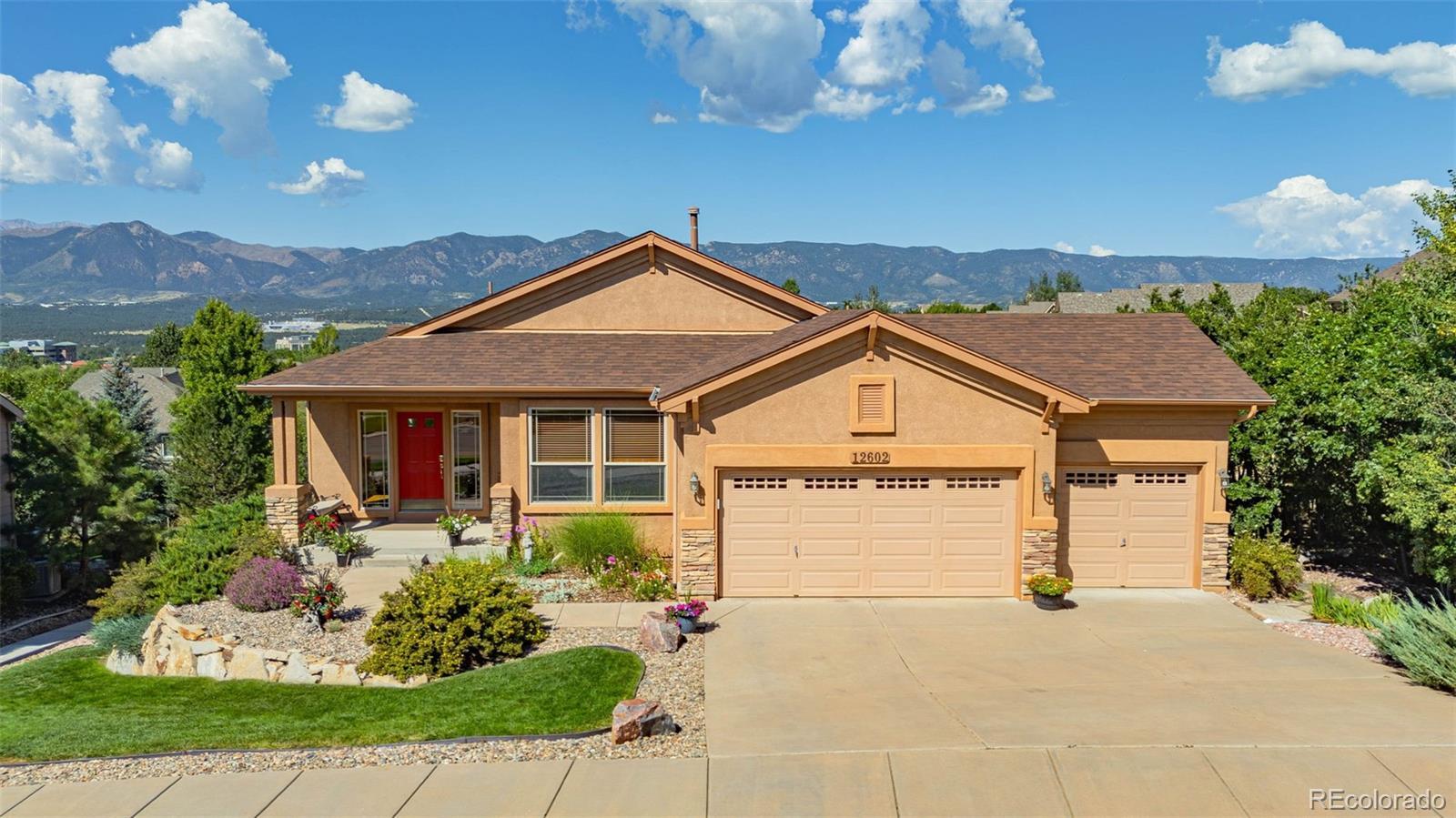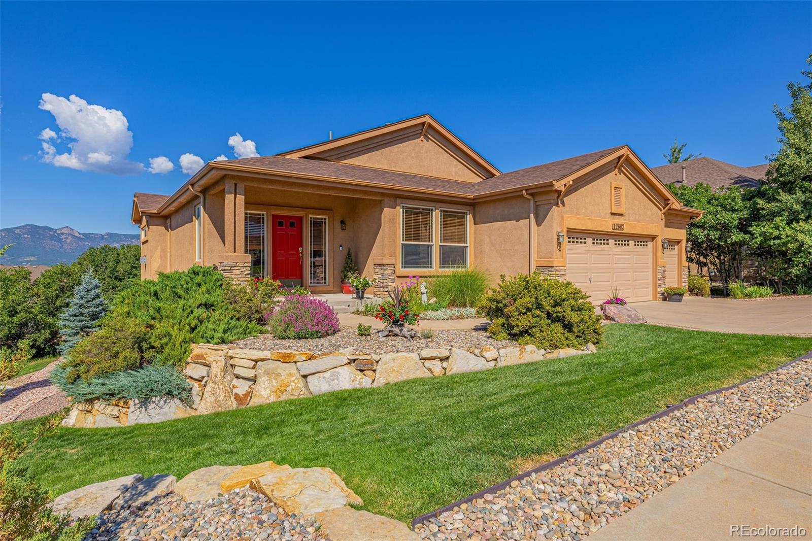 UNMATCHED Front Range views, refined finishes, and a seamless ranch-style layout — this home captures the very best of Colorado Springs living! This stunning home features unobstructed views of the entire Front Range, including the majestic Pikes Peak, from the covered composite deck. The views can also be enjoyed from the Kitchen, which features a large island with quartz countertops and backsplash, 42" maple cabinets with crown molding, touchless faucet, under-cabinet lighting, and a convenient appliance nook with outlets. Premium GE Profile appliances—including double ovens, induction cooktop and a 3-drawer refrigerator— will satisfy any home chef. The Main Level also offers real hardwood floors, gas fireplace, a stunning separate Dining Area, and vaulted ceilings to highlight those views. The primary suite is a true retreat, sharing the same dramatic Pikes Peak view, with separate deck access, a luxurious five-piece bath, and a massive walk-in closet with heated floors and custom closet system. The heated floors continue into through the Bath, Closet and into the mud room, which features a utility sink. The fully finished walkout basement extends the living space, offering its own stunning mountain views, abundant storage across three areas, and recessed lighting throughout. The secondary bedrooms are spacious, and the curb appeal is spectacular. A rare find, this home features exquisite touches throughout! Enjoy the home's elegance, functionality, and Mountain Contemporary style in one of the premier neighborhoods in Northgate- Middle Creek! Welcome Home.