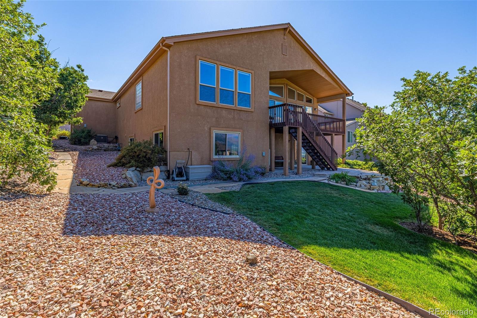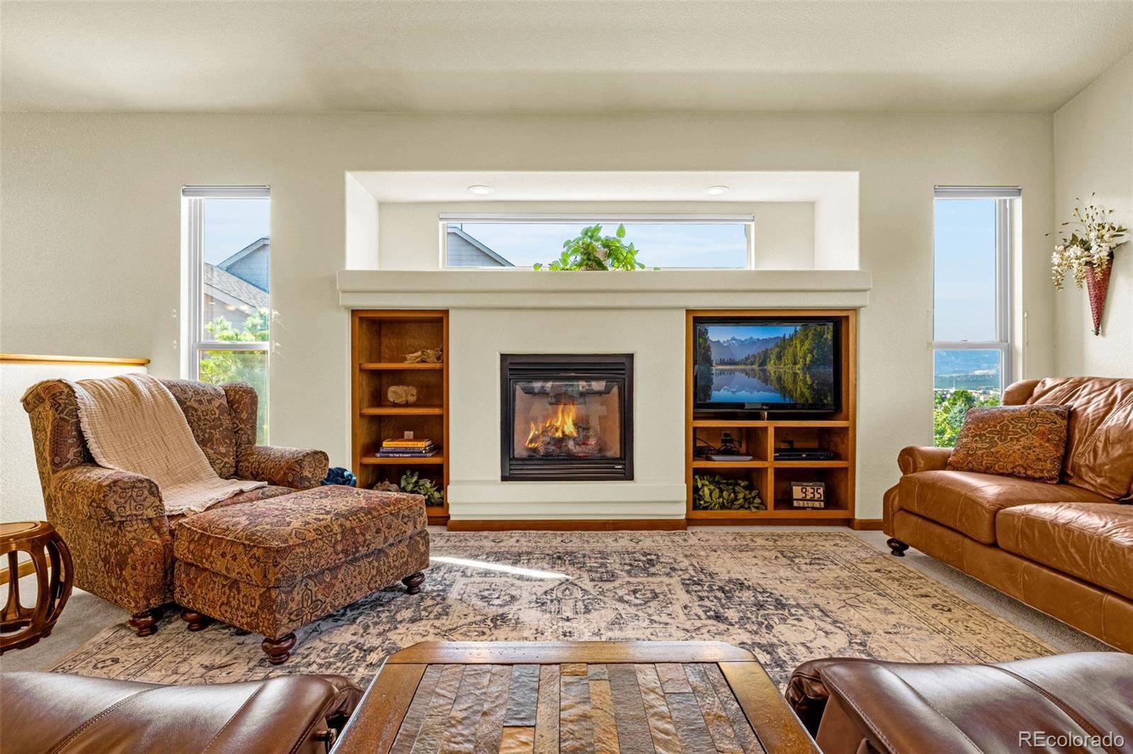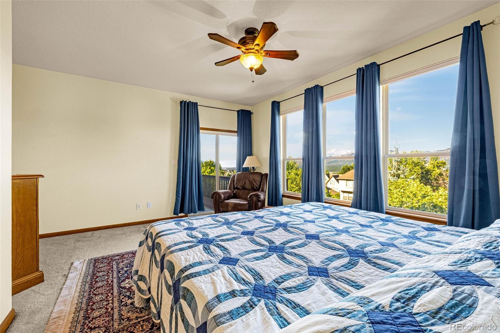 UNMATCHED Front Range views, refined finishes, and a seamless ranch-style layout — this home captures the very best of Colorado Springs living! This stunning home features unobstructed views of the entire Front Range, including the majestic Pikes Peak, from the covered composite deck. The views can also be enjoyed from the Kitchen, which features a large island with quartz countertops and backsplash, 42" maple cabinets with crown molding, touchless faucet, under-cabinet lighting, and a convenient appliance nook with outlets. Premium GE Profile appliances—including double ovens, induction cooktop and a 3-drawer refrigerator— will satisfy any home chef. The Main Level also offers real hardwood floors, gas fireplace, a stunning separate Dining Area, and vaulted ceilings to highlight those views. The primary suite is a true retreat, sharing the same dramatic Pikes Peak view, with separate deck access, a luxurious five-piece bath, and a massive walk-in closet with heated floors and custom closet system. The heated floors continue into through the Bath, Closet and into the mud room, which features a utility sink. The fully finished walkout basement extends the living space, offering its own stunning mountain views, abundant storage across three areas, and recessed lighting throughout. The secondary bedrooms are spacious, and the curb appeal is spectacular. A rare find, this home features exquisite touches throughout! Enjoy the home's elegance, functionality, and Mountain Contemporary style in one of the premier neighborhoods in Northgate- Middle Creek! Welcome Home.