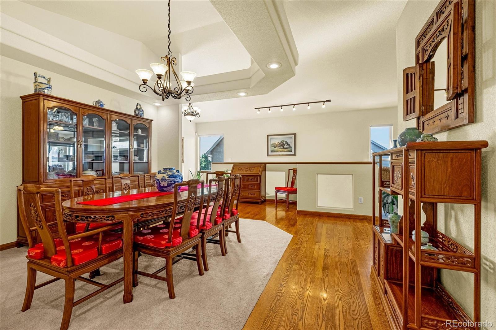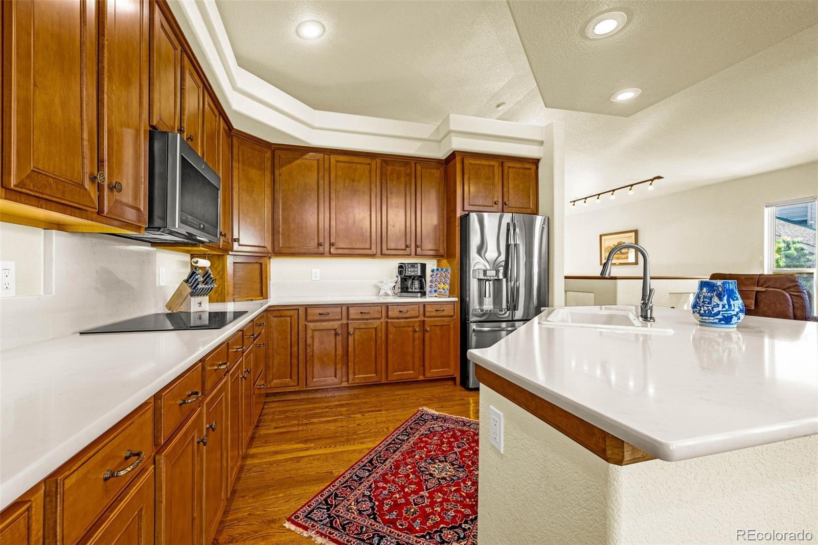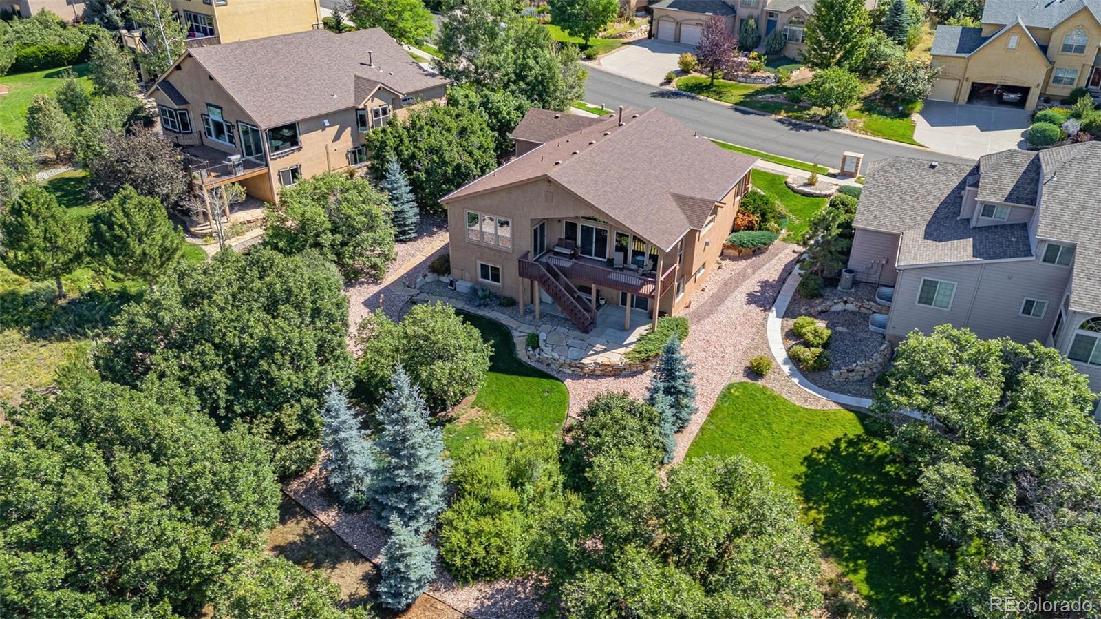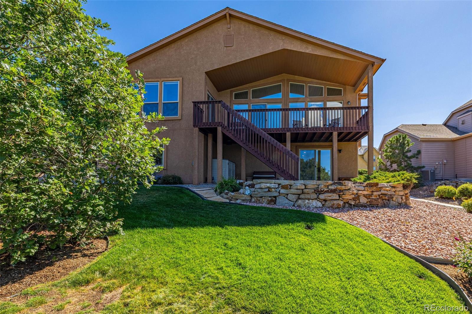 UNMATCHED Front Range views, refined finishes, and a seamless ranch-style layout — this home captures the very best of Colorado Springs living! This stunning home features unobstructed views of the entire Front Range, including the majestic Pikes Peak, from the covered composite deck. The views can also be enjoyed from the Kitchen, which features a large island with quartz countertops and backsplash, 42" maple cabinets with crown molding, touchless faucet, under-cabinet lighting, and a convenient appliance nook with outlets. Premium GE Profile appliances—including double ovens, induction cooktop and a 3-drawer refrigerator— will satisfy any home chef. The Main Level also offers real hardwood floors, gas fireplace, a stunning separate Dining Area, and vaulted ceilings to highlight those views. The primary suite is a true retreat, sharing the same dramatic Pikes Peak view, with separate deck access, a luxurious five-piece bath, and a massive walk-in closet with heated floors and custom closet system. The heated floors continue into through the Bath, Closet and into the mud room, which features a utility sink. The fully finished walkout basement extends the living space, offering its own stunning mountain views, abundant storage across three areas, and recessed lighting throughout. The secondary bedrooms are spacious, and the curb appeal is spectacular. A rare find, this home features exquisite touches throughout! Enjoy the home's elegance, functionality, and Mountain Contemporary style in one of the premier neighborhoods in Northgate- Middle Creek! Welcome Home.