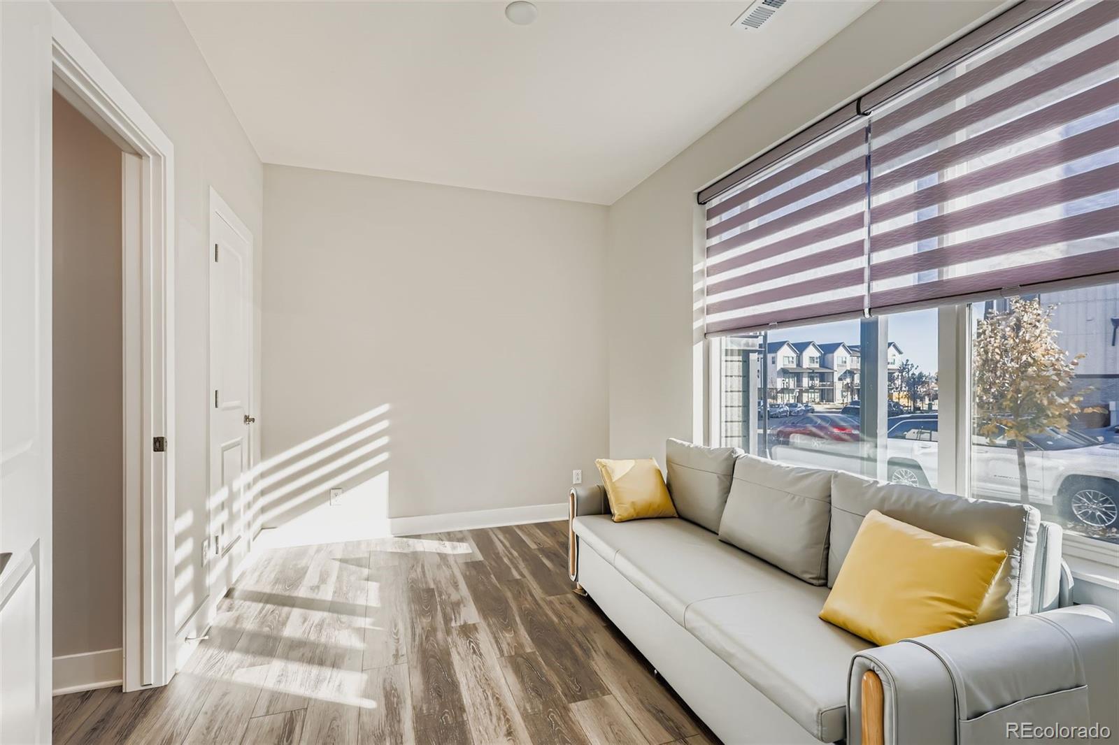Welcome to this beautifully designed 3-bedroom, 3.5-bath modern home in the heart of Wheat Ridge—where clean lines, bright natural light, and warm finishes come together in perfect balance. With high ceilings, and an effortless open floor plan, this home lives spaciously and feels instantly welcoming. The gourmet kitchen is the true centerpiece of the home, featuring cabinets to the ceiling, sleek quartz countertops, stainless steel appliances, and a large island ideal for gathering and entertaining. The adjoining dining and living spaces are open and airy, offering flexibility for everyday living as well as hosting. Upstairs, the primary suite is complete with a generous walk-in closet and bathroom with dual sinks and a beautifully tiled shower. The upper level also features the second bedroom and bathroom as well as the laundry. On the lower level, a bright bonus bedroom or flex space offers even more versatility with an en suite full bathroom. Throughout the home, oversized windows, modern lighting, and neutral finishes create a crisp, elevated feel. Enjoy the convenience of an attached 2-car garage and a low-maintenance lock-and-leave lifestyle, all within a vibrant, newly built community close to parks, dining, and easy commuting routes.
