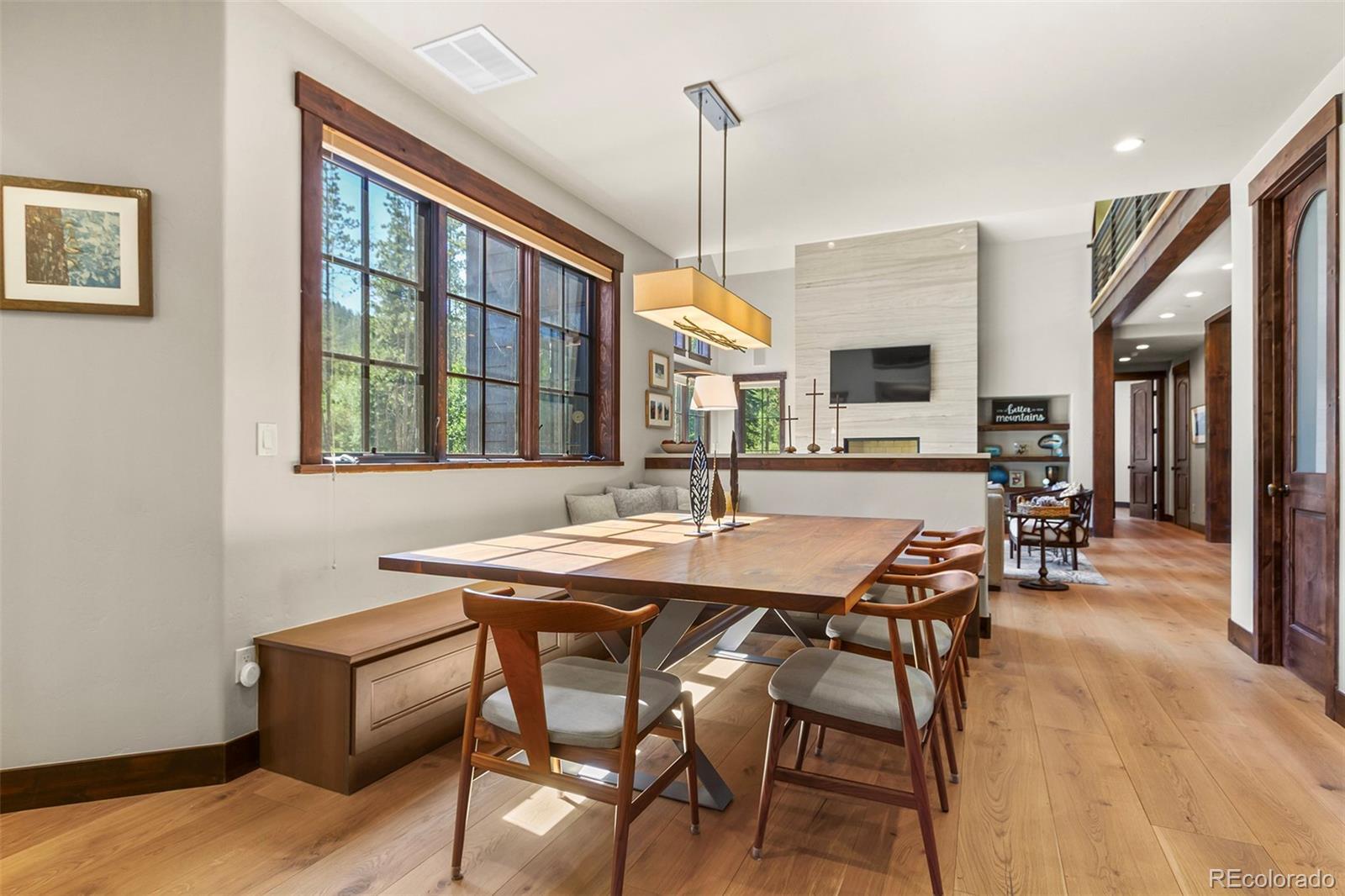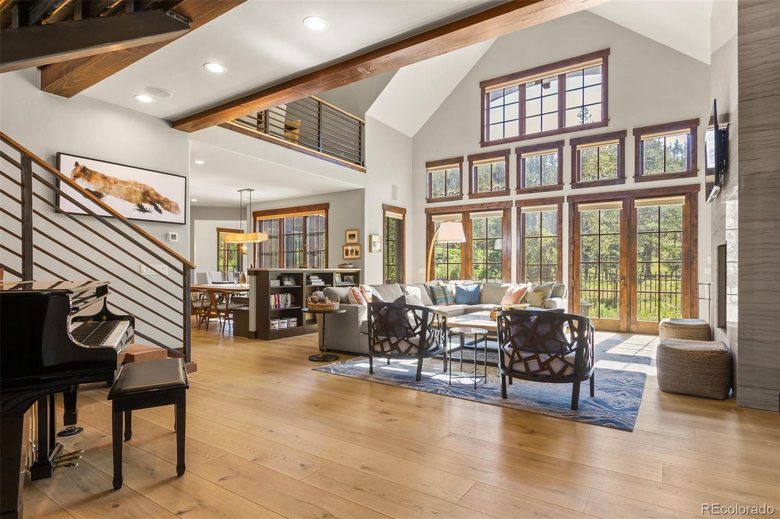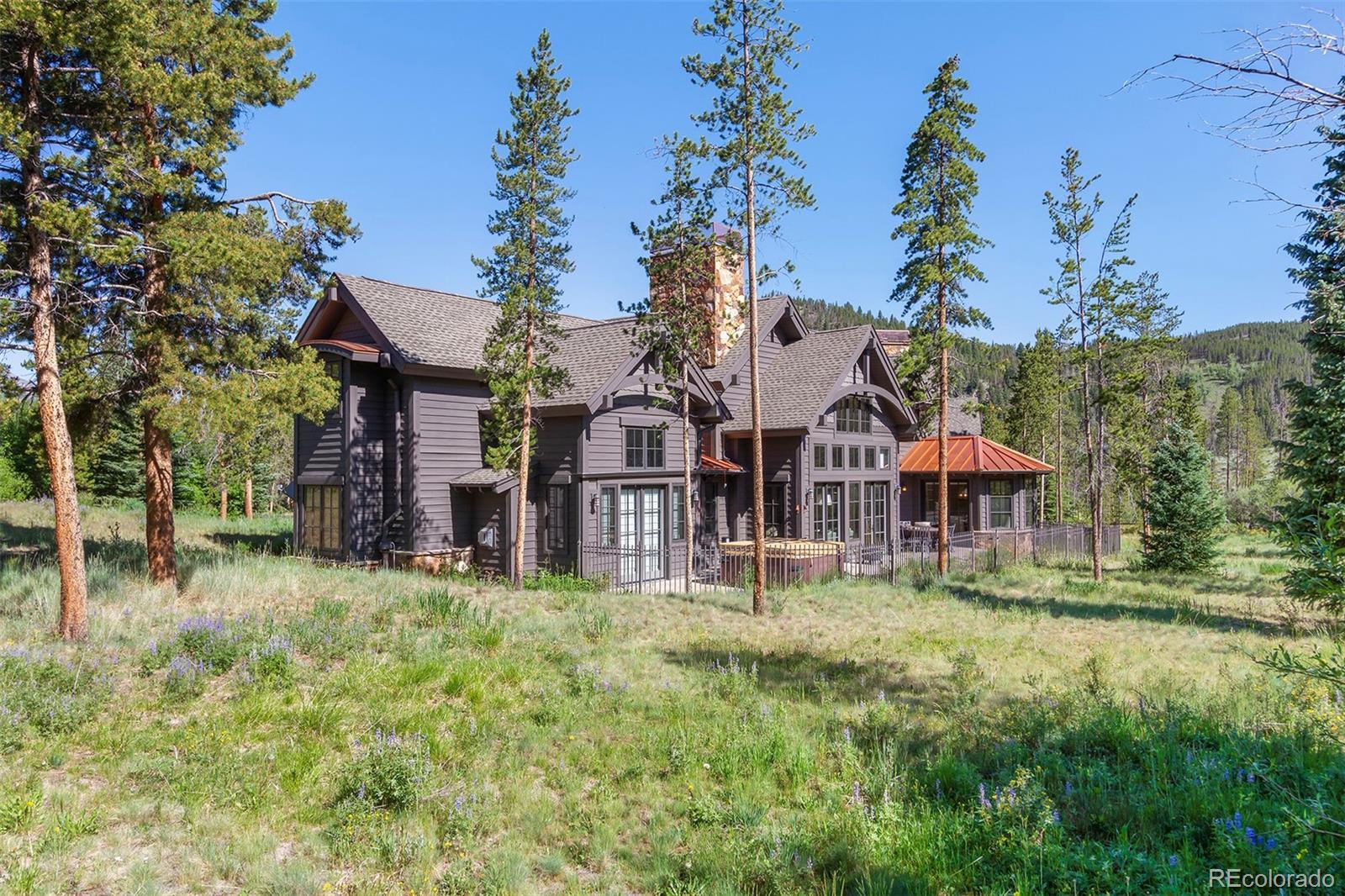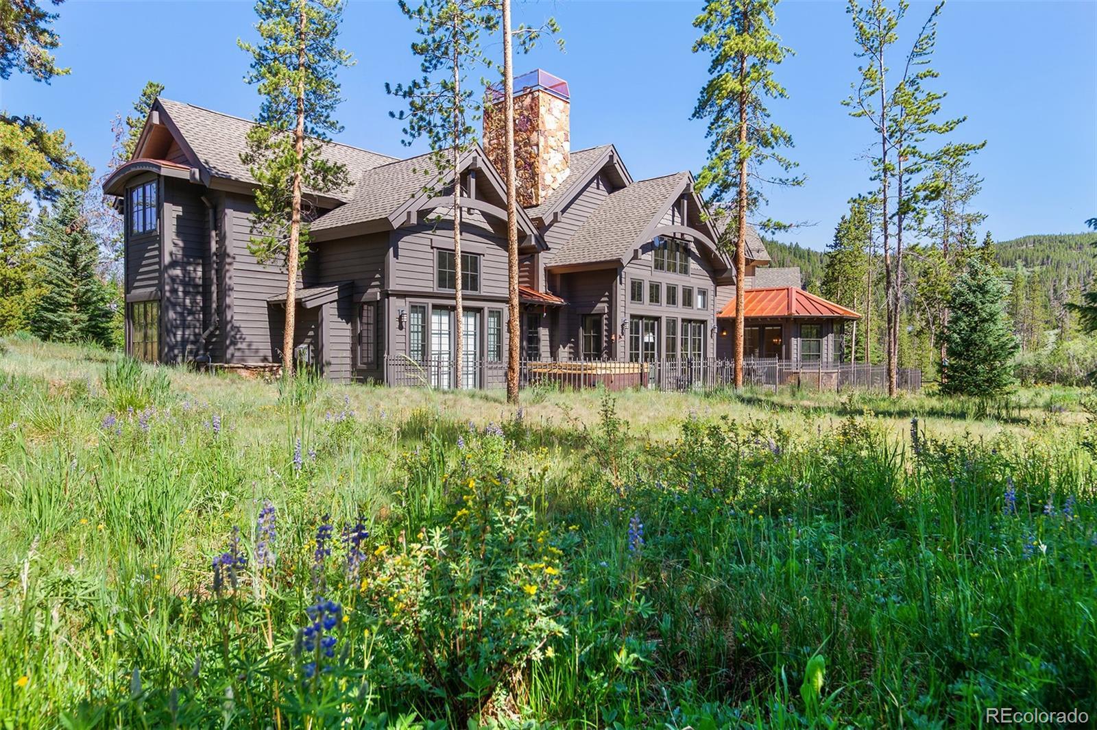 Highlands hidden treasure! Supremely private edge of Breckenridge setting where Classic Colorado meets Mountain Contemporary. Extensively renovated throughout, featuring magnificent chef's kitchen, sumptuous main level primary suite, spa grade baths, fireplaces, wide plank hardwood flooring and much more! Sunny, level 1 ac+ site is bordered by open space and Jack Nicklaus Elk Course in the coveted Highlands Park neighborhood. Deer, elk and moose are your neighbors! Hiking and cross-country course are right out your door in this ultra private, convenient setting. So quiet you can hear the geese winging overhead. Not included in square footage is 432 sqft BONUS ROOM above third garage. Fully finished with TV/game center, electric decorative fireplace; perfect for sulky teen refuge or even garage band! Room for all of the toys below and band space above. Fenced backyard with private hot tub. Incredible opportunity for contemporary in-town living without the noise and crowds. Vacant and easy to show. See it today!