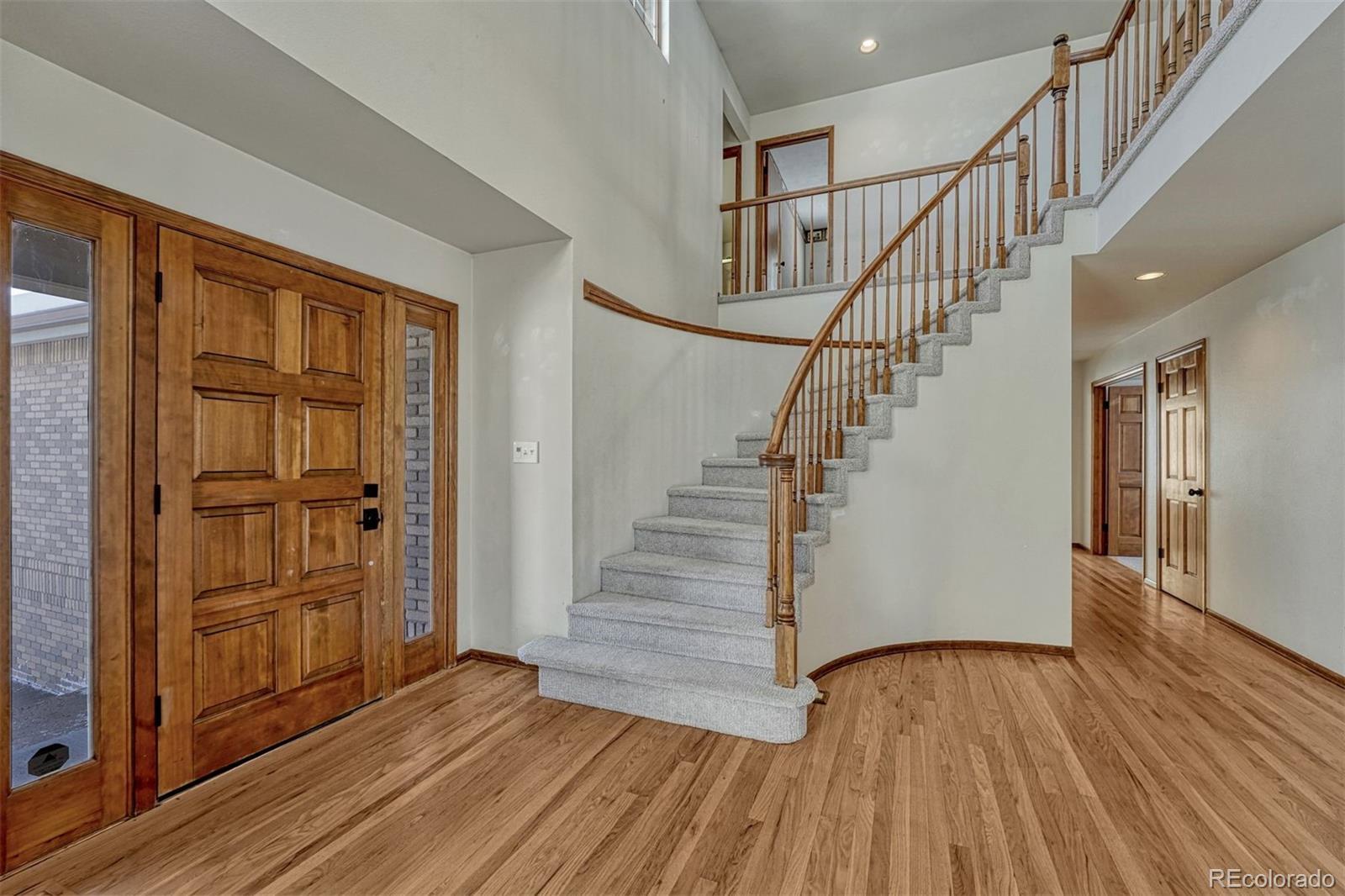 Poised at the end of a quiet cul-de-sac and tucked gracefully into the mountainside, this grand Colorado residence captures sweeping city views while offering the peaceful feeling of being wrapped in nature. A dramatic entry reveals soaring vaulted ceilings, expansive windows, and an open, light-filled layout that immediately sets the tone for elevated living. The main level is thoughtfully designed for both elegant entertaining and everyday comfort, with formal living and dining spaces, a warm and inviting family room centered around a striking fireplace, and a flowing connection to the kitchen and breakfast nook. A main-level primary suite provides a private retreat, complemented by a second bedroom or office for added flexibility. Upstairs, a second primary suite offers an ideal guest or multi-generational escape, accompanied by two additional spacious bedrooms. The unfinished walk-out basement presents a remarkable opportunity to create an extraordinary future living space tailored to your vision. Surrounded by parks, minutes from schools and everyday conveniences, and complete with a three-car garage, this home delivers a rare blend of scale, setting, and potential—offering mountain serenity with city connection.
