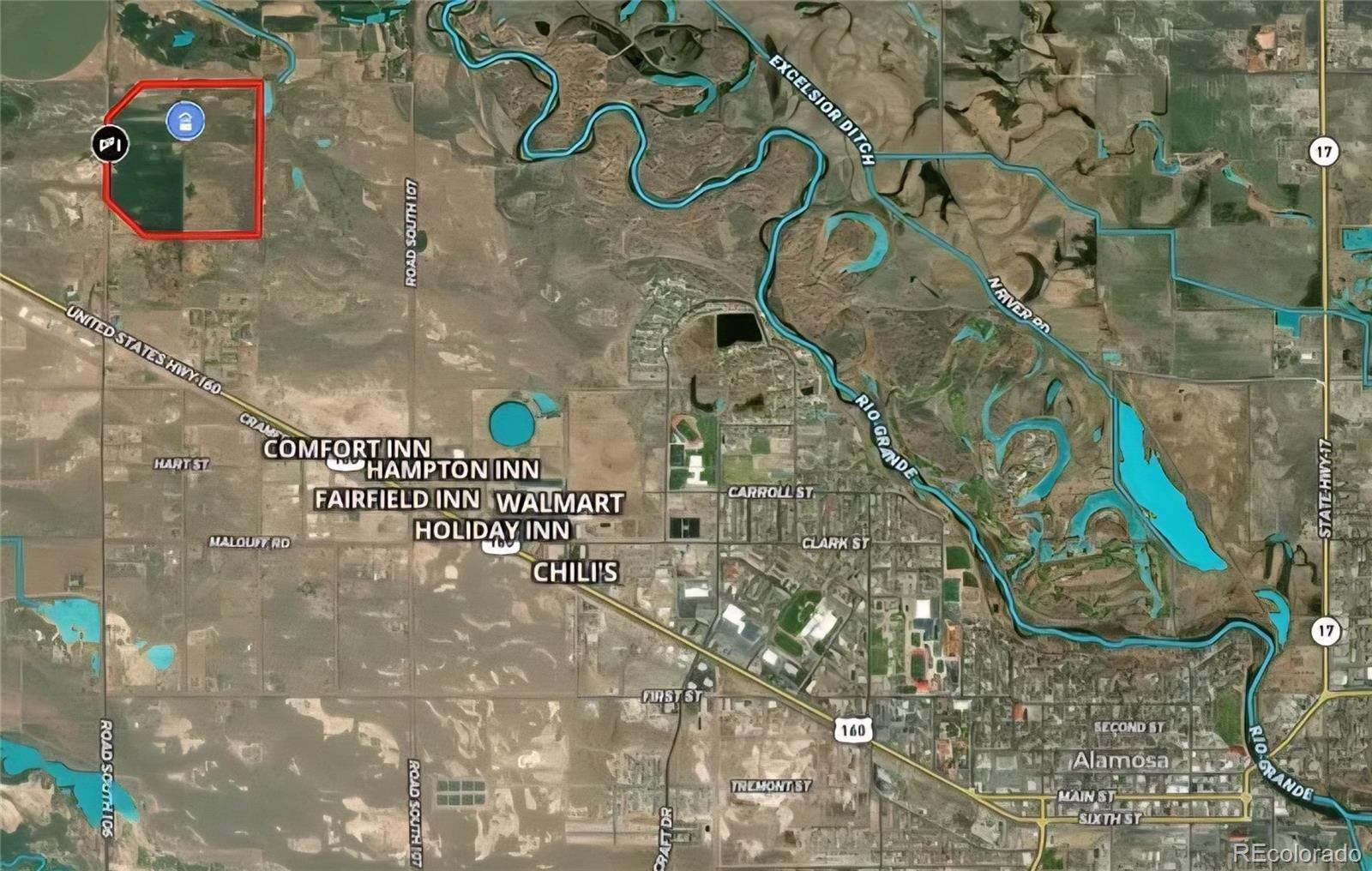 A rare opportunity to own an irrigated farmland parcel with two shares of the Centennial Ditch Company. This property sits just ½ mile off Highway 160 and within minutes of downtown Alamosa, offering both convenience and privacy. Enjoy 360-degree mountain views including the San Juan Range and Blanca Peak. The land is fully fenced and features excellent grass growth sustained by the historic ditch irrigation system. A well, previously used for livestock watering, is located on the property. The current owners utilize a portion of the acreage for hay cultivation, while the remainder supports seasonal and year-round cattle grazing. This property’s prime location, reliable water source, and agricultural versatility make it ideal for farming, ranching, or building your dream rural residence. Water Rights: Two (2) shares of the Centennial Irrigating Ditch Company, to transfer with the sale. Fencing: Fully fenced perimeter. Access: 0.5 miles off Highway 160 via county road. Use: Hay production, livestock grazing, or rural homesite potential. Utilities: Well on site; power nearby. Views: San Juan Mountains, Blanca Peak, Sangre de Cristo Range. Parcel 528531200132 with 122.62 acres and Parcel 528514202002 with 28.09 acres are being sold together in this listing.