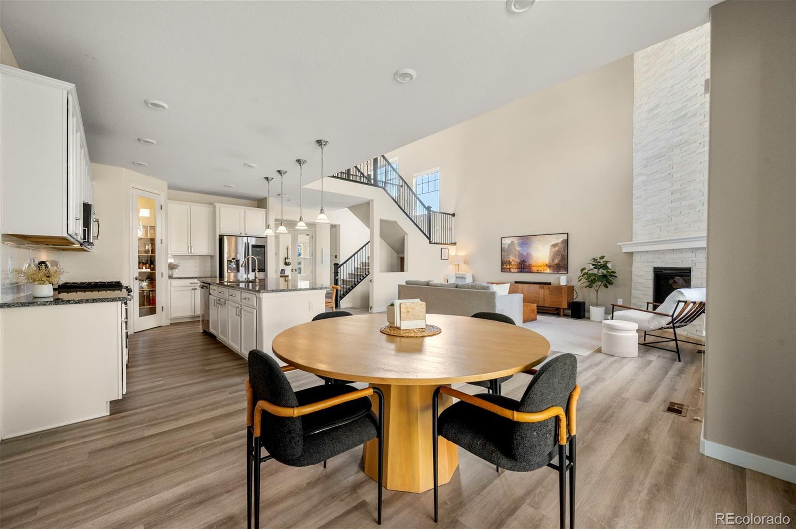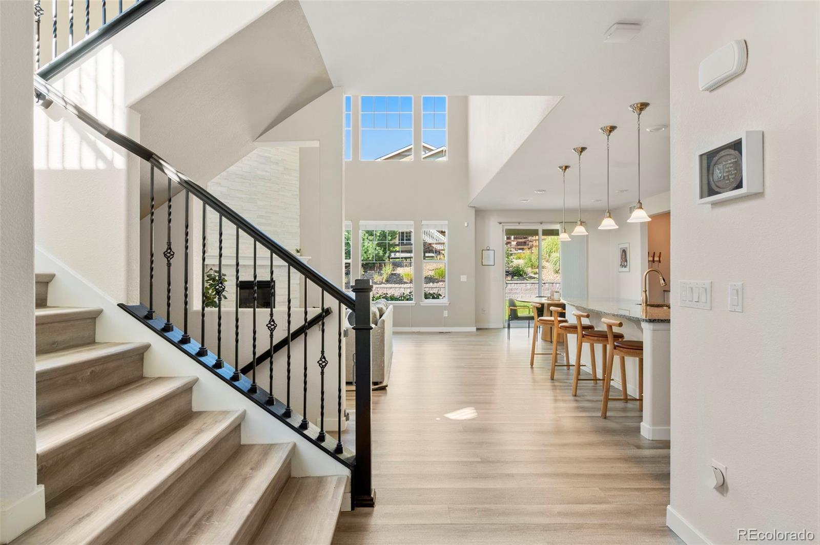 Welcome to this immaculate 2-story in the highly sought-after Leyden Rock community. With 4 bedrooms, 4 bathrooms, and a beautifully finished basement, this home blends comfort, style, and function. The main level offers a private office off the foyer, luxury vinyl flooring, and a gourmet kitchen with quartz counters, stainless appliances, gas cooktop, large island, and walk-in pantry. The kitchen flows seamlessly into the soaring living room with a stone fireplace and opens to the covered patio and beautifully landscaped yard. Off the 3-car garage, a convenient mudroom keeps everyday living organized. Upstairs, the primary suite features a tray ceiling, spa-like bath with dual vanities, soaking tub, tiled shower with bench, and dual walk-in closets. Two additional bedrooms share a Jack & Jill bath, while the versatile loft captures mountain views and provides the perfect spot for a playroom, office, or second living space. The finished basement is a true retreat. Gather in the expansive family room, entertain at the stylish wet bar, or host guests in the large bedroom with full bath. This inviting space is ideal for movie nights, game day parties, or quiet evenings in. Leyden Rock amenities include a clubhouse with pool, multiple parks and playgrounds, and miles of trails. Nearby are Standley Lake, Rocky Flats Wildlife Refuge, and White Ranch Park, with easy access to Golden, Boulder, and Denver.