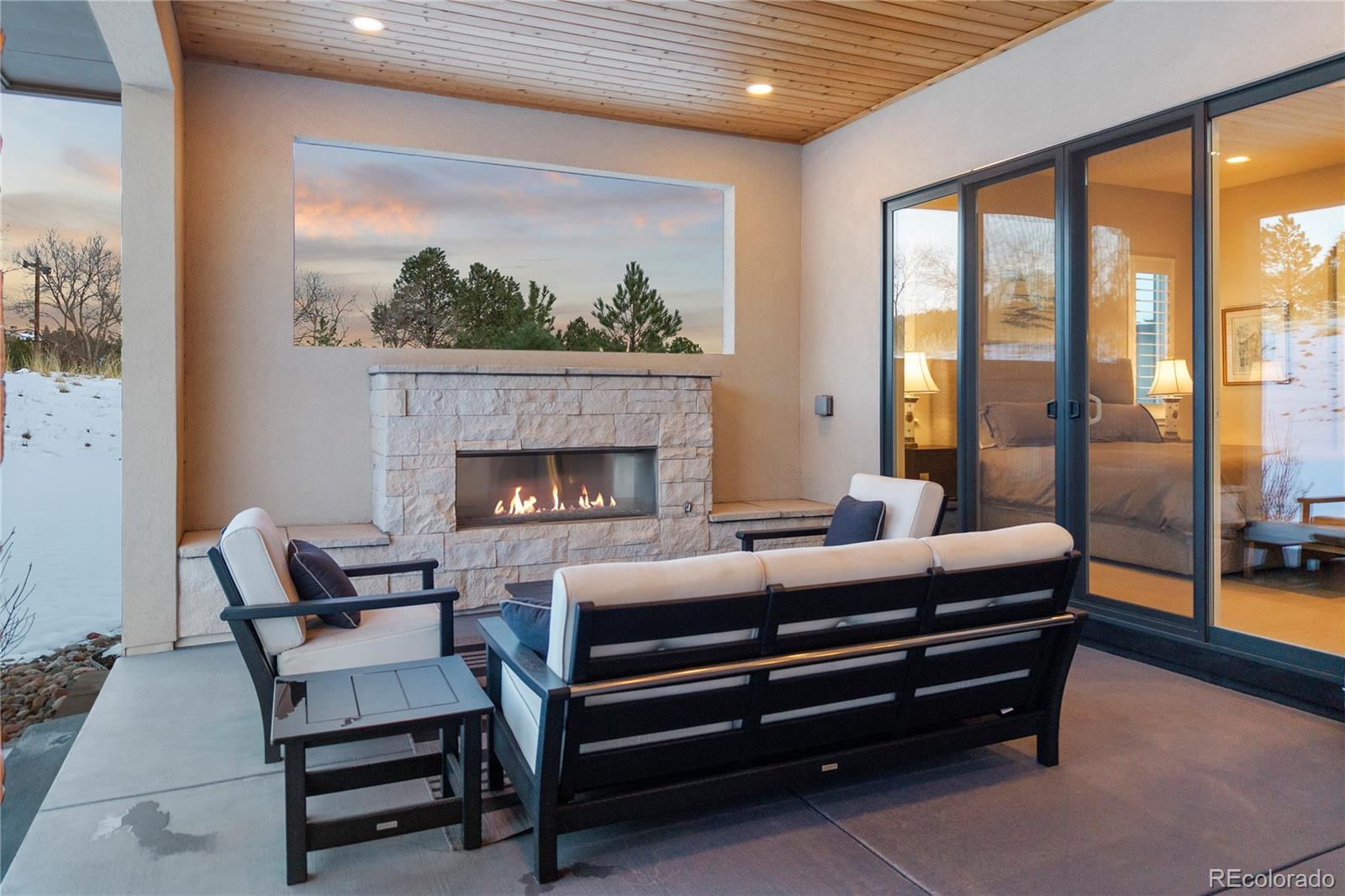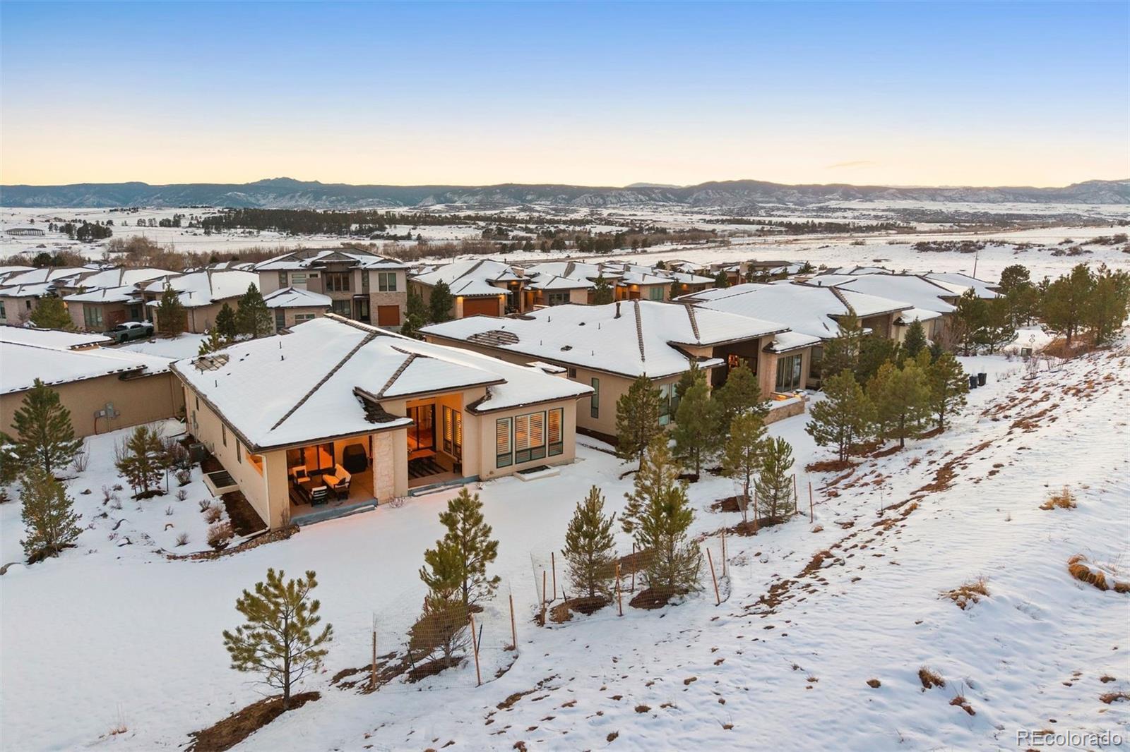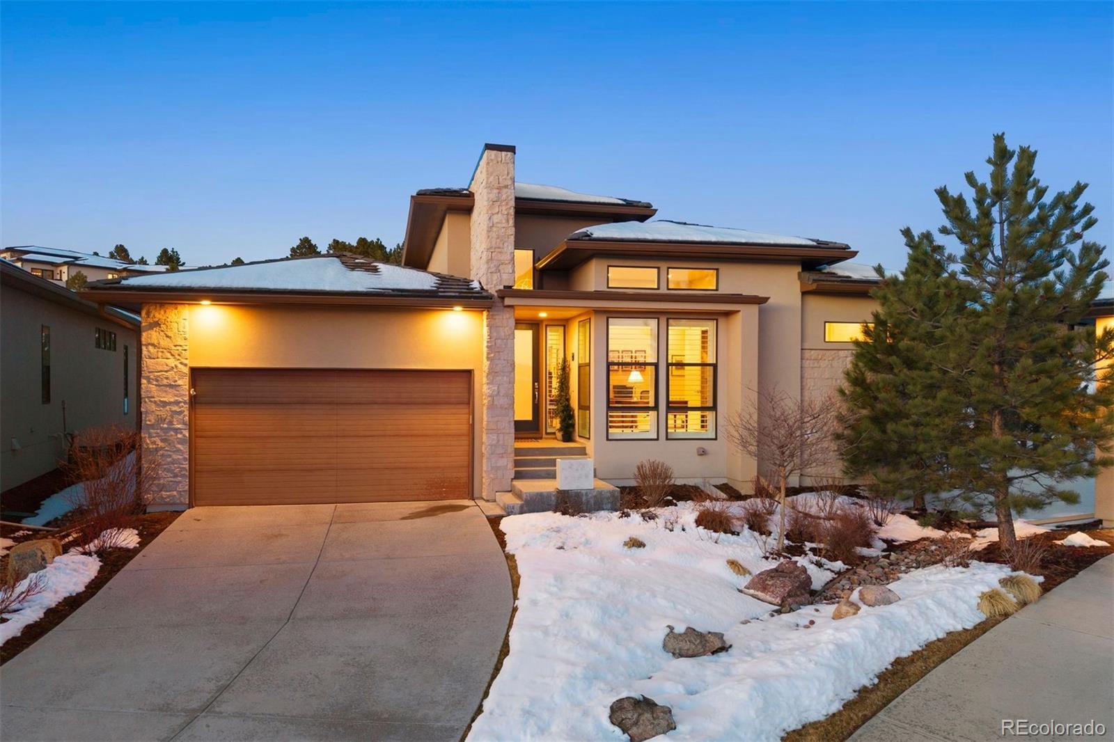 Prato offers an exceptional opportunity in the prestigious gated Castle Pines Village, privately set among towering pines, scenic trails, and world-class golf. The open-concept main level is thoughtfully designed for effortless entertaining, anchored by a chef’s kitchen with an oversized island, professional-grade Dacor appliances, and a generous walk-in pantry. The great room is framed by floor-to-ceiling windows that fill the space with natural light and centers on a dramatic fireplace with custom tile surround. A sophisticated serving bar with sink, wine refrigerator, and quartz countertops connects to the dining area, where sliding doors open to the covered patio for beautiful indoor–outdoor living. A convenient second bedroom on the main level with en suite bath is ideal for guests or a private home office. The light-filled main-level primary suite opens to the covered all-season patio with fireplace and features a spacious walk-in closet with built-ins and a spa-inspired bath with dual vanities, soaking tub, and a large glass shower with dual heads. The lower level offers a recreation/family room with tall ceilings and flexible space for relaxing, entertaining, or hobbies, along with two additional bedrooms with walk-in closets and a large unfinished storage area. Thoughtfully designed for comfort and convenience, the home offers an ideal lock-and-leave lifestyle in the heart of The Village. Residents enjoy the best of resort-style living with 24-hour gated security, pools, a fitness facility, tennis and pickleball, miles of scenic trails, and HOA-maintained landscaping.