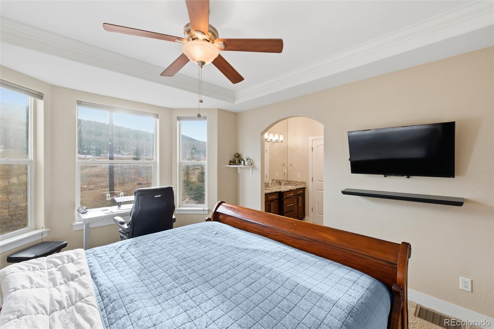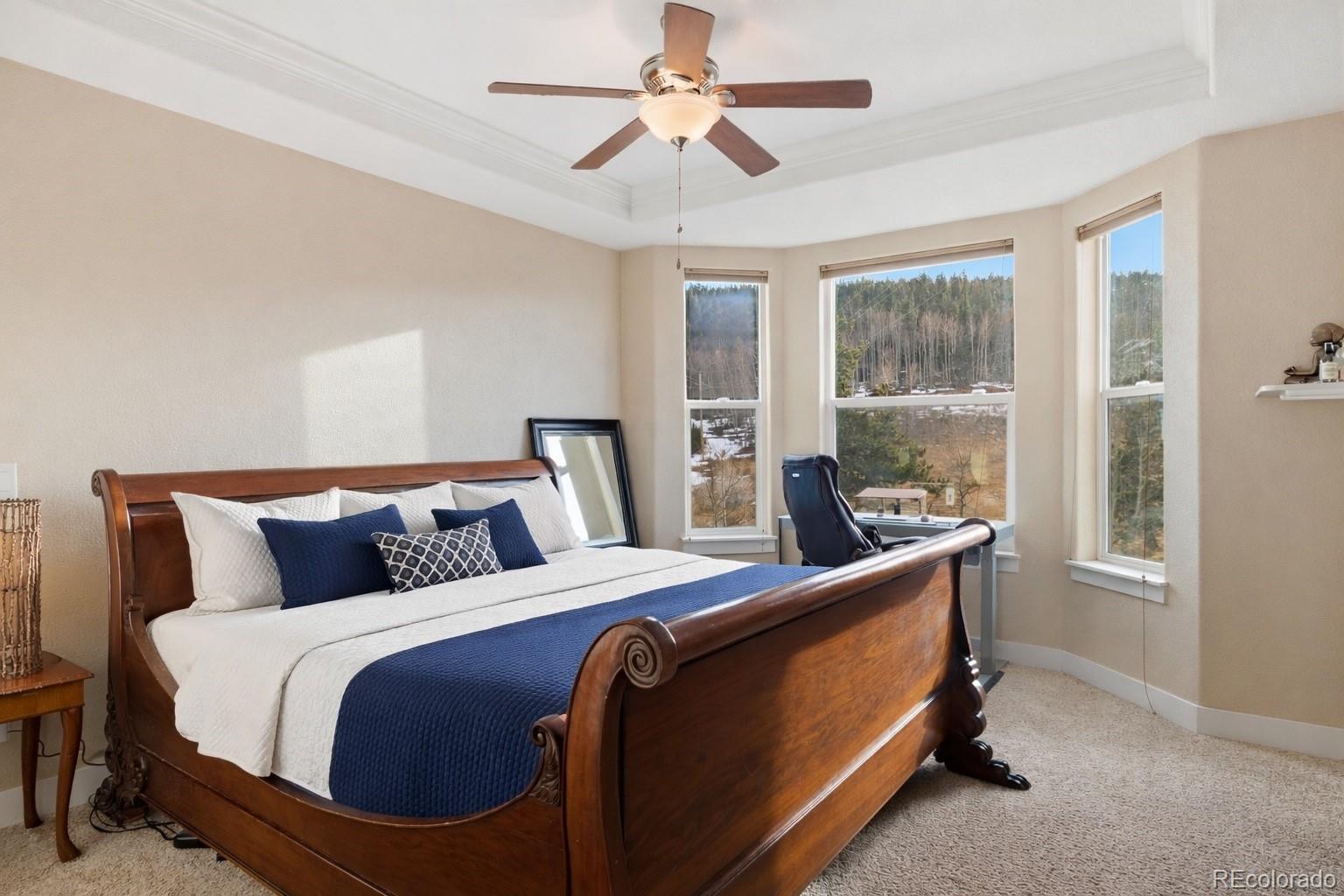 Welcome to this charming 2 bed/2.5 bathroom townhome in Central City with an attached 3 car garage AND private elevator that backs up to a serene mountain view. As you pull into your 3 car garage and enter your home from the ground floor there is a welcoming landing with a coat/storage closet. Either take the stairs or elevator up to the main living area where you'll find your living room, kitchen, and dining room. The elevator is easily maintained at $350/year with an annual inspection. Only 10 units in the community feature an elevator and 3 car garage. The kitchen boasts marble countertops, newer fridge, dishwasher, gas range stove, pot filler, and large pantry with room for stools around the kitchen island. The living room overlooks your patio with mountain views and a cozy gas fireplace with plenty of room for both a casual/formal dining space and/or bonus area for a desk/work-from-home space. Enjoy the hard-wired Bose surround sound system while watching your favorite movie or sports. The third floor features both bedrooms with en suite bathrooms. The sun-drenched primary bedroom has a large walk-in closet, plenty of space for your king-sized bed, an en suite 5 piece bathroom with a jet tub all overlooking the surrounding mountain scene. The second bedroom is super spacious with its own attached bathroom. Additionally, the laundry is conveniently located on the third floor for an extra modern touch. Not to mention a high efficiency tankless water heater that heats water on demand, reducing energy waste and utility bills. The home is just a short walk into town for coffee at the cafe, restaurants, casinos and entertainment. Not to mention a short drive up the road, a public fishing area, access to trails and the outdoors to suit all your needs. Living in Central City means an hour's access to Denver or conversely some of the most popular ski areas. Come enjoy wildlife right outside your doorstep. *all photos have been enhanced to remove personal belongings*