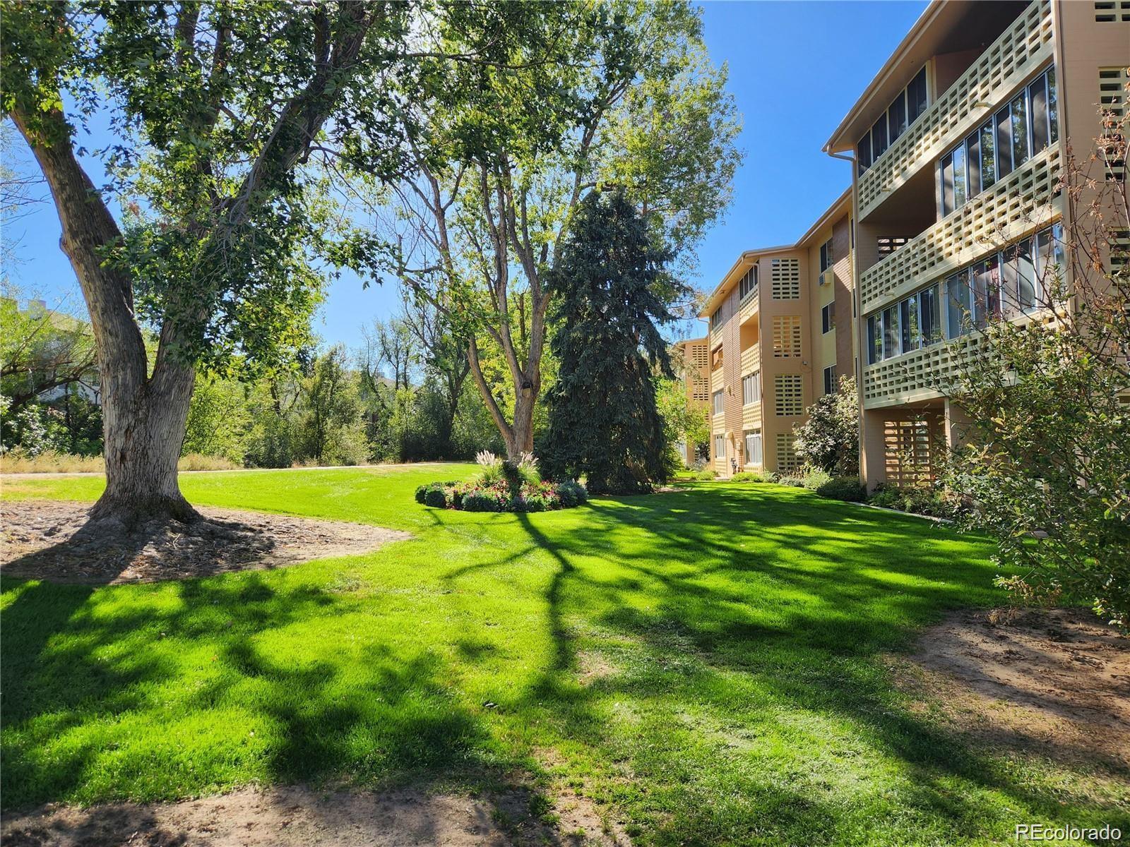 Located on the 2nd level with the community Laundry and storage unit! The condo is overlooking the highline canal with lots of natural light. The condo is 855 sq sf condo, 1 large bedroom, 1 bathroom, 1 car detached garage. Kitchen: Stainless steel double sink with tile backsplash, Refrigerator, Detached microwave, Stove/range/oven, Hood & Pergo wood flooring. The kitchen does not have a dishwasher but can easily be installed. Large bedroom with double closets. Bathroom: updated with adult vanity height, tile floors, comfort height toilet and grab bars in the bathroom tub and shower. Bedroom and living room have carpet flooring and 2 Window A/C units. the bedroom is newer and never has been used. Lanai sliding door already installed ($2.800 Value). Plus, the lanai has updated the vinyl windows about 8 years ago, $9,000 value. This space offers an additional living area and serves as the perfect spot to unwind while captivating views of the flowerbeds, lush trees and open space. One car detached garage plus a storage unit on the same floor (2nd). The laundry is located on the second floor, very convenient, you can just walk down the hallway. The building hallways have been updated and new led lighting. The community is well maintained year around and has beautiful garden beds in the spring, summer and fall. HOA includes Property taxes, landscaping, all snow removal, guest parking, community center – including classes, heat, sewer, water, all operations of the community, trash and recycling, indoor and outdoor swimming pool, fitness facility with locker room, sauna, hot tub, 24-hour community response department, secure door entering the building, auditorium and much more. There is also a public 9-hole golf course, pro-golf shop, and a large restaurant. and banquet facility on site. Remember new homeowners will be required to attend an orientation with the HOA prior to closing. Welcome to your new home!