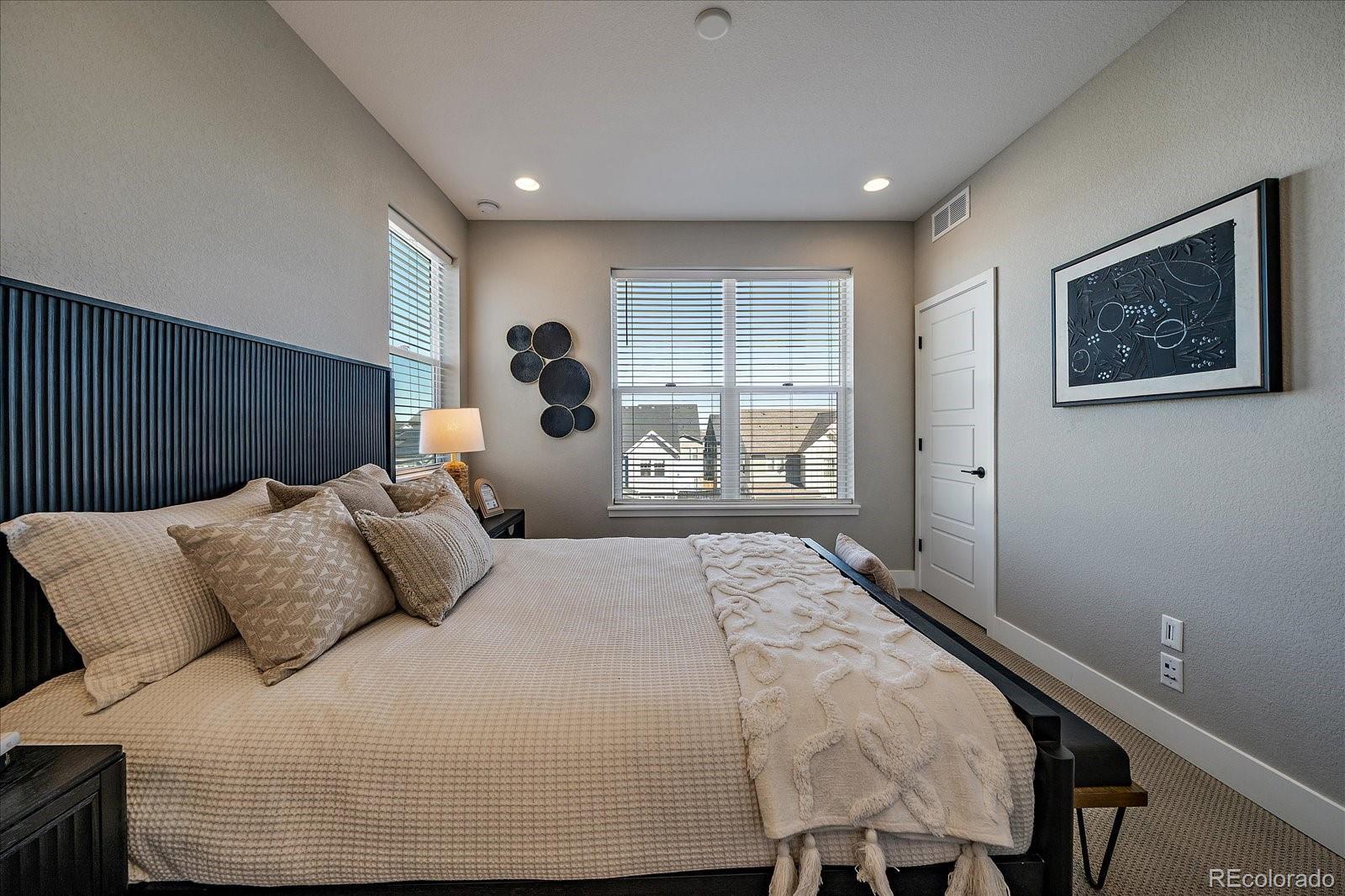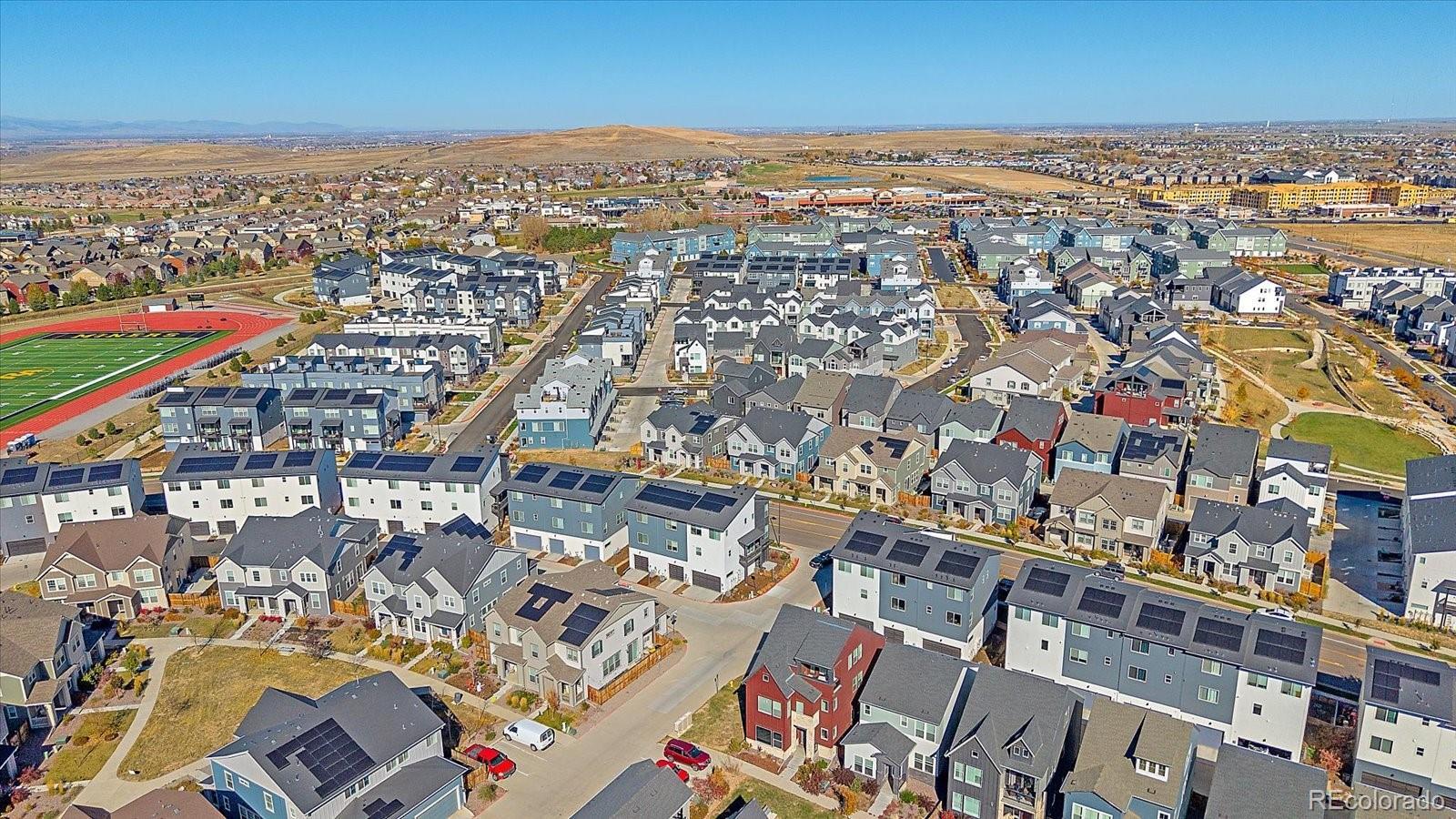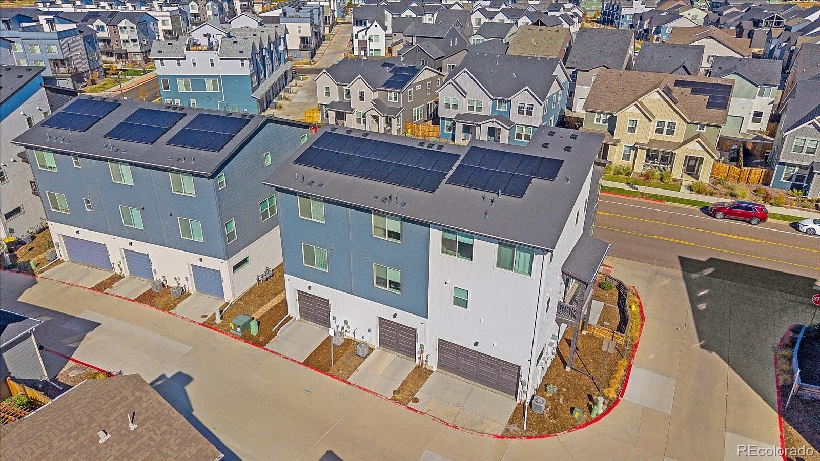 This stunning home combines modern design with sustainable living. Step inside to discover an open-concept main level with soaring 9-foot ceilings, a spacious kitchen featuring sleek stainless steel appliances, quartz countertops, a built-in pantry, and a stylish subway tile backsplash. The dining area flows seamlessly into the great room — perfect for entertaining or relaxing with friends and family. Upstairs, you'll find two spacious bedrooms, each with its own private bath and walk-in closet, along with a convenient upper-level laundry room and linen closet. The versatile DoMore space on the entry level is designed to adapt to your lifestyle...ideal for a home gym, office, creative studio, or just more storage. Interior finishes are absolutely gorgeous, featuring engineered wood flooring throughout main level, modern design touches, and thoughtful details in every corner. Enjoy comfort and peace of mind with energy-efficient features including solar panels, air conditioning, a tankless water heater, an active radon system, and an oversized one-car garage with a WiFi-enabled door opener. Solar lease is only $45/month. Built by Thrive Homes, this residence meets the highest standards of innovation and health. It is Zero Energy Ready, EPA Indoor airPLUS Qualified, and LEED Certified, ensuring superior efficiency and cleaner indoor air. Perfectly located between Denver and Boulder in the vibrant Baseline community, this home offers the ideal blend of convenience, sustainability, and style. Move-in ready! Schedule your private tour today!