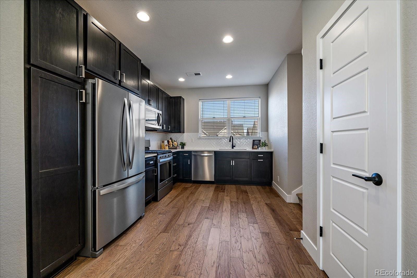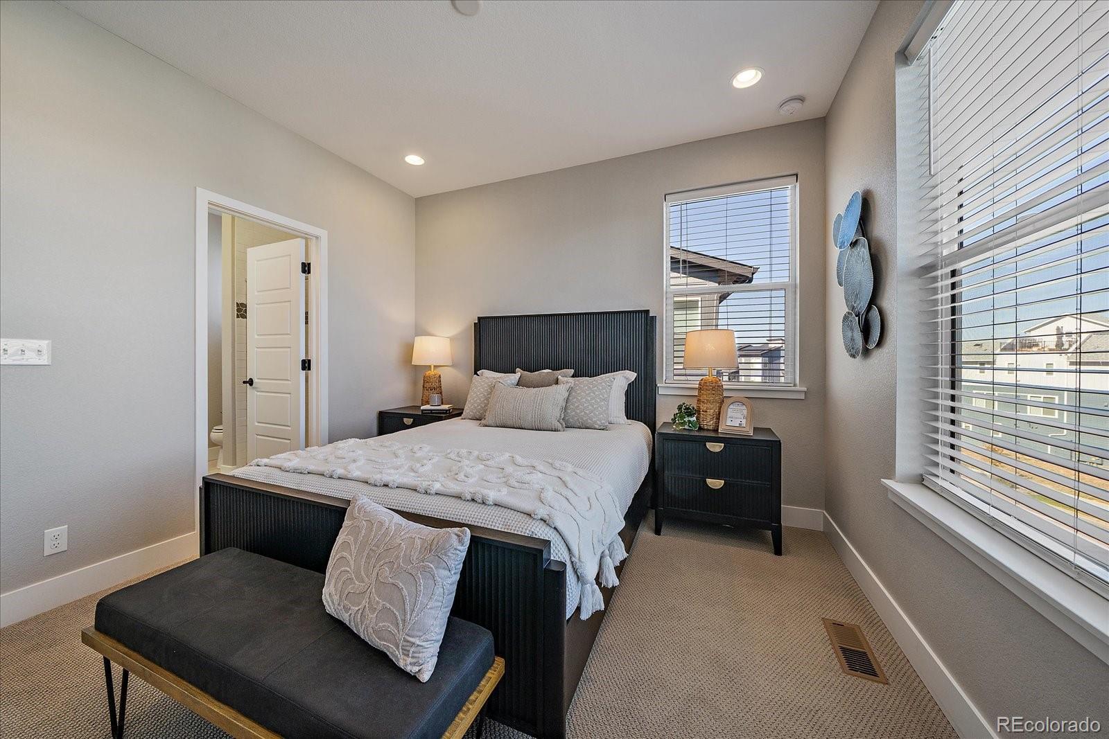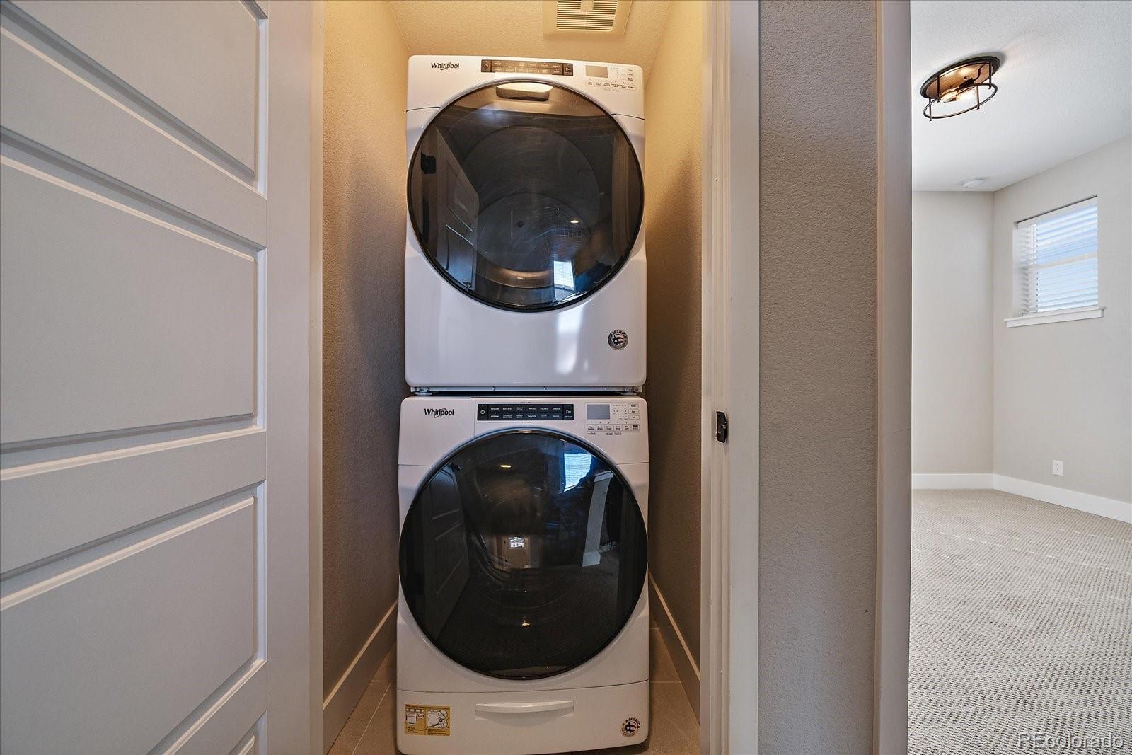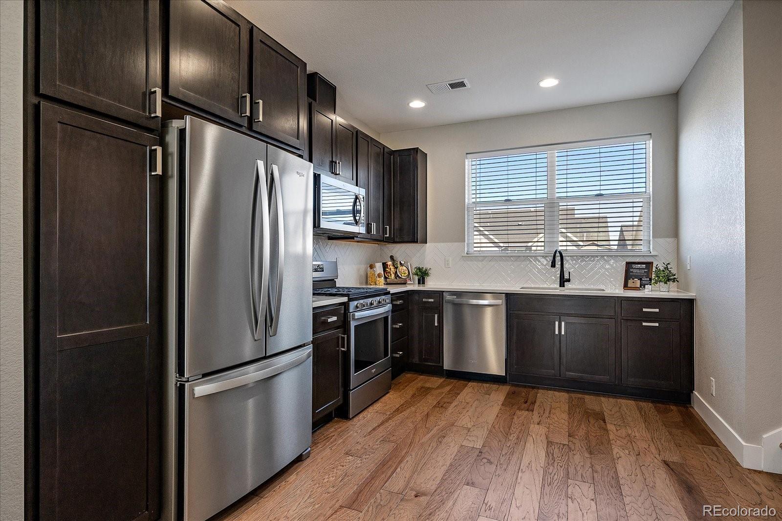This stunning home combines modern design with sustainable living. Step inside to discover an open-concept main level with soaring 9-foot ceilings, a spacious kitchen featuring sleek stainless steel appliances, quartz countertops, a built-in pantry, and a stylish subway tile backsplash. The dining area flows seamlessly into the great room — perfect for entertaining or relaxing with friends and family. Upstairs, you'll find two spacious bedrooms, each with its own private bath and walk-in closet, along with a convenient upper-level laundry room and linen closet. The versatile DoMore space on the entry level is designed to adapt to your lifestyle...ideal for a home gym, office, creative studio, or just more storage. Interior finishes are absolutely gorgeous, featuring engineered wood flooring throughout main level, modern design touches, and thoughtful details in every corner. Enjoy comfort and peace of mind with energy-efficient features including solar panels, air conditioning, a tankless water heater, an active radon system, and an oversized one-car garage with a WiFi-enabled door opener. Solar lease is only $45/month. Built by Thrive Homes, this residence meets the highest standards of innovation and health. It is Zero Energy Ready, EPA Indoor airPLUS Qualified, and LEED Certified, ensuring superior efficiency and cleaner indoor air. Perfectly located between Denver and Boulder in the vibrant Baseline community, this home offers the ideal blend of convenience, sustainability, and style. Move-in ready! Schedule your private tour today!