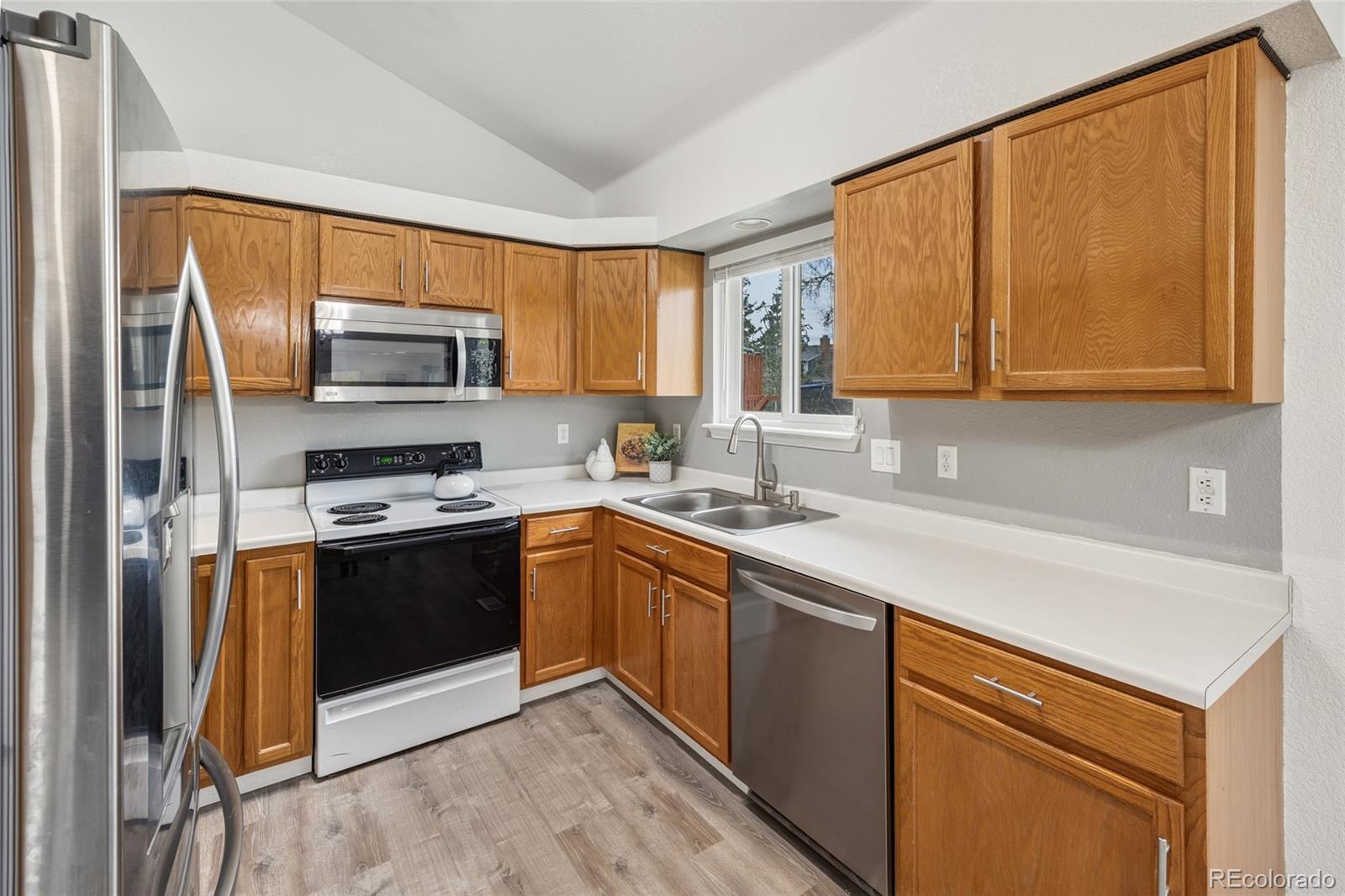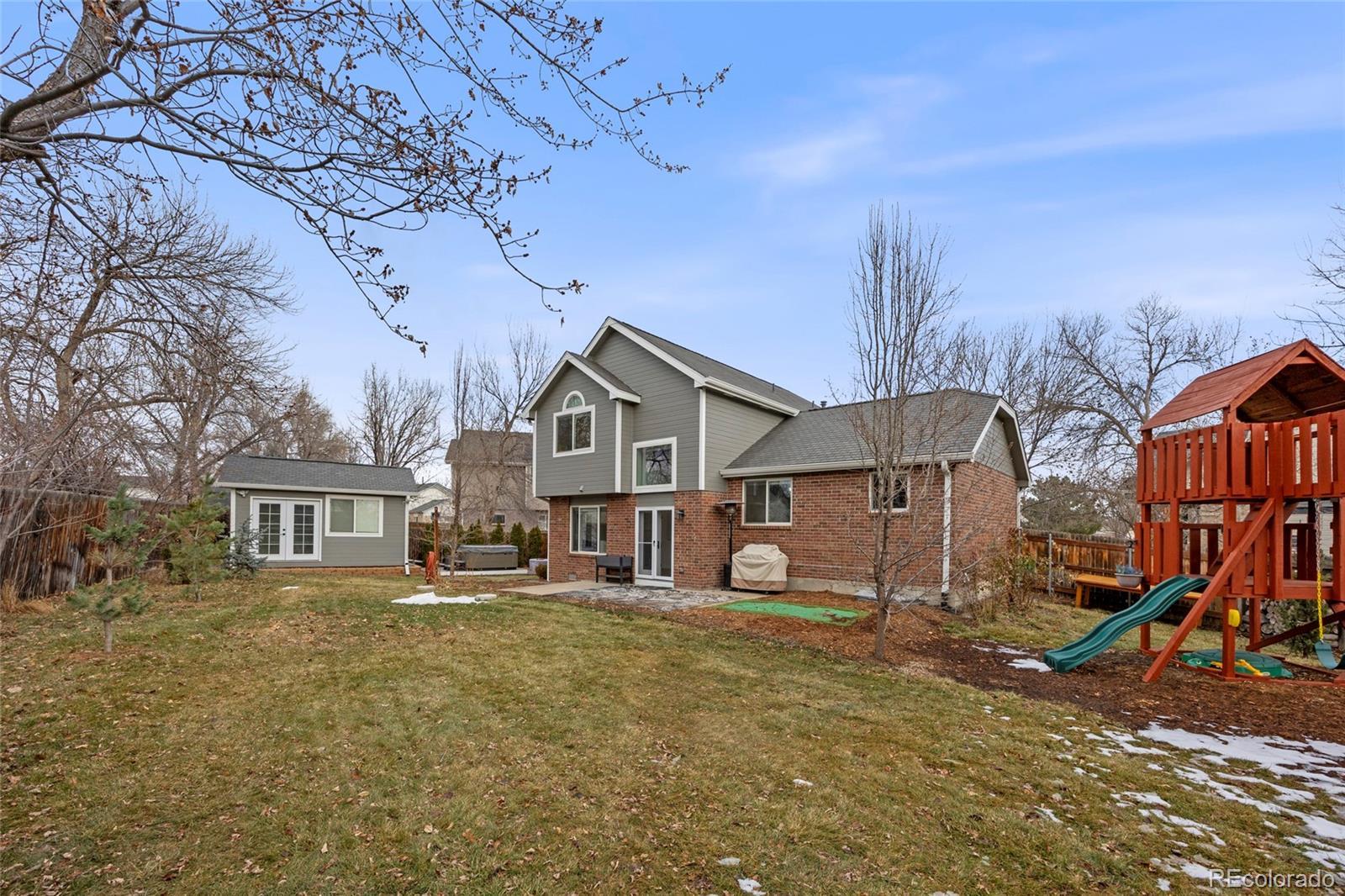 Welcome to this thoughtfully updated home in the desirable Sunset West community of Littleton, offering a rare blend of neighborhood charm and walkable convenience. Situated on a quiet cul-de-sac, this 4-bedroom, 4-bath residence features a flexible layout, extensive updates, and an exceptional outdoor setting. The main and upper levels showcase luxury vinyl flooring, complemented by tile in the bathrooms and carpeted basement living spaces. Recent improvements include updated primary, guest, and main bathrooms, added recessed lighting, a new fireplace, and custom closet systems throughout. All appliances are included, making this home truly move-in ready. The finished basement adds valuable flexibility with a private bedroom or office and a ¾ bath, ideal for guests or remote work. Step outside to a huge fenced yard featuring French doors to the backyard, an incredible custom playset, and a powered shed perfect for a workshop or creative “she-shed.” Major upgrades include a Class 4 composite/synthetic F-Wave roof (2023), new rain gutters, all new windows (2015), and a fully finished 3-car garage. The expansive lot offers space to relax, entertain, and enjoy outdoor living. What truly sets this home apart is its walkable location. Enjoy the feel of a residential neighborhood while being just steps from shopping, restaurants, and retail at Southwest Plaza, along with nearby trails and everyday conveniences. A rare opportunity combining updates, outdoor space, and lifestyle access in one of Littleton’s most convenient locations.