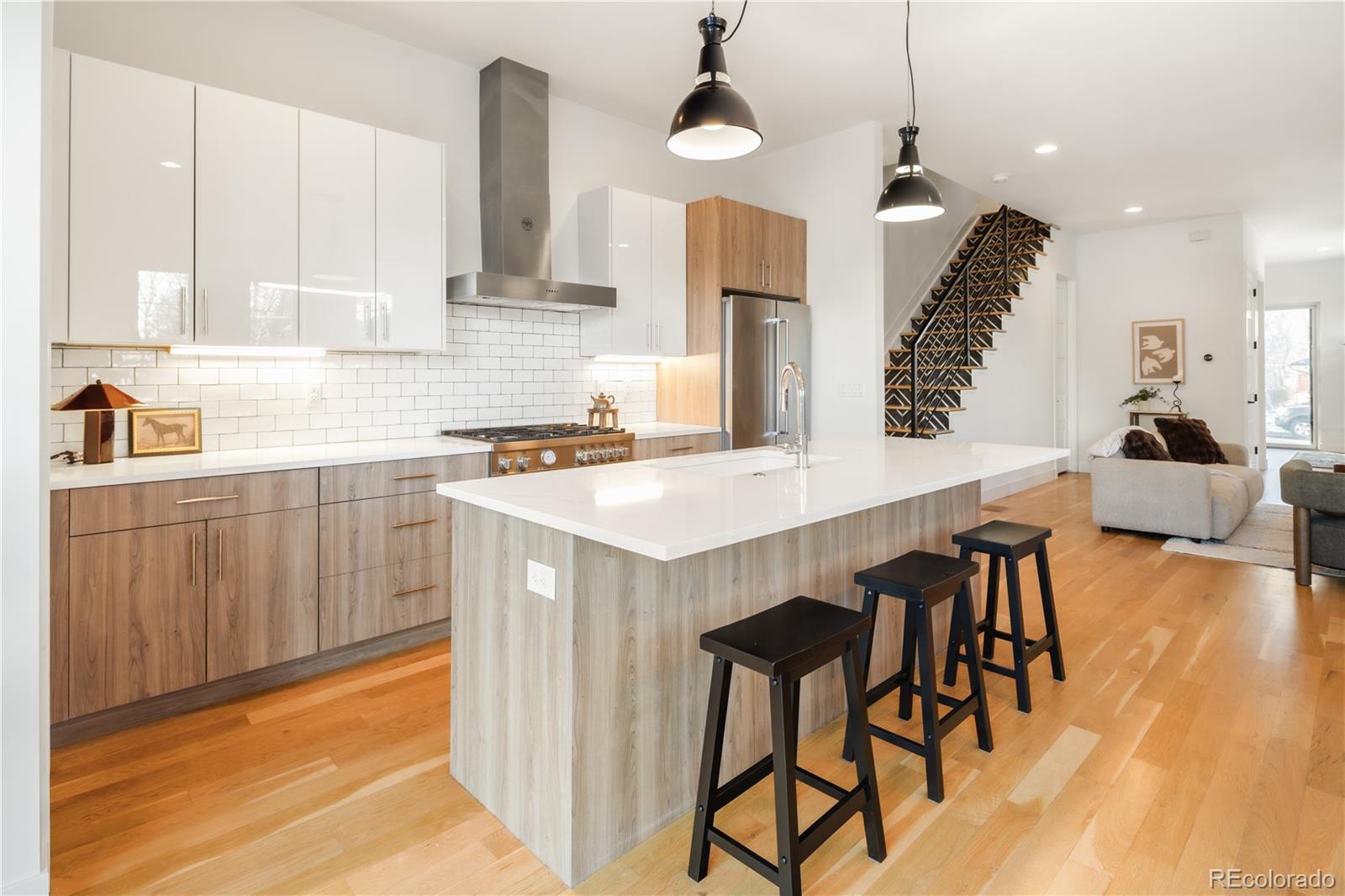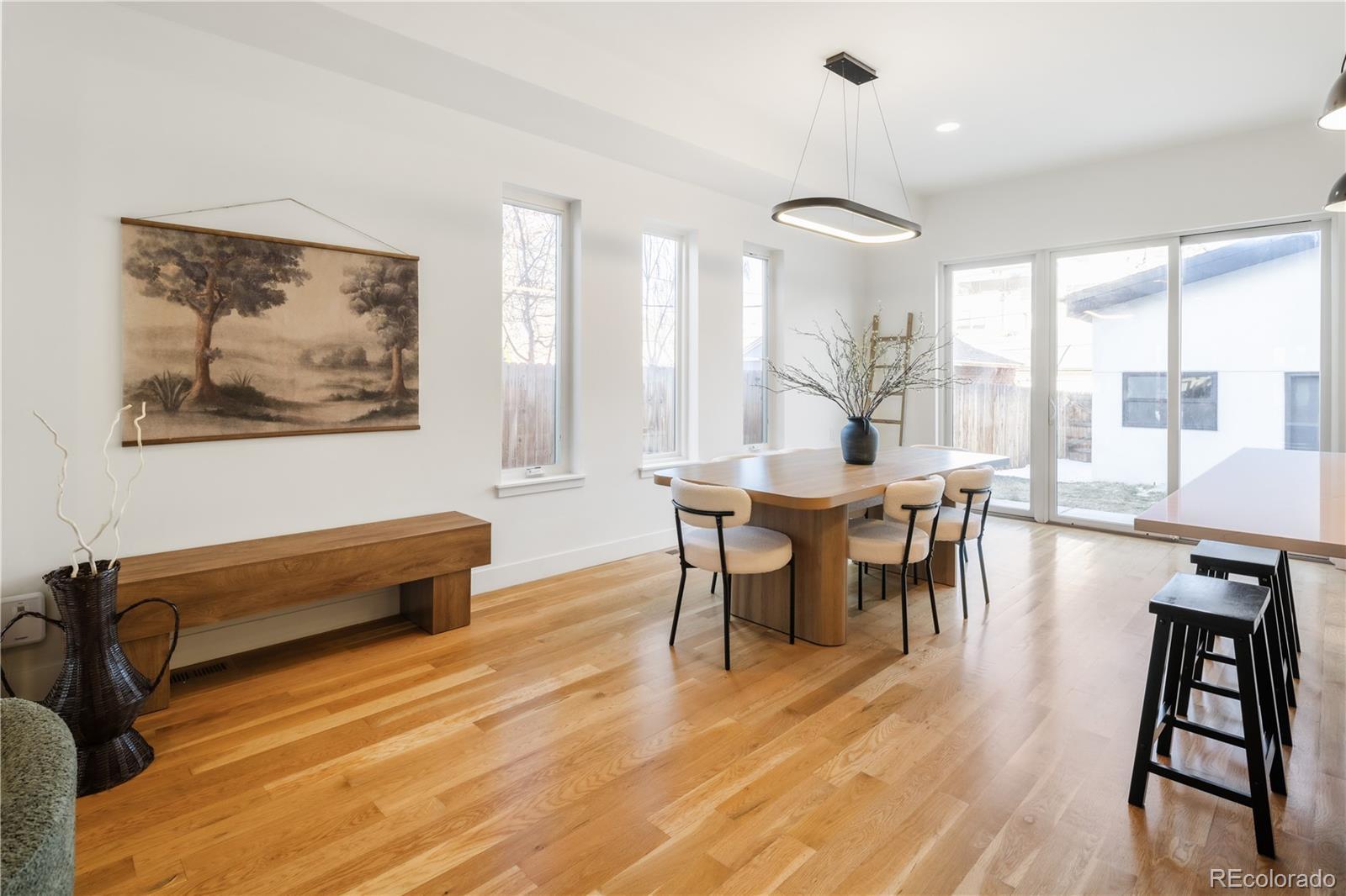 Come see this beautiful home, set just blocks from Harvard Gulch Park. This thoughtfully designed residence offers a rare combination of space, light, and flexibility in one of Denver’s most convenient neighborhoods. With four bedrooms, 3.5 bathrooms, and multiple indoor-outdoor living areas, the layout lives comfortably and functions effortlessly for both everyday living and entertaining. The main level is open and inviting, anchored by a well-designed kitchen featuring beautiful two-tone cabinetry, quality appliances, and a large island that flows seamlessly into the dining and living areas. Oversized sliding doors connect the interior to a private backyard, creating an ideal setting for hosting or relaxing outdoors. Upstairs, the primary suite is a true retreat with ample space for a king-sized bed, a walk-in closet, and a spa-inspired bath with a soaking tub and dual vanities. Two additional bedrooms, a full bathroom, and conveniently located laundry complete the second level. The third floor adds exceptional versatility, offering an additional bedroom and bathroom alongside a flexible bonus space that opens to a rooftop deck—perfect for enjoying mountain views, sunsets, or quiet mornings. Additional highlights include site-finished hardwood floors, tall ceilings, dual HVAC systems, a tankless water heater, professional landscaping with irrigation, and an oversized two-car detached garage with extra storage. With easy access to parks, dining, retail, and major routes, this home delivers both comfort and connectivity in a highly desirable location. Book your showing today!