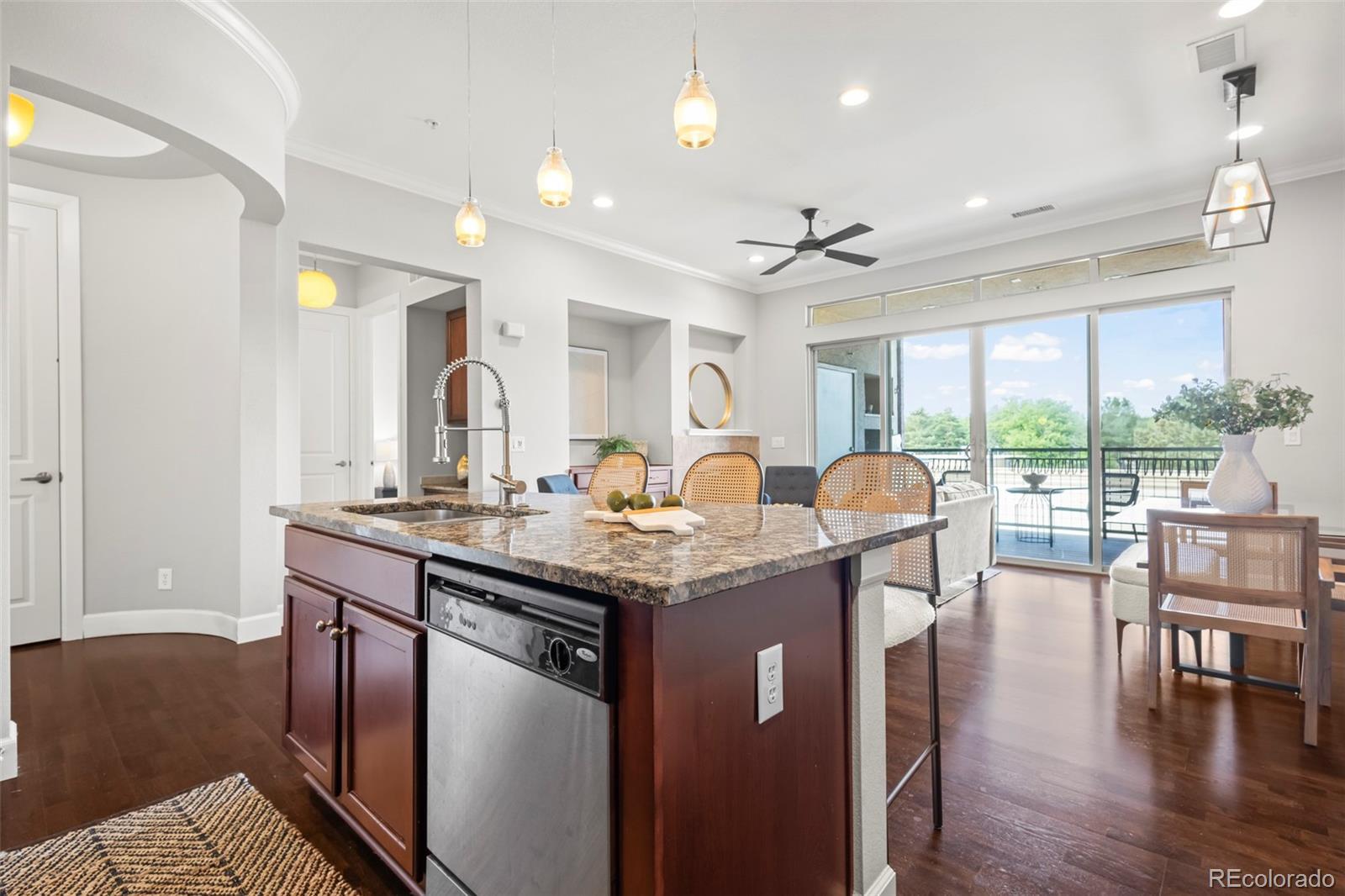 Welcome to this beautifully maintained 2 bed, 2 bath Englewood condo offering an open floor plan filled with natural light, a cozy fireplace, and a built-in desk nook for working from home. The modern kitchen features a large island with seating, stainless steel appliances, and plenty of storage. Relax or entertain on your private covered balcony with a gas fireplace; perfect for those grill days! The 1 car detached garage provides secure parking and extra storage space. Inside, you’ll find a dedicated laundry room with washer/dryer and storage for added convenience. The primary suite includes a walk-in closet and en-suite bath, while the second bedroom and bathroom add flexibility for guests or a home office. Located directly across from John Derry Park (with soccer and baseball fields, basketball courts, and beach volleyball) and near The Club at Inverness, this home blends convenience, recreation, and comfort. Easy access to I-25, E-470, light rail, and Park Meadows Mall puts shopping, dining, and commuting within minutes. Don’t miss this Englewood gem! Schedule your showing today!