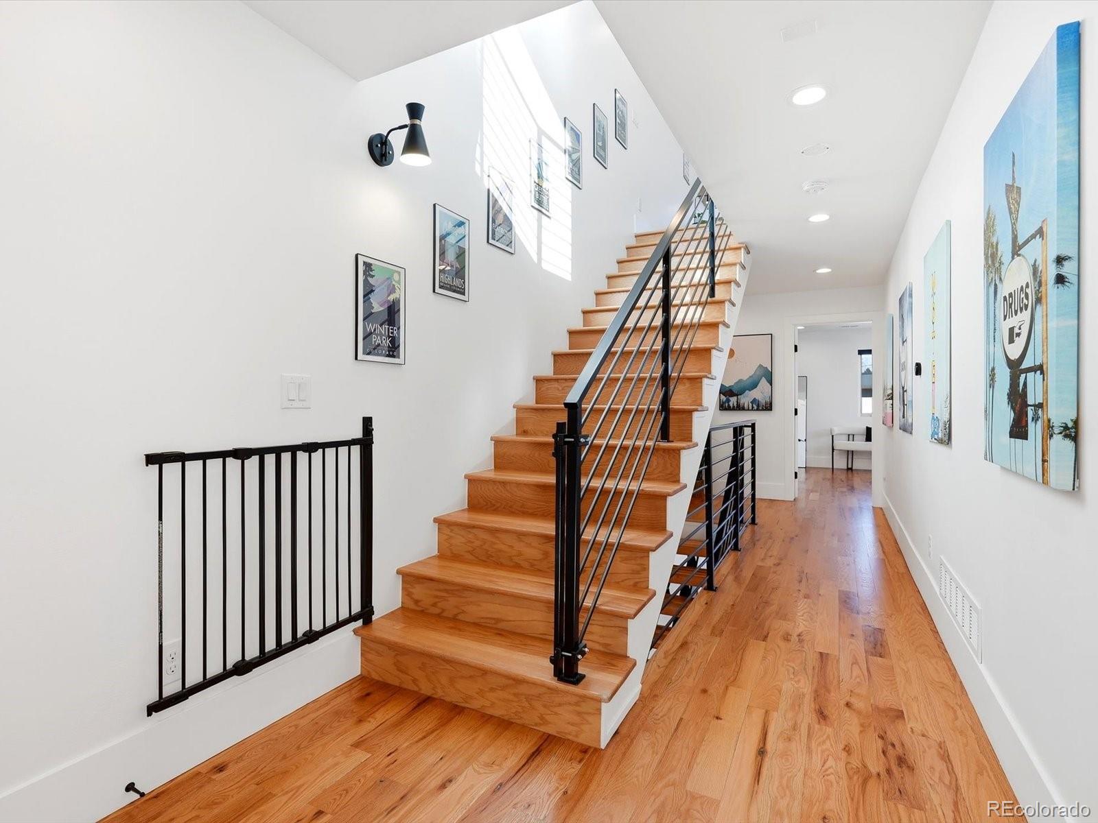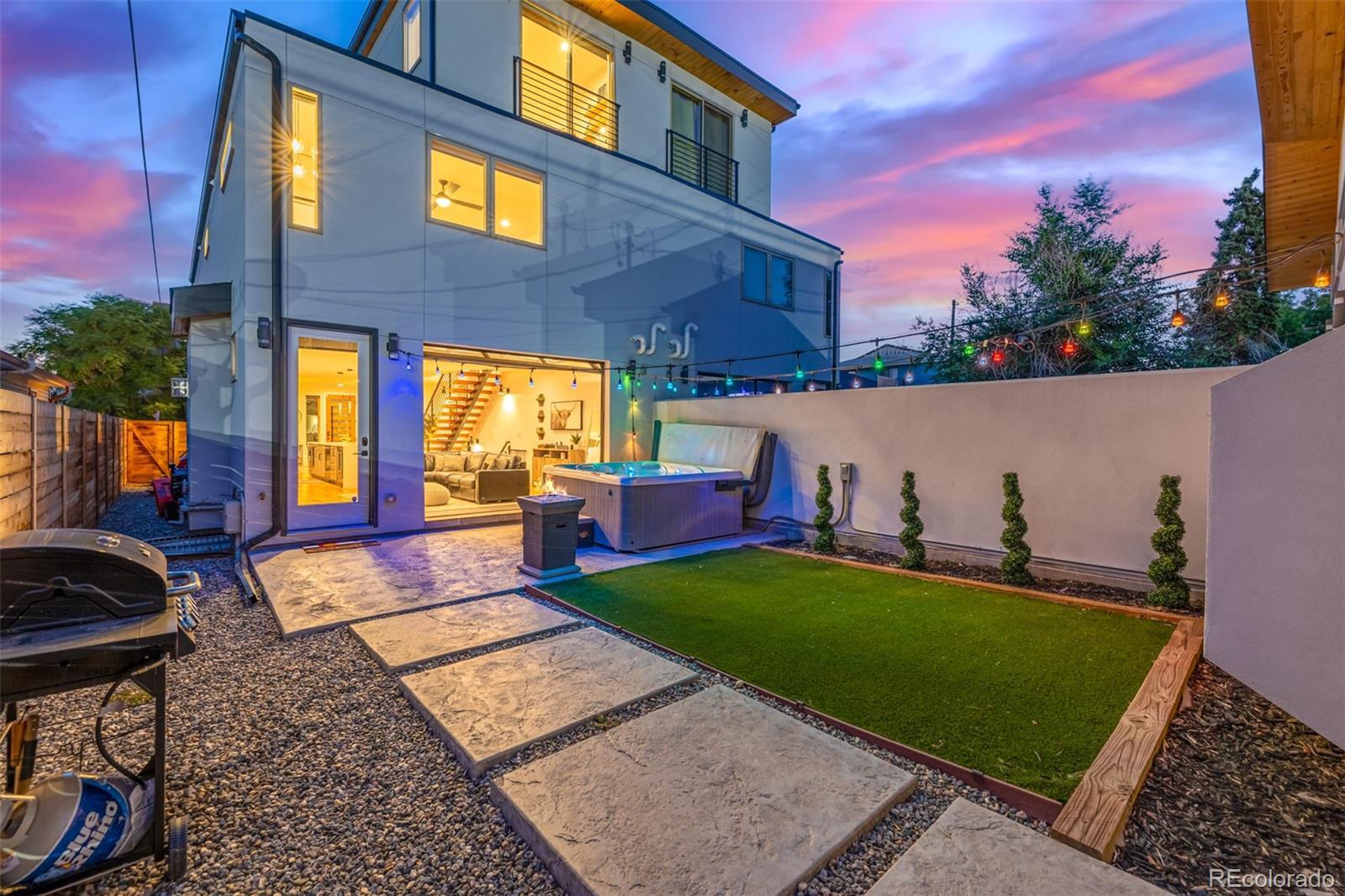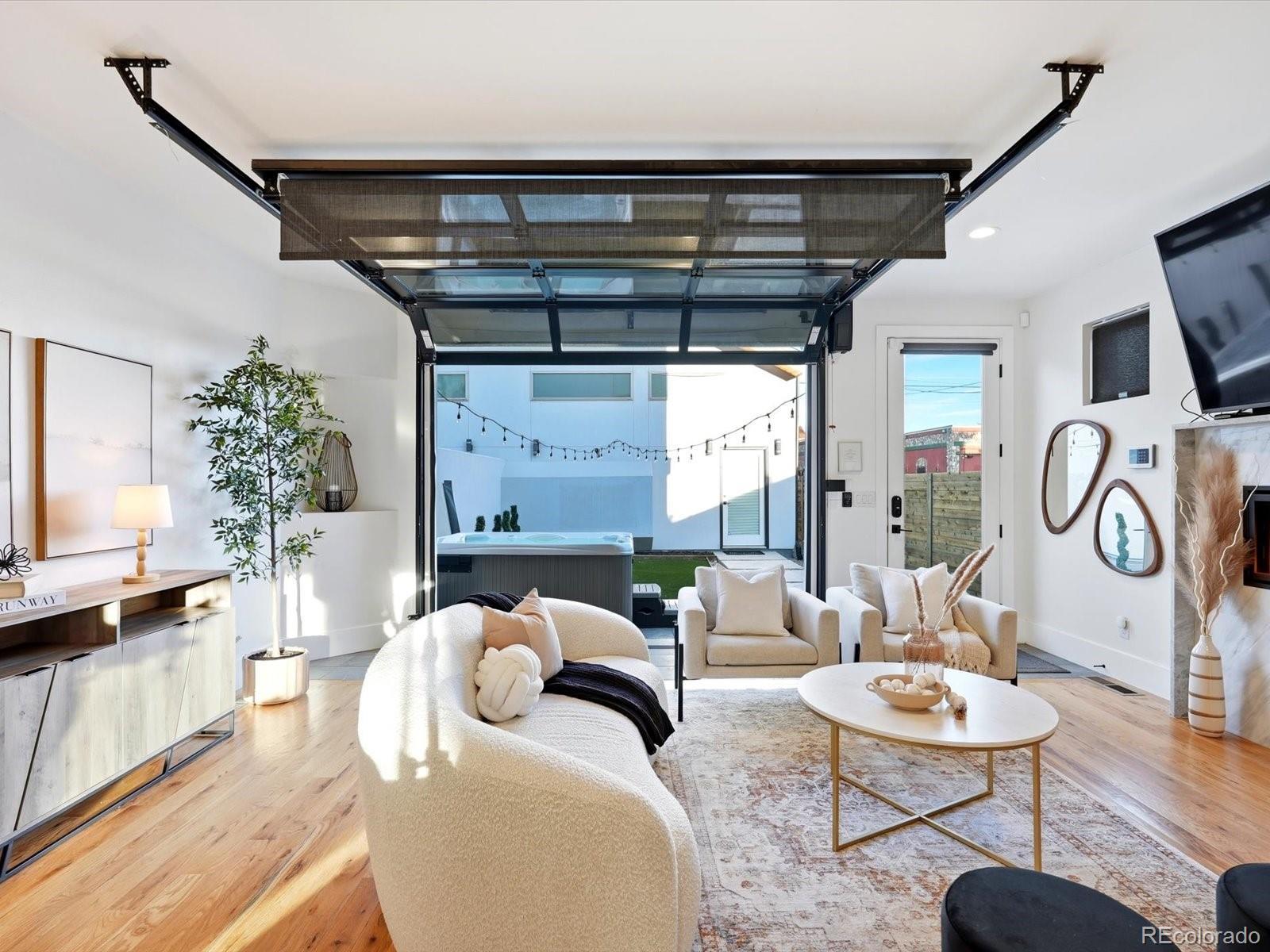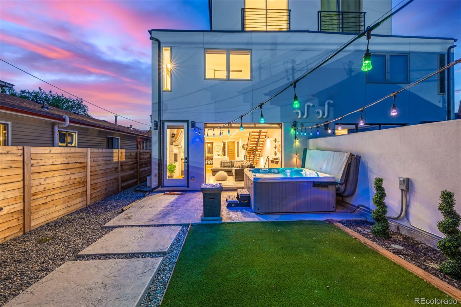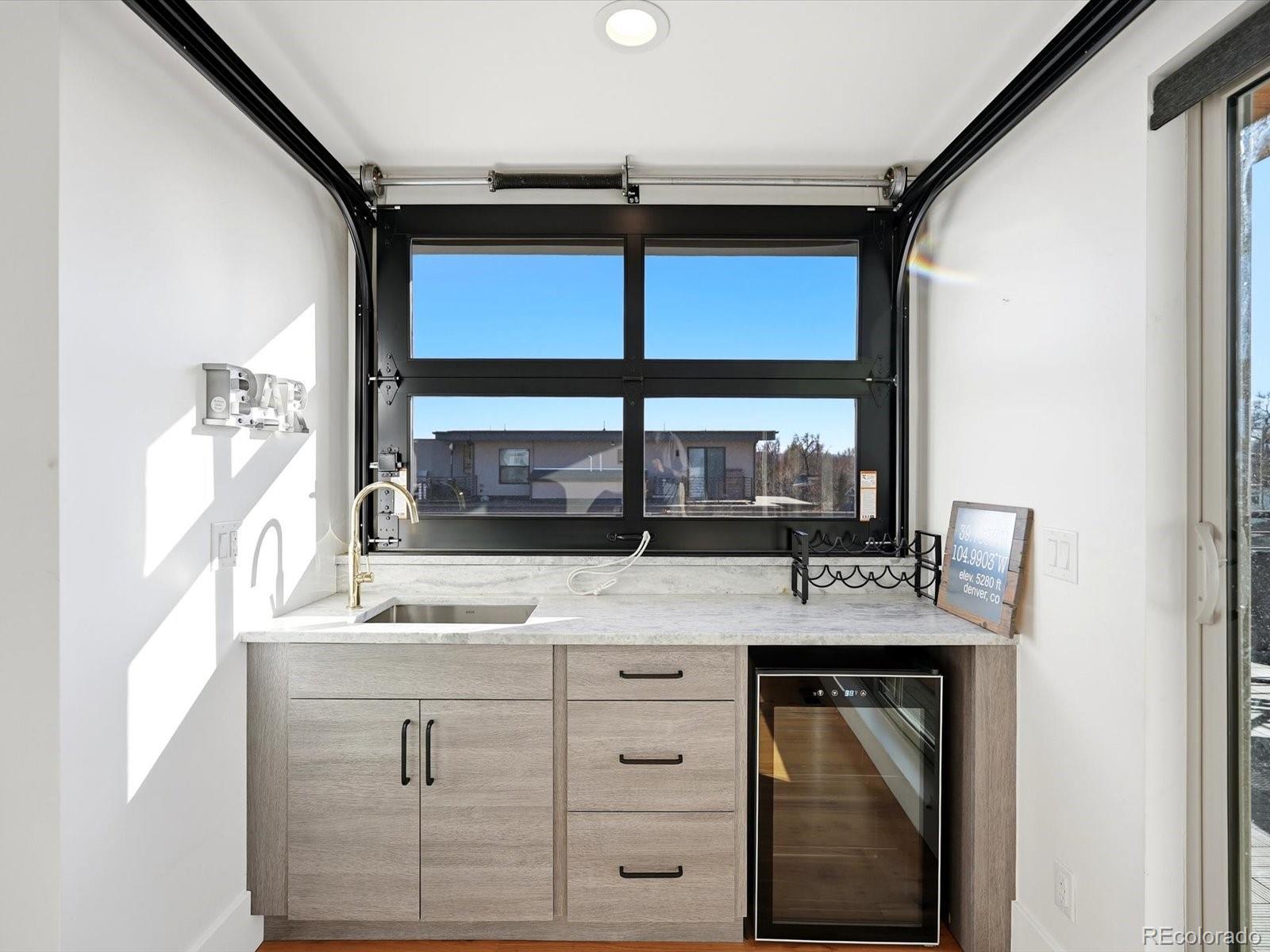 You won’t find a more thoughtfully designed, light-filled floor plan at this price point in Denver. With over 3,280 square feet of curated living space across four levels—including a finished basement with 9' ceilings—this home seamlessly blends modern design, luxury finishes, and livability. Built by experienced local builders, every detail has been intentionally crafted. The main level showcases natural wood flooring, an oversized retro-style front door, integrated flush-mount surround sound, and a chef’s kitchen featuring a 36" stainless gas cooktop, euro-style vent hood, built-in pot filler, striking three-tone cabinetry, oversized quartz island, built-in wine fridge. The primary suite offers a spa-like retreat with double floating vanities, a walk-in closet, soaking tub, an expansive shower with dual rain heads and separate controls, floor-to- ceiling tile, and transom windows. Tech-ready with pre-wiring for wall-mounted TVs in nearly every room, this home is built for modern living. The detached two-car garage has been extended to accommodate a truck or SUV and includes a pull-down loft for hidden storage. Outdoor spaces impress with brand new exterior paint, high-end pet-proof turf in both front and backyards, full fencing, stamped pavers, sprinkler system, and a large concrete patio. A modern garage door connects the great room to the backyard for seamless indoor/outdoor entertaining. The rooftop deck is an entertainer’s dream with brand new tiles, stunning mountain views, and an indoor/outdoor wet bar featuring marble countertops, a full sink, tons of cabinetry, and room for a wine fridge. This home truly offers the perfect combination of elevated style, thoughtful function, and unbeatable value—come see it for yourself. -Check out oversized garage with storage above.