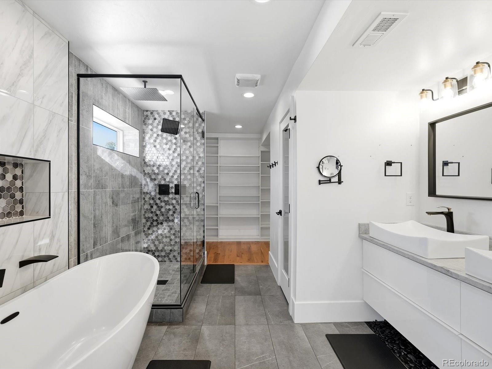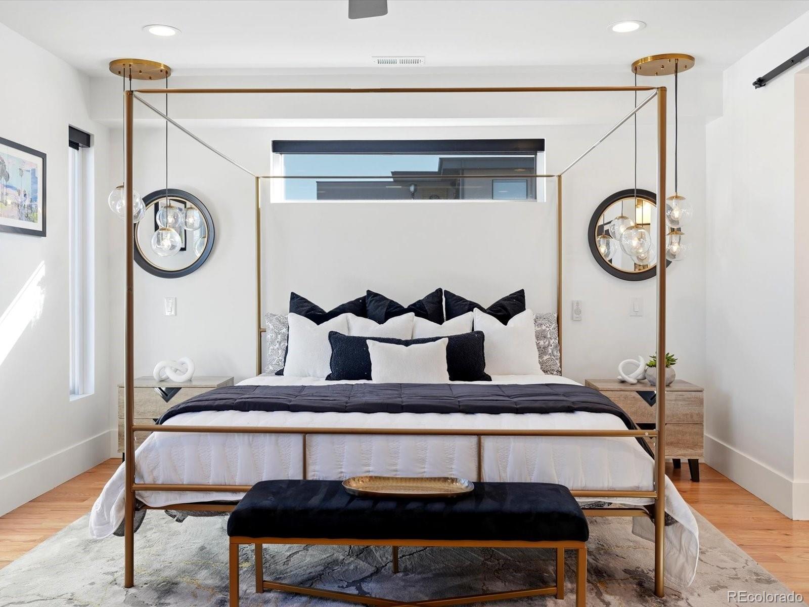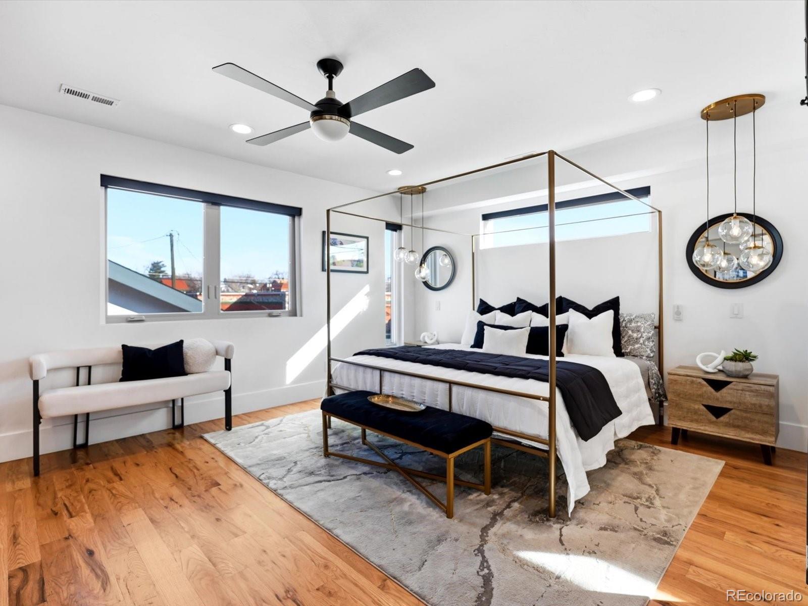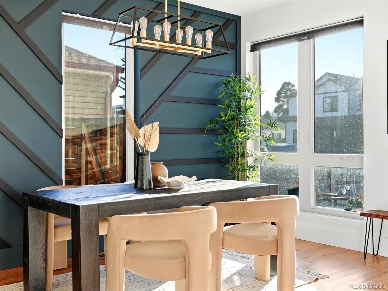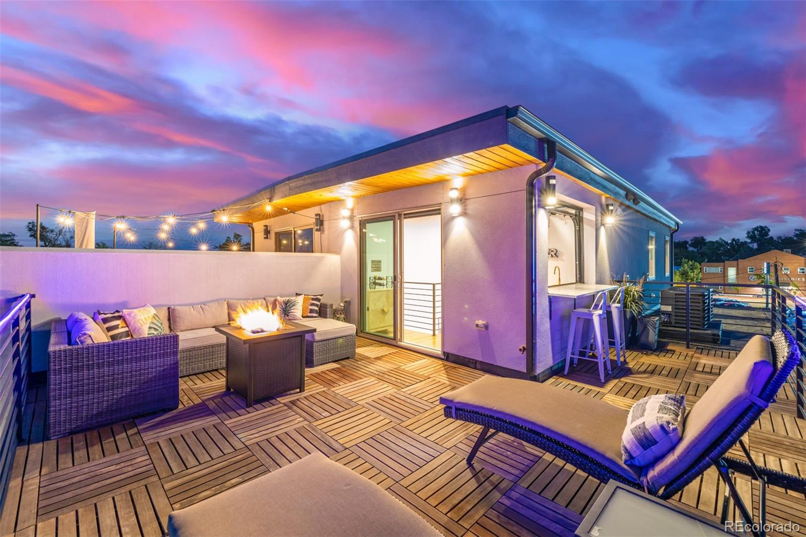 You won’t find a more thoughtfully designed, light-filled floor plan at this price point in Denver. With over 3,280 square feet of curated living space across four levels—including a finished basement with 9' ceilings—this home seamlessly blends modern design, luxury finishes, and livability. Built by experienced local builders, every detail has been intentionally crafted. The main level showcases natural wood flooring, an oversized retro-style front door, integrated flush-mount surround sound, and a chef’s kitchen featuring a 36" stainless gas cooktop, euro-style vent hood, built-in pot filler, striking three-tone cabinetry, oversized quartz island, built-in wine fridge. The primary suite offers a spa-like retreat with double floating vanities, a walk-in closet, soaking tub, an expansive shower with dual rain heads and separate controls, floor-to- ceiling tile, and transom windows. Tech-ready with pre-wiring for wall-mounted TVs in nearly every room, this home is built for modern living. The detached two-car garage has been extended to accommodate a truck or SUV and includes a pull-down loft for hidden storage. Outdoor spaces impress with brand new exterior paint, high-end pet-proof turf in both front and backyards, full fencing, stamped pavers, sprinkler system, and a large concrete patio. A modern garage door connects the great room to the backyard for seamless indoor/outdoor entertaining. The rooftop deck is an entertainer’s dream with brand new tiles, stunning mountain views, and an indoor/outdoor wet bar featuring marble countertops, a full sink, tons of cabinetry, and room for a wine fridge. This home truly offers the perfect combination of elevated style, thoughtful function, and unbeatable value—come see it for yourself. -Check out oversized garage with storage above.