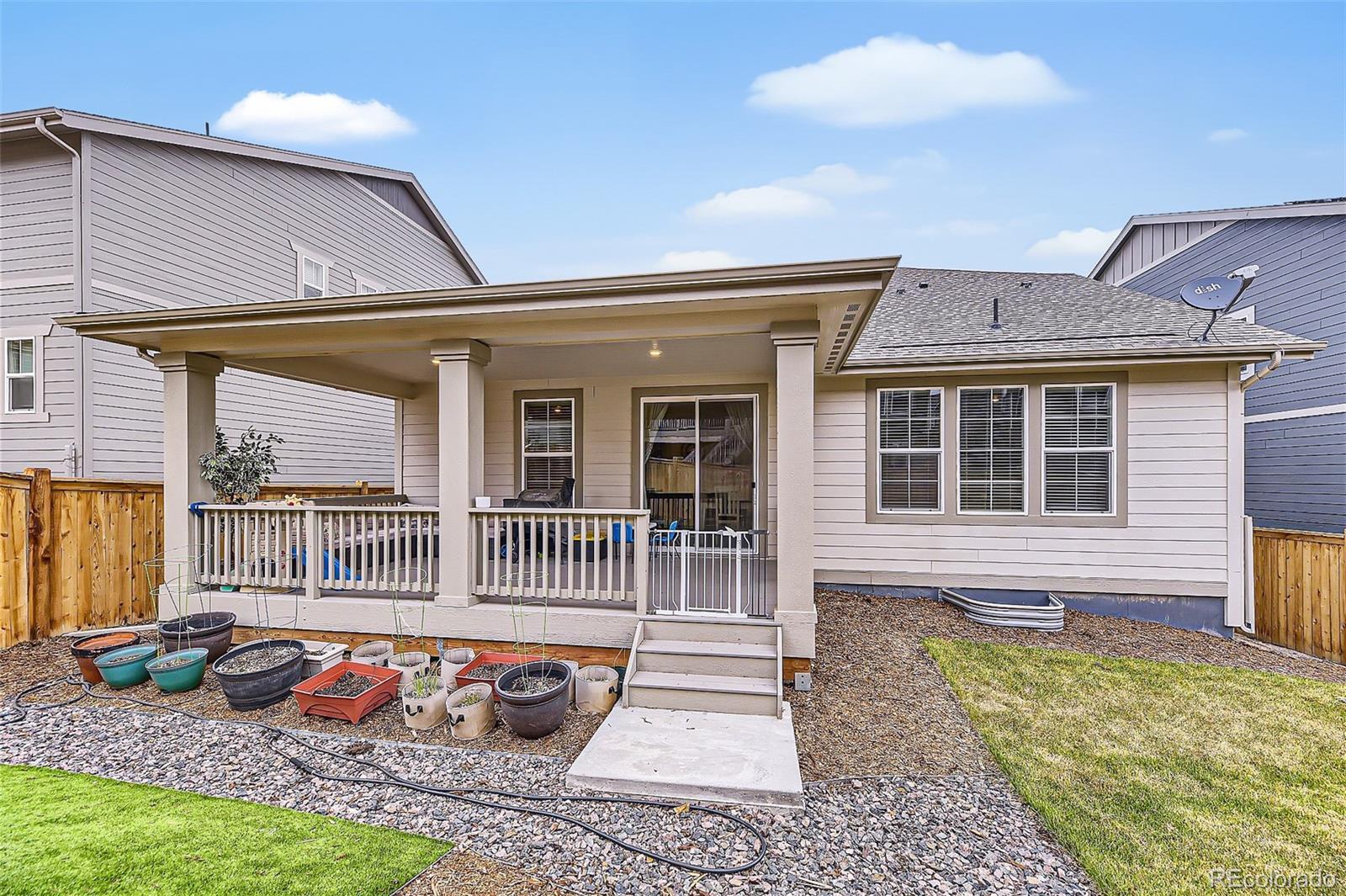 Welcome to your dream home! This impeccably maintained Chelton model by Lennar includes a rare Next Gen® suite (ADU/In-Law Unit)—ideal for multi-generational living, a private guest suite, or rental income. With its separate entrance, kitchenette, living room, bedroom, bath, and laundry, the ADU offers complete independence. Situated in a highly sought-after neighborhood, this move-in ready home boasts model-level condition. Main home features include: - 3 bedrooms, 2.5 baths - Open-concept great room and kitchen - Stainless steel appliances - Luxury vinyl plank flooring - Wainscoting, accent walls, and upgraded lighting - Full laundry room - 3-car garage - High-ceiling and large unfinished basement ready for your customization The Next Gen suite includes: - Private entry - 1 bedroom, 1 full bath - Kitchenette - Private living room - In-unit laundry Enjoy your fully fenced and professionally landscaped backyard with a covered patio, perfect for entertaining or relaxing on Colorado evenings. Unlike new construction, this home includes premium upgrades: appliances, blinds, fencing, custom interior paint, accent woodwork, upgraded fixtures, and landscaping—all move-in ready with no additional out-of-pocket expenses. Located near the best of Parker and Castle Rock, you'll have quick access to Mainstreet shopping and dining, trails, parks, reservior and scenic views. This home offers the perfect blend of tranquility and convenience. Don’t miss this unique opportunity—schedule your private showing today! Additionally: Chambers Road is now open. • Stroh Road is open to Chambers Road. • The pool, amenity center is nearing permit approval, with construction scheduled for this winter. • The soccer fields are expected to be sodded soon. The pickleball court, basketball court, and soccer fields will be maintained by the Town of Parker, not the HOA.