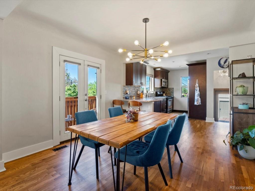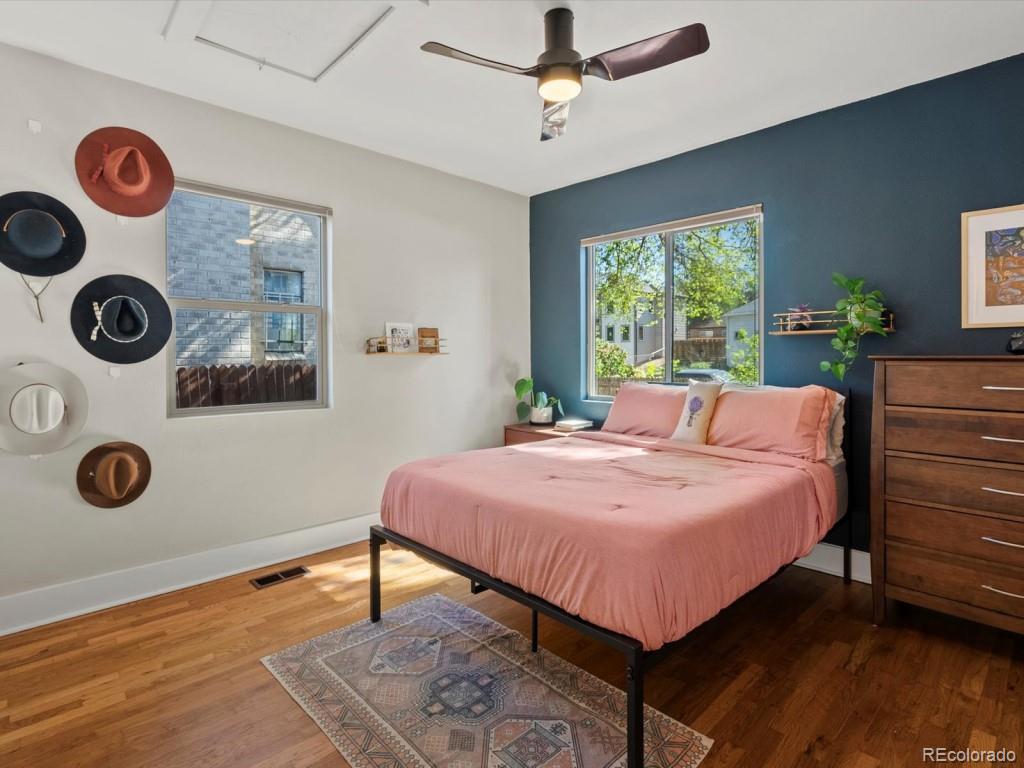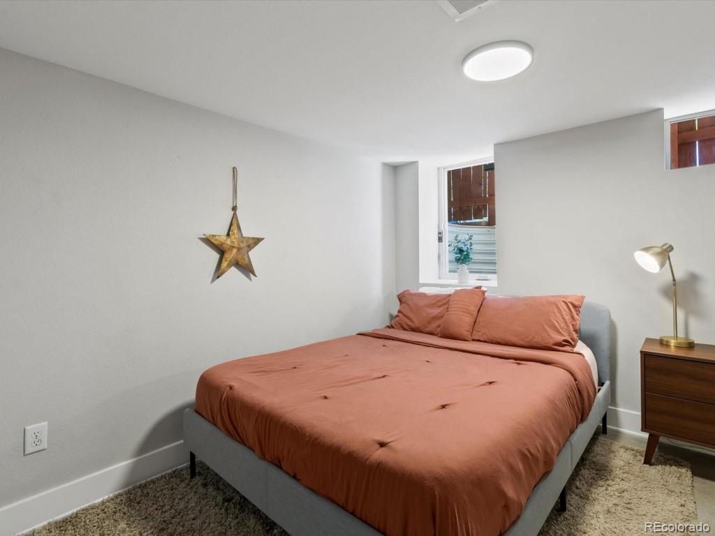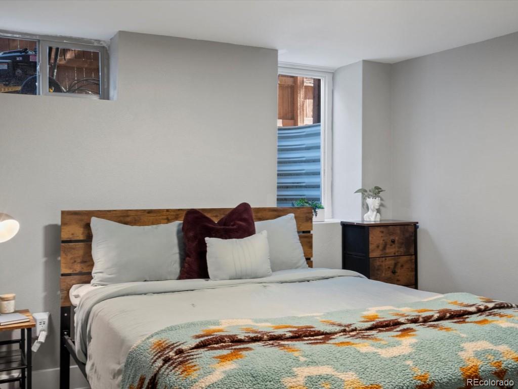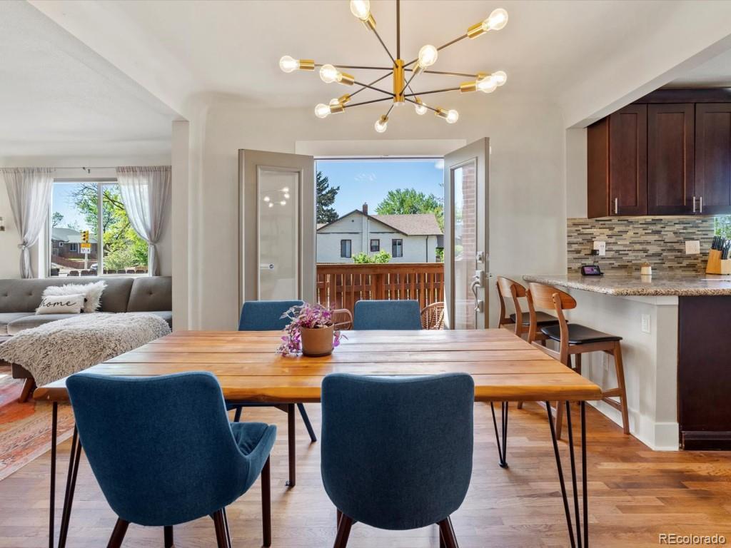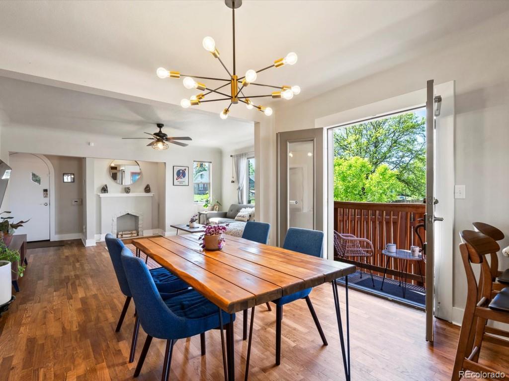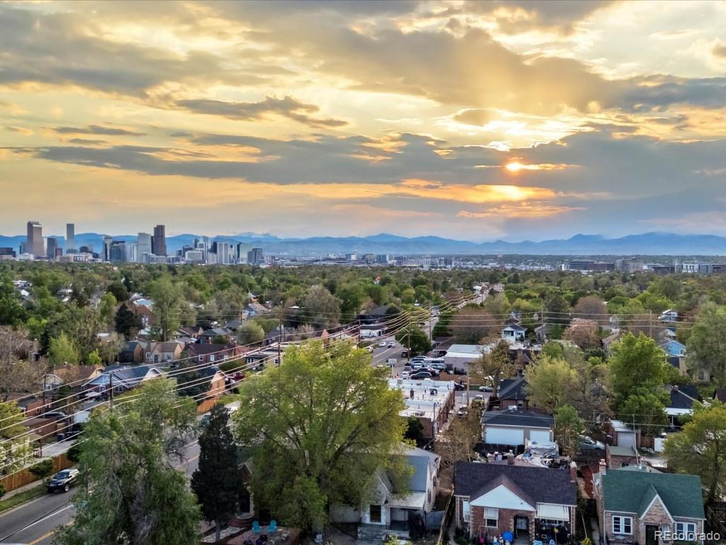 1938 brick Tudor in City Park North with skyline and Front Range views. Offering 2,069 finished square feet and a true four-bedroom layout, this home blends classic Denver architecture with thoughtful updates and flexible living space. Original details—including coved ceilings, arched openings, and large windows—create warmth and natural light throughout. The main level features refinished hardwood floors and an open layout with clear sightlines from front to back. The updated kitchen includes granite counters, stainless appliances, and an eat-in nook. The fully finished basement adds a spacious family/media area, full bath, and two conforming bedrooms with egress windows and closets—ideal for guests, roommates, or work-from-home flexibility. Major systems have been addressed, including central A/C (with warranty), radon mitigation system, and a recently cleaned and scoped sewer line. Significant remodel work was completed in 2015. Bright corner lot with open exposure, fenced yard, side balcony terrace, and multiple outdoor spaces. Detached two-car garage plus additional off-street parking. Zoned U-SU-B1 (ADU potential; buyer to verify). No HOA. Flexible closing.