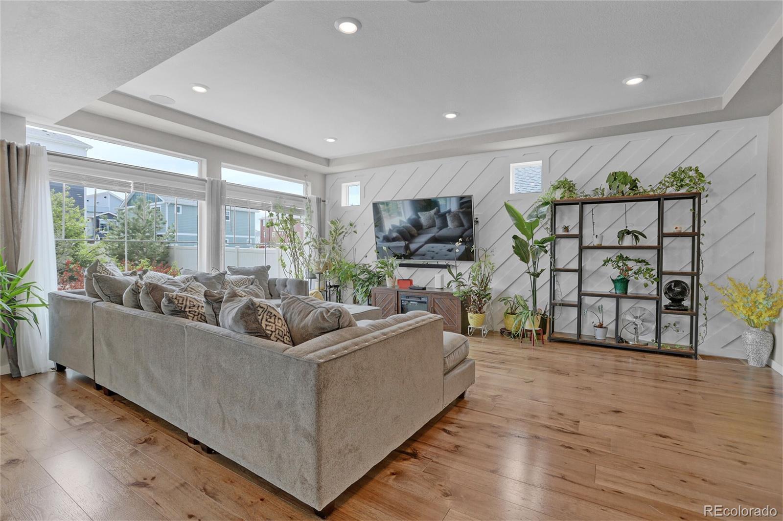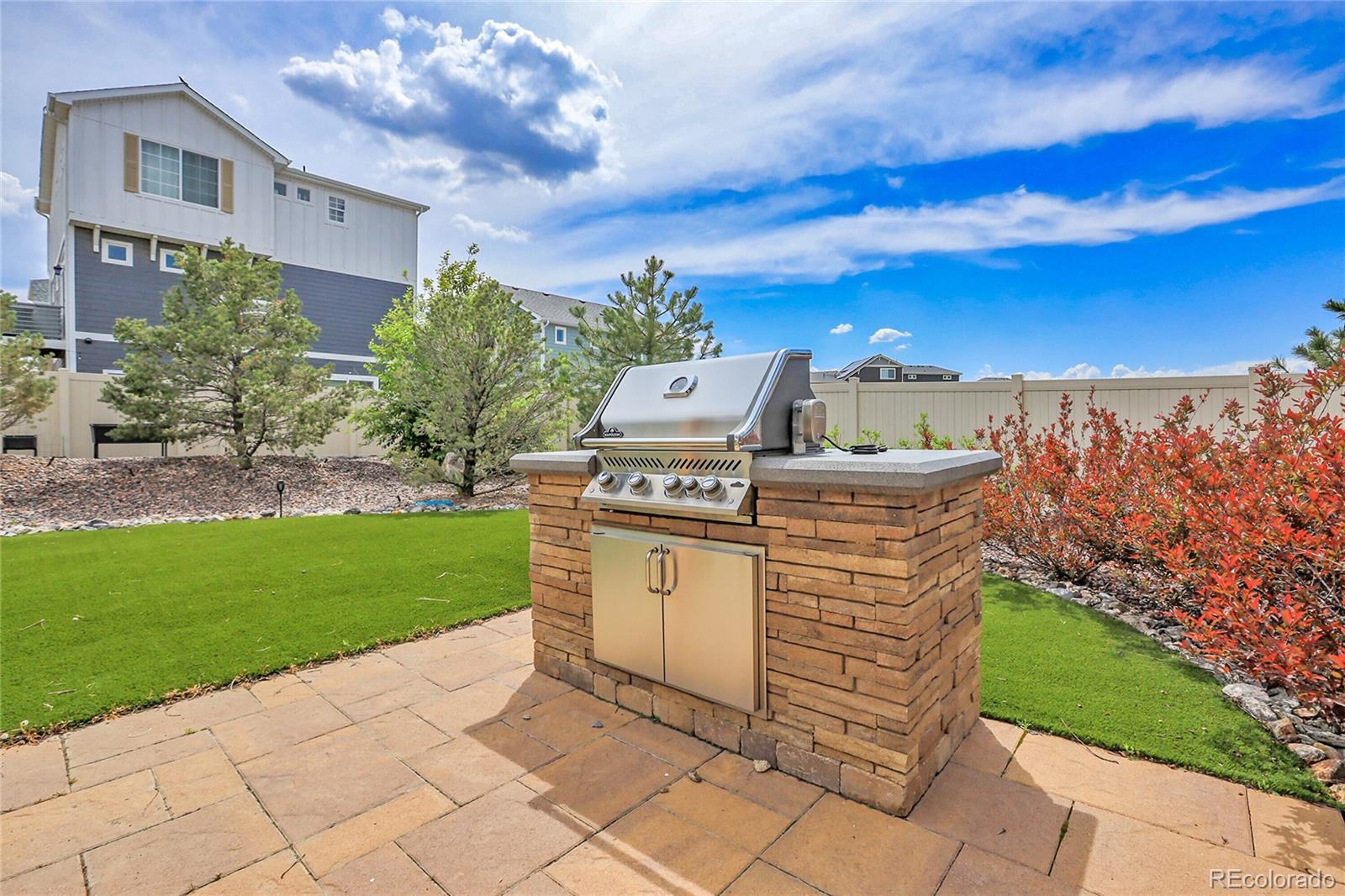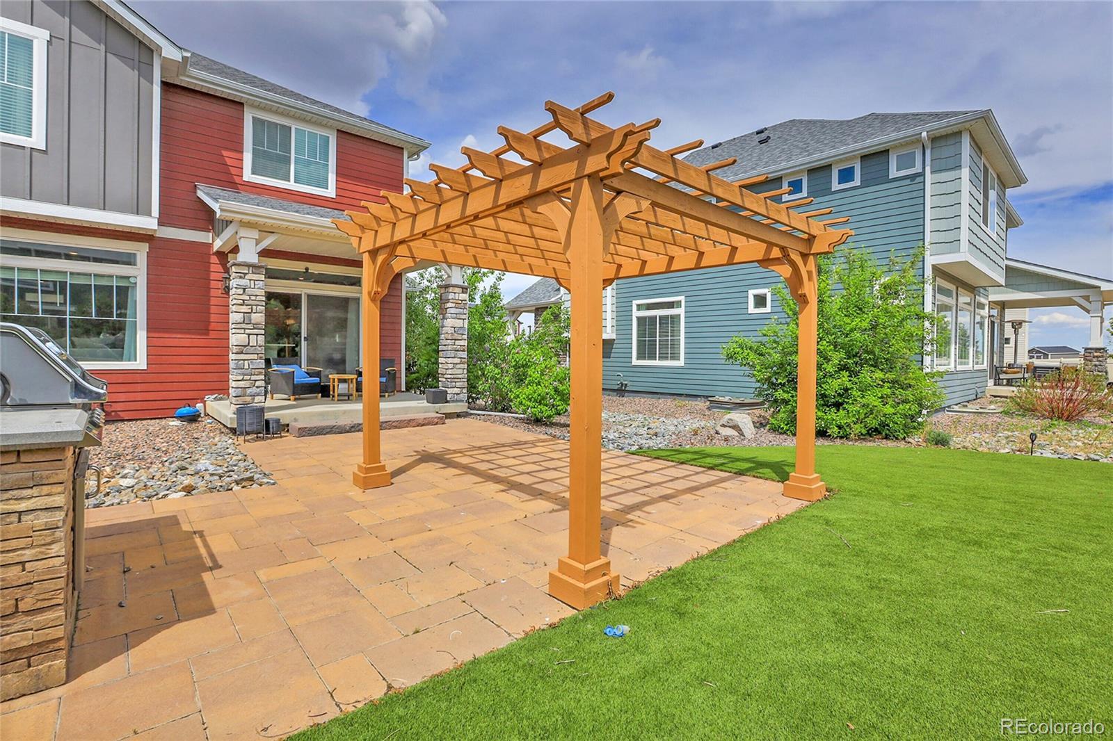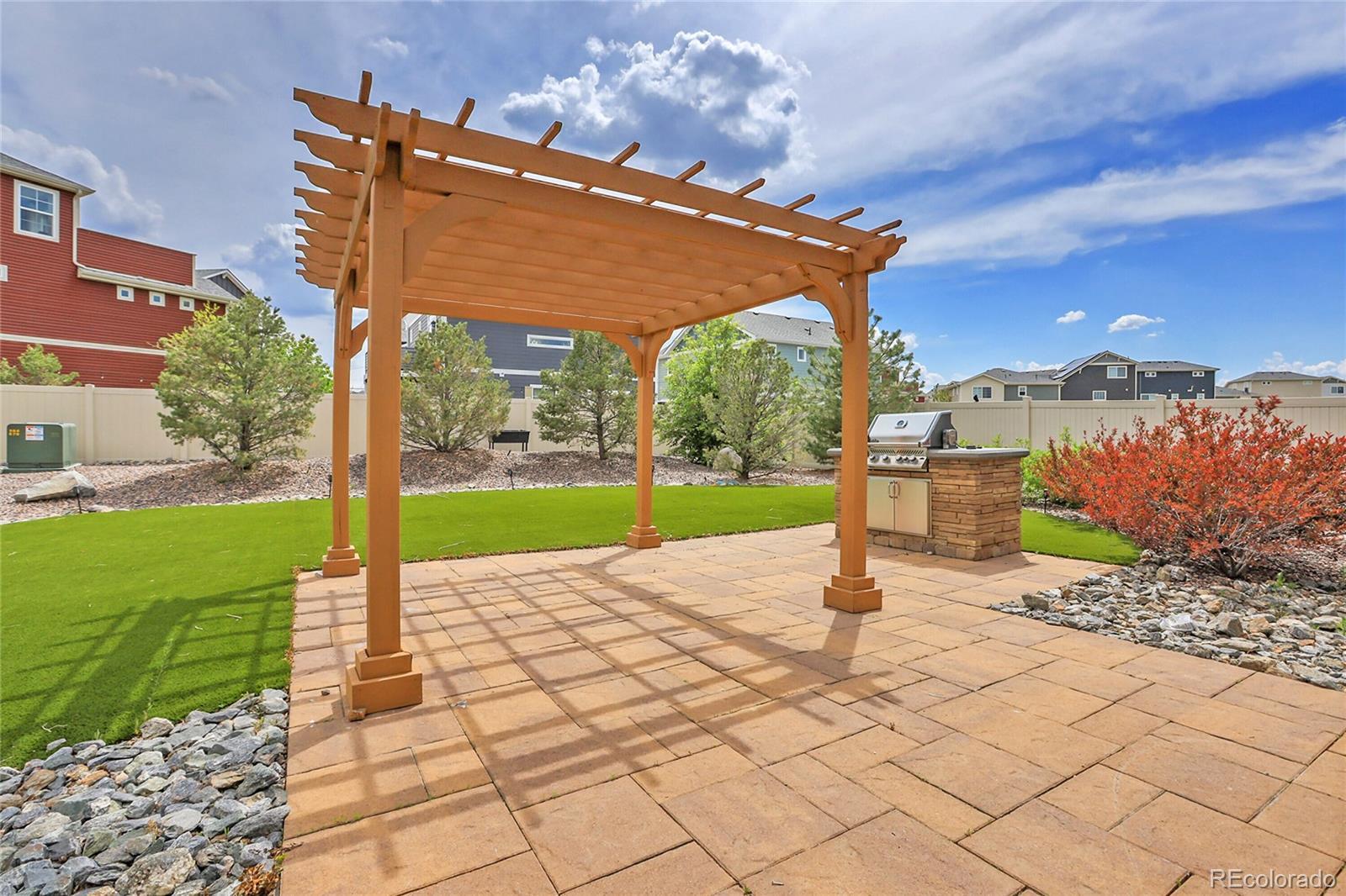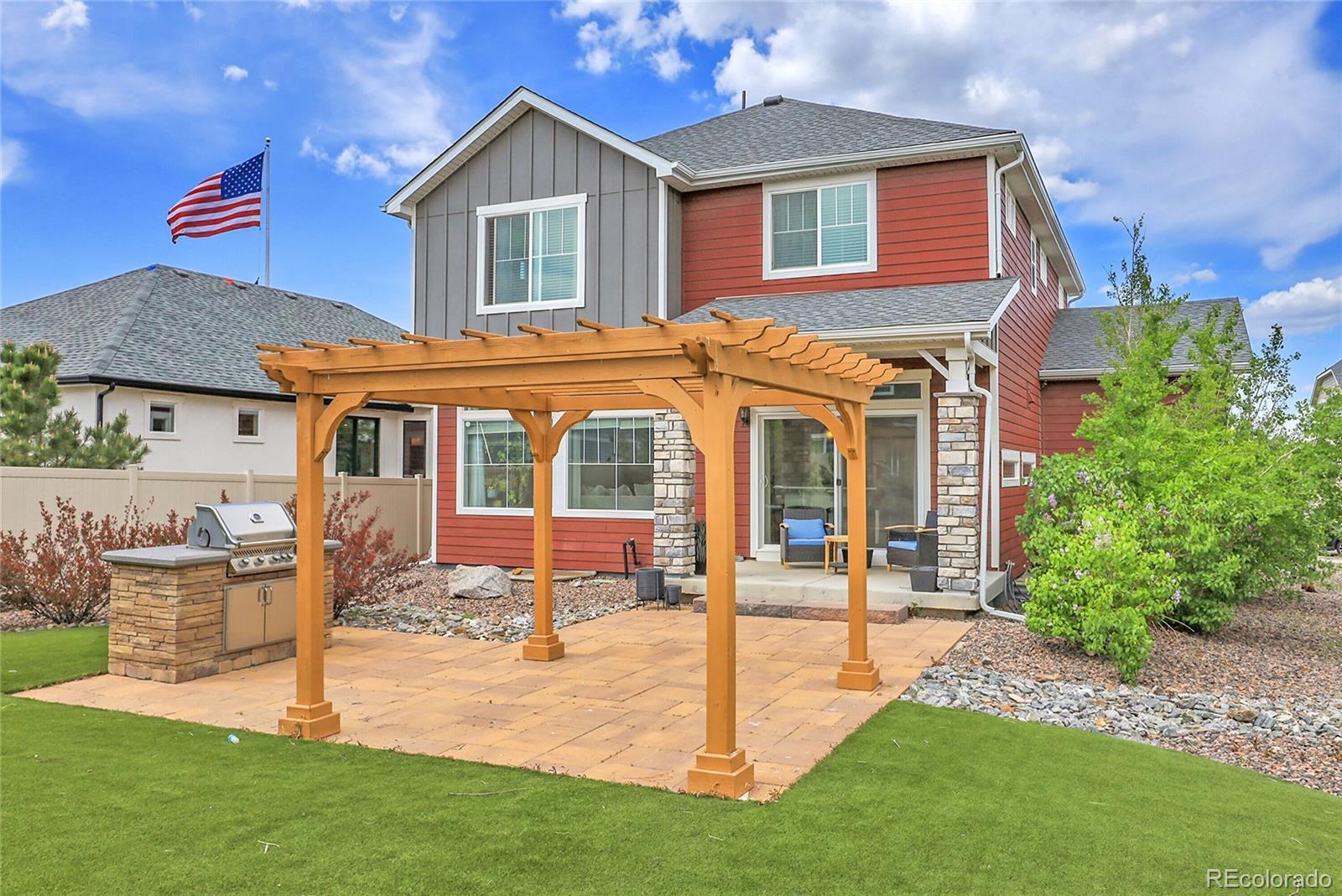 !! $5,000 SELLER CONCESSIONS BEING OFFERED !! Welcome to this stunning, fully upgraded model home in the sought-after Green Valley Ranch East community of Aurora. Boasting 4 bedrooms, 4 bathrooms, and 2,868 square feet of thoughtfully designed living space, this home perfectly balances comfort, style, and functionality. The open-concept main floor welcomes you with elegant LVP flooring, an abundance of natural light, and a seamless flow between the living and kitchen areas. The kitchen is a chef’s dream, featuring stainless steel appliances, a large island with seating, upgraded cabinetry, and custom backsplash windows not available in current builder models. The spacious living area offers a tray ceiling, recessed lighting, a custom accent wall, and expansive picture windows with views of the serene backyard. The primary suite serves as a private retreat, complete with a custom accent wall, en-suite bath with comfort-height dual vanities, a tile shower with glass door, and a walk-in closet. Upstairs includes two additional bedrooms, a full bathroom, a laundry room, loft/flex space, and a built-in desk—ideal for work or study. The finished basement extends your living space with a large family room, wet bar with fridge, an additional bedroom, and a full bath. Step outside to an entertainer’s paradise featuring an expansive patio, pergola, outdoor kitchen, and BBQ area, all set on an oversized corner lot. Located near parks, schools, and shopping, this home offers the best of suburban living in a vibrant and welcoming community. This is more than a home; it's a lifestyle!