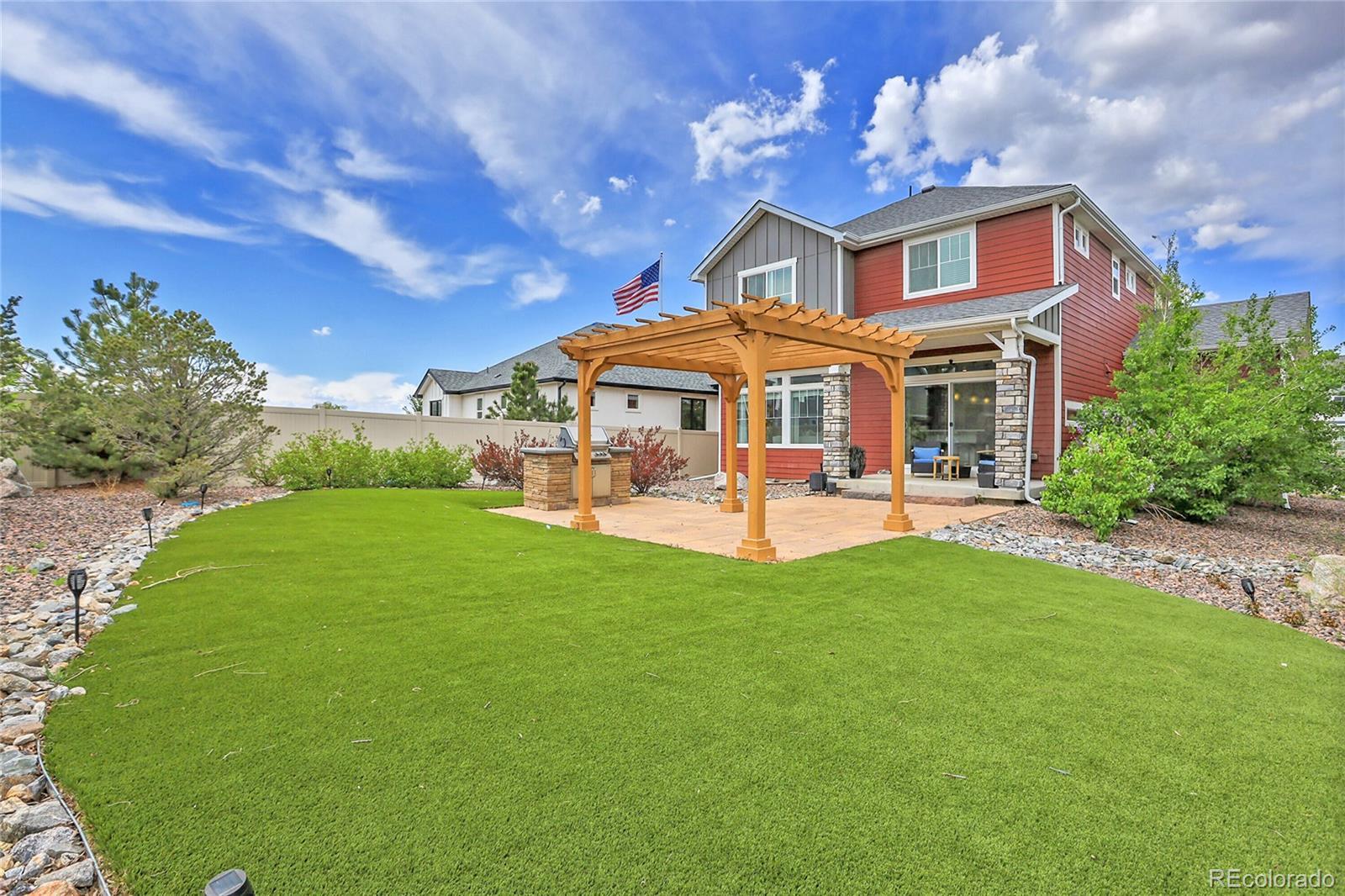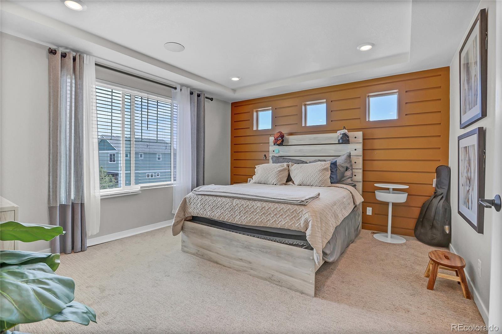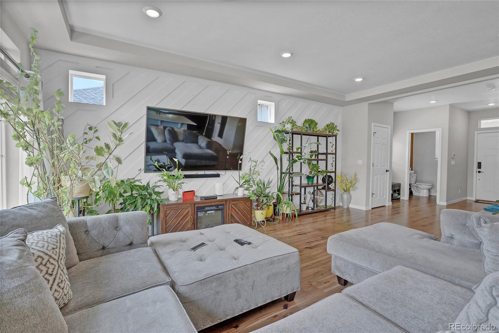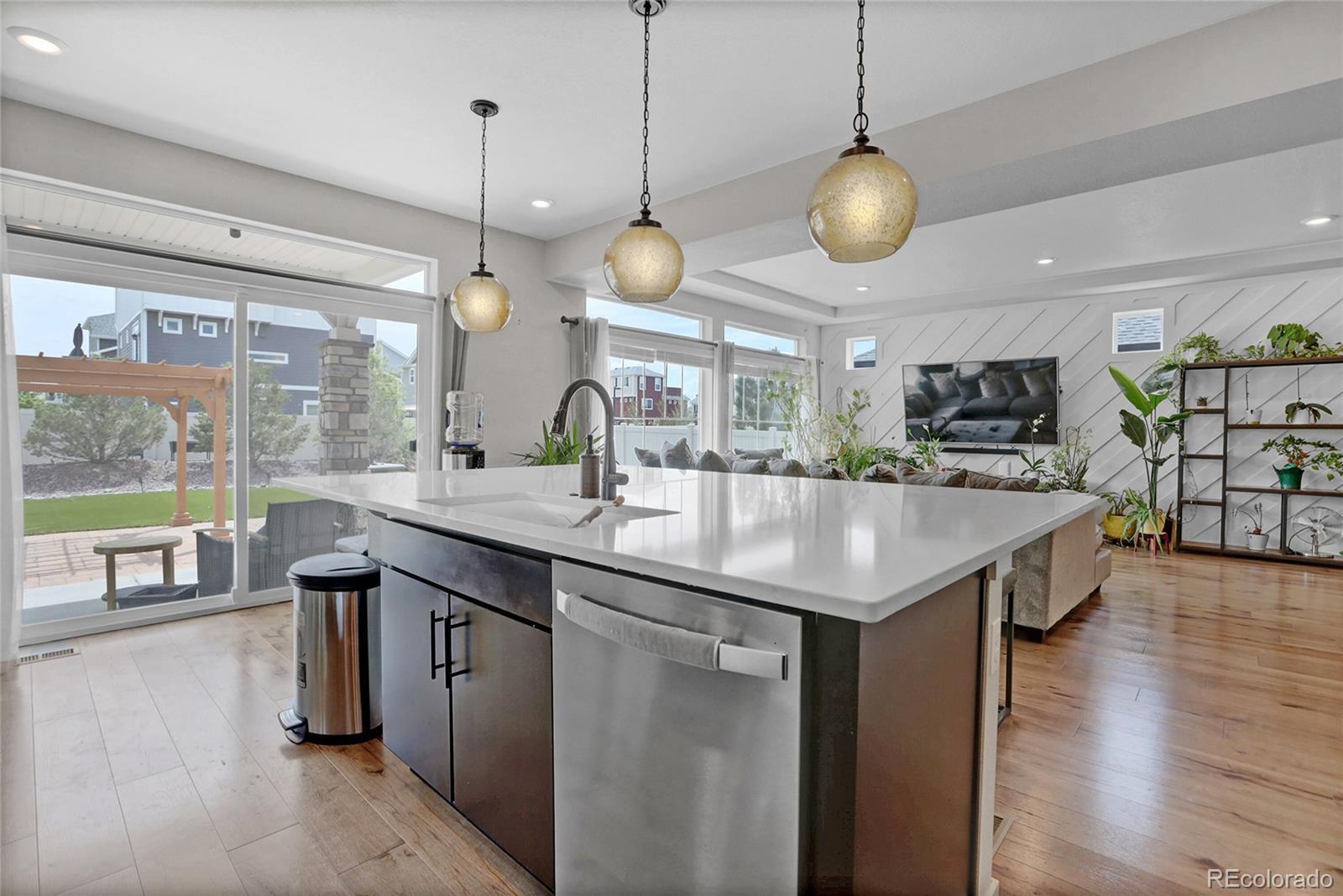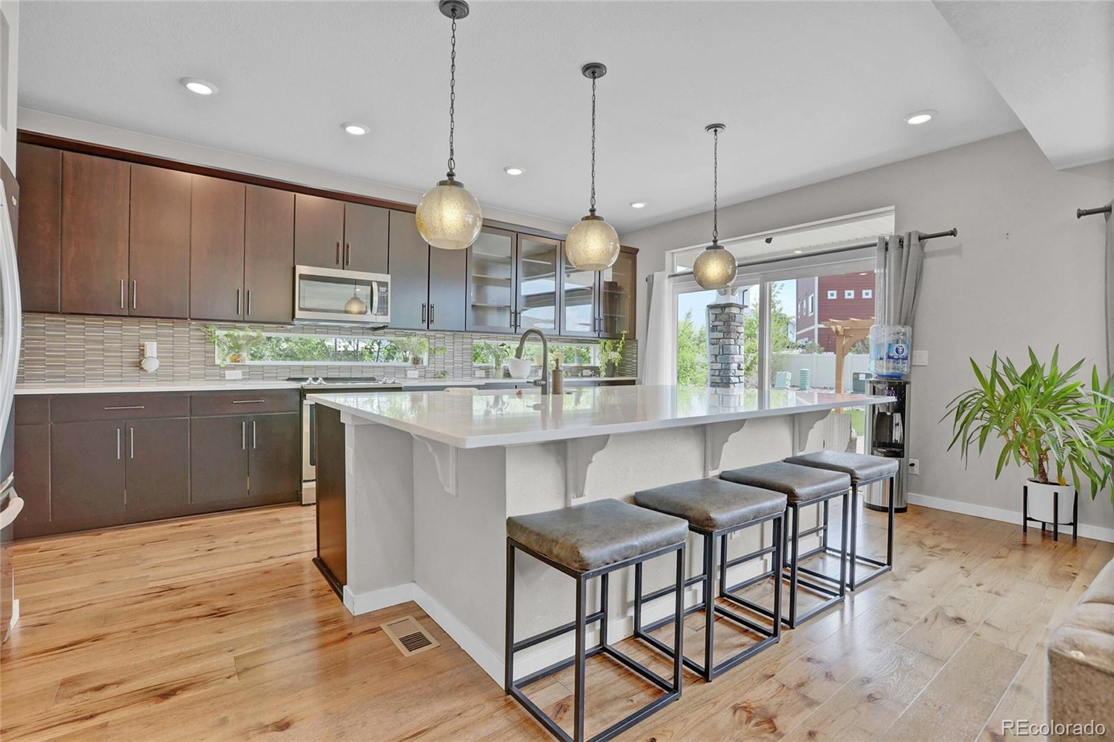 !! $5,000 SELLER CONCESSIONS BEING OFFERED !! Welcome to this stunning, fully upgraded model home in the sought-after Green Valley Ranch East community of Aurora. Boasting 4 bedrooms, 4 bathrooms, and 2,868 square feet of thoughtfully designed living space, this home perfectly balances comfort, style, and functionality. The open-concept main floor welcomes you with elegant LVP flooring, an abundance of natural light, and a seamless flow between the living and kitchen areas. The kitchen is a chef’s dream, featuring stainless steel appliances, a large island with seating, upgraded cabinetry, and custom backsplash windows not available in current builder models. The spacious living area offers a tray ceiling, recessed lighting, a custom accent wall, and expansive picture windows with views of the serene backyard. The primary suite serves as a private retreat, complete with a custom accent wall, en-suite bath with comfort-height dual vanities, a tile shower with glass door, and a walk-in closet. Upstairs includes two additional bedrooms, a full bathroom, a laundry room, loft/flex space, and a built-in desk—ideal for work or study. The finished basement extends your living space with a large family room, wet bar with fridge, an additional bedroom, and a full bath. Step outside to an entertainer’s paradise featuring an expansive patio, pergola, outdoor kitchen, and BBQ area, all set on an oversized corner lot. Located near parks, schools, and shopping, this home offers the best of suburban living in a vibrant and welcoming community. This is more than a home; it's a lifestyle!