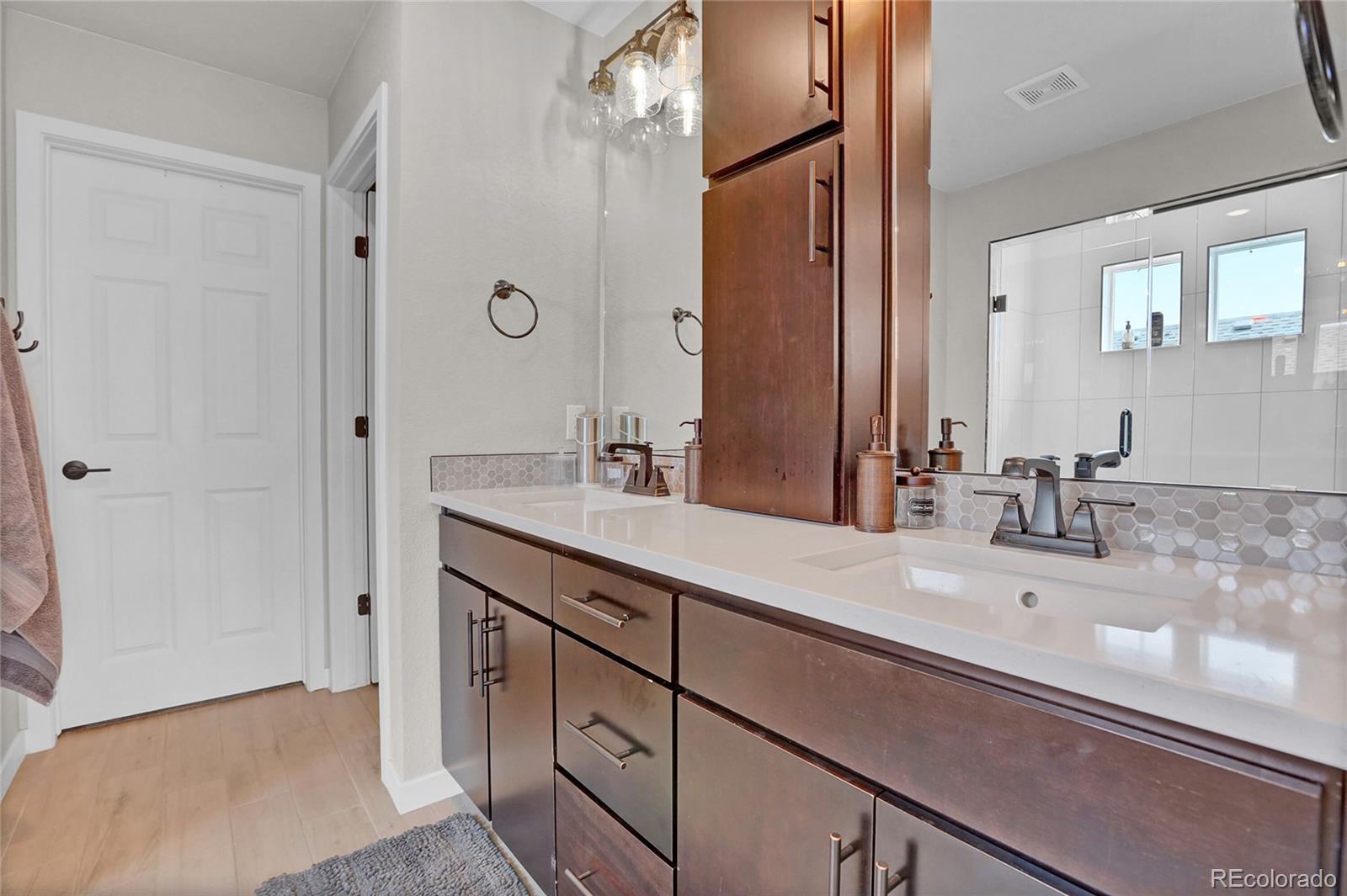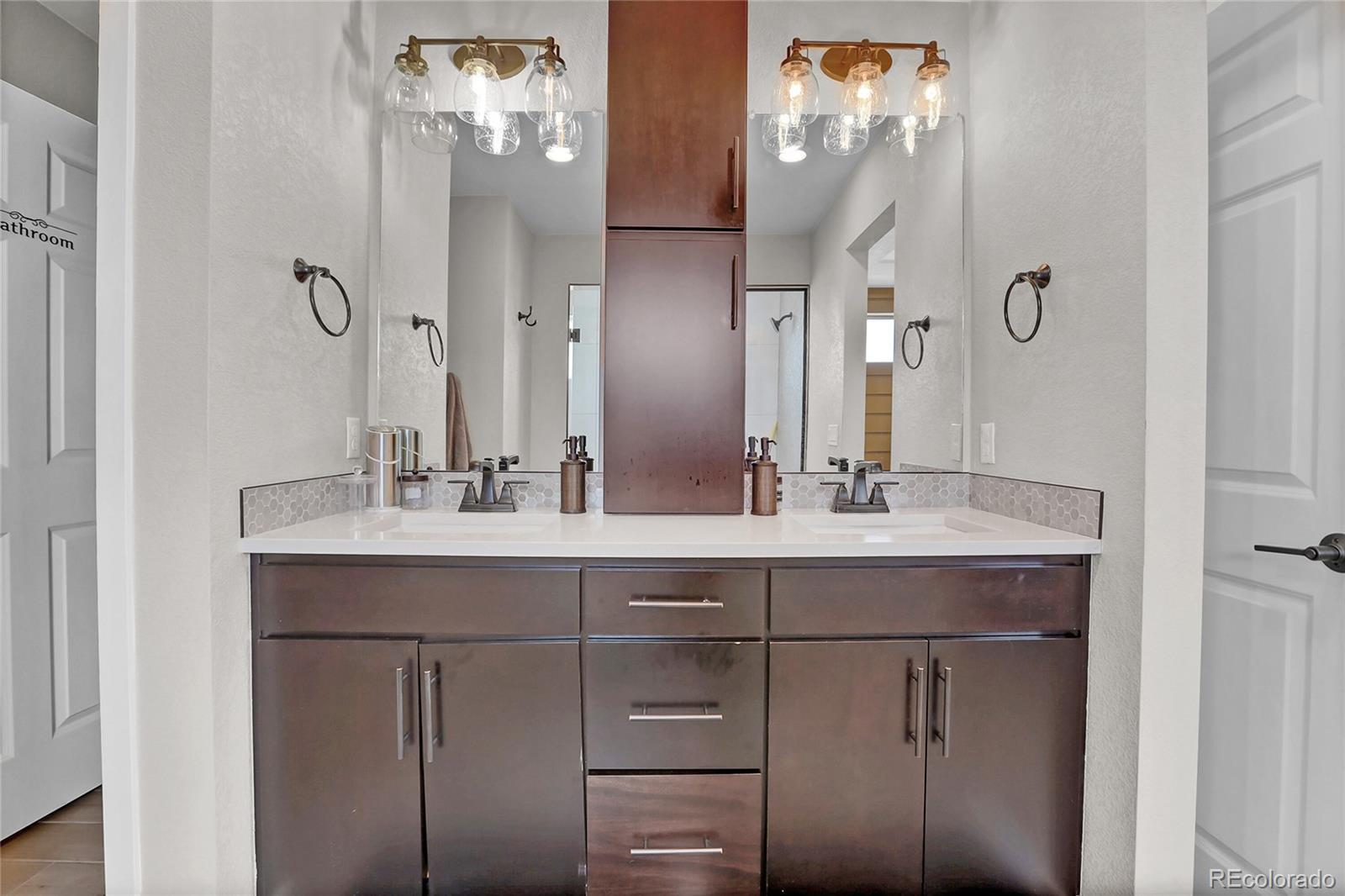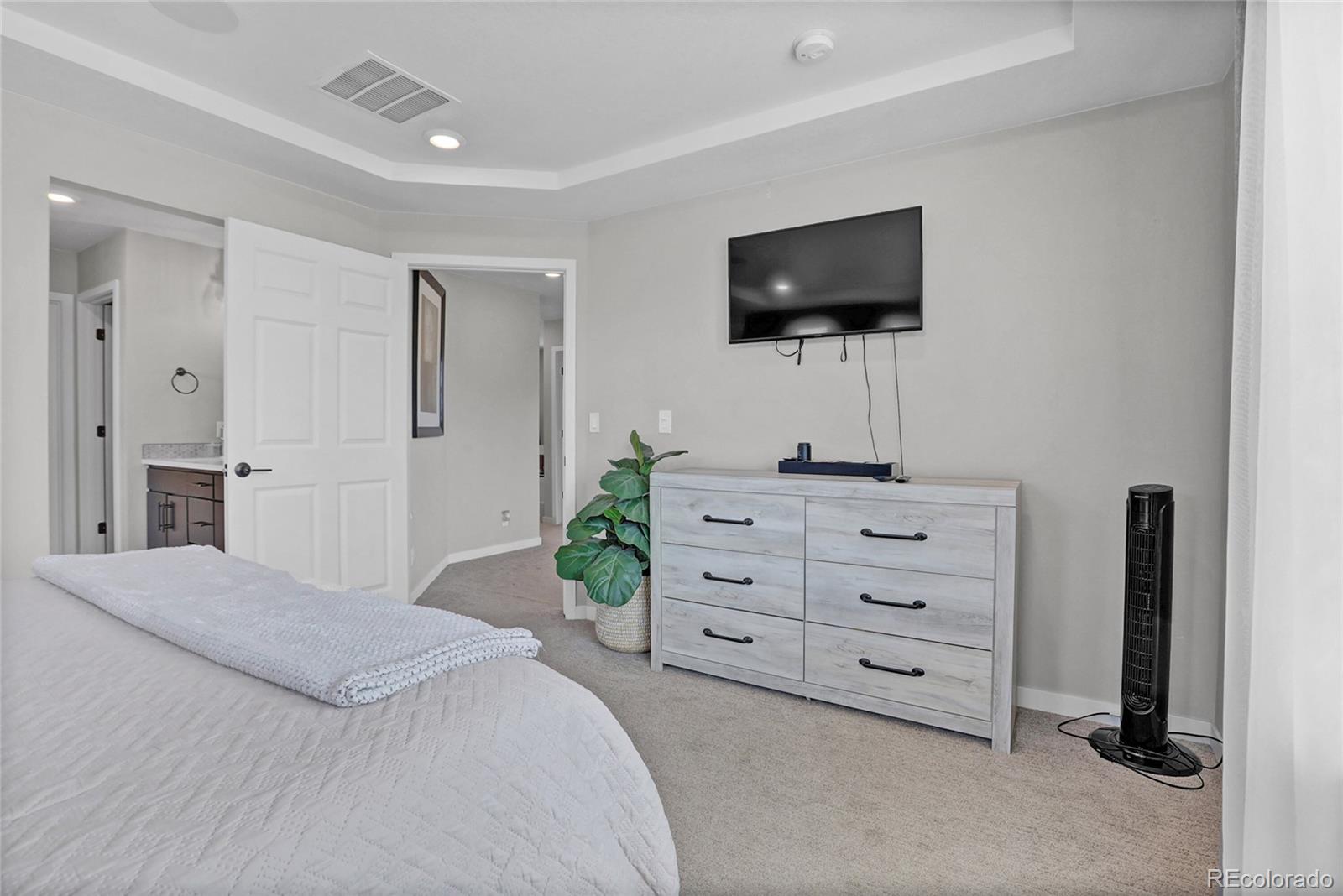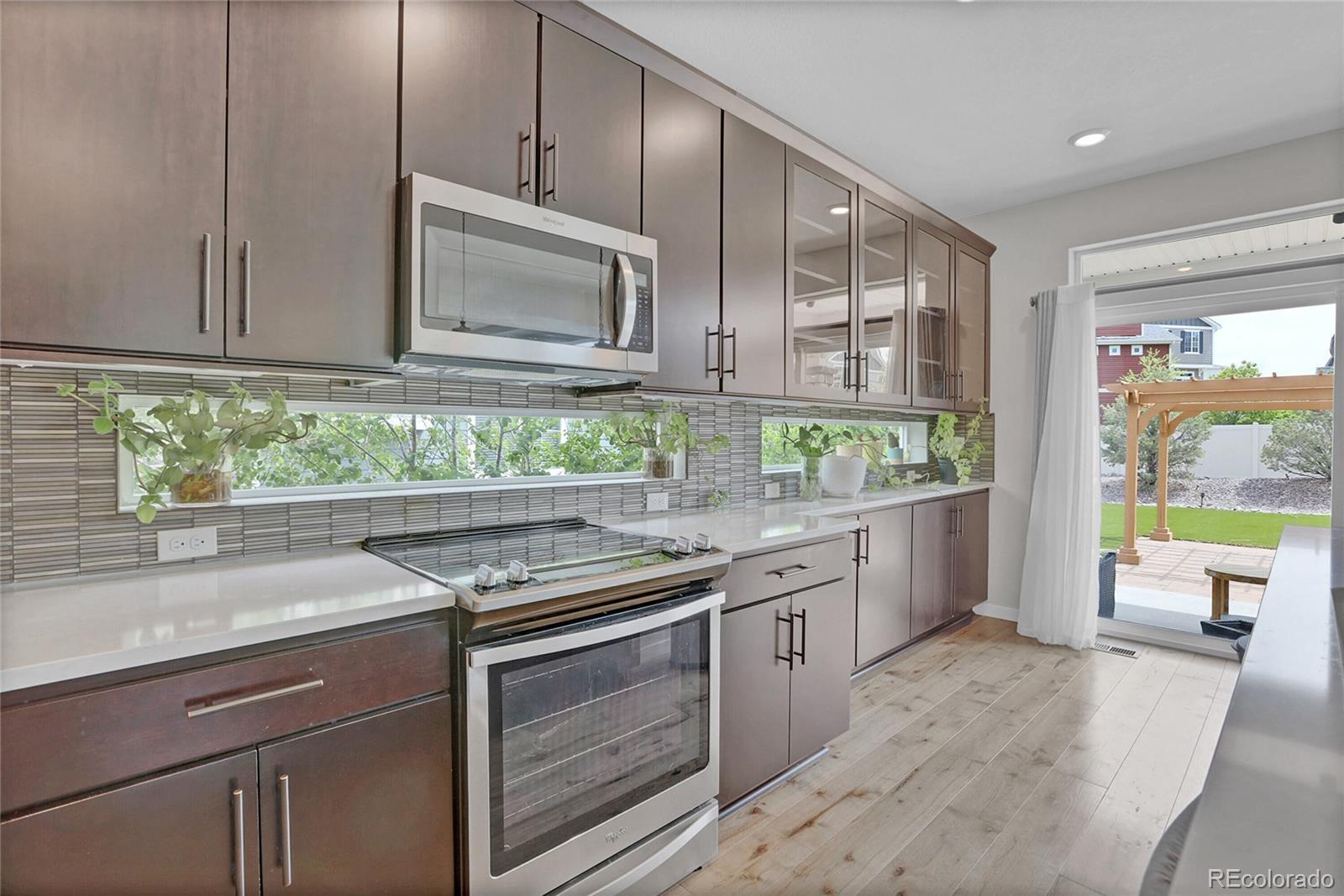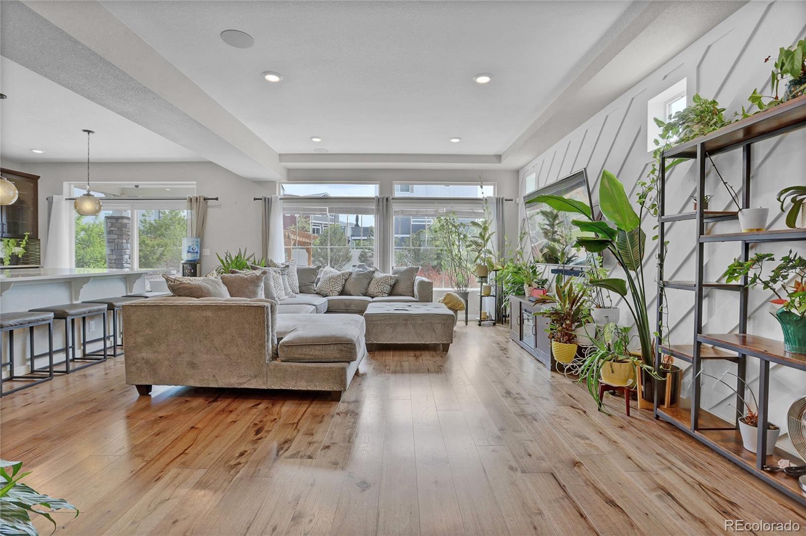 !! $5,000 SELLER CONCESSIONS BEING OFFERED !! Welcome to this stunning, fully upgraded model home in the sought-after Green Valley Ranch East community of Aurora. Boasting 4 bedrooms, 4 bathrooms, and 2,868 square feet of thoughtfully designed living space, this home perfectly balances comfort, style, and functionality. The open-concept main floor welcomes you with elegant LVP flooring, an abundance of natural light, and a seamless flow between the living and kitchen areas. The kitchen is a chef’s dream, featuring stainless steel appliances, a large island with seating, upgraded cabinetry, and custom backsplash windows not available in current builder models. The spacious living area offers a tray ceiling, recessed lighting, a custom accent wall, and expansive picture windows with views of the serene backyard. The primary suite serves as a private retreat, complete with a custom accent wall, en-suite bath with comfort-height dual vanities, a tile shower with glass door, and a walk-in closet. Upstairs includes two additional bedrooms, a full bathroom, a laundry room, loft/flex space, and a built-in desk—ideal for work or study. The finished basement extends your living space with a large family room, wet bar with fridge, an additional bedroom, and a full bath. Step outside to an entertainer’s paradise featuring an expansive patio, pergola, outdoor kitchen, and BBQ area, all set on an oversized corner lot. Located near parks, schools, and shopping, this home offers the best of suburban living in a vibrant and welcoming community. This is more than a home; it's a lifestyle!