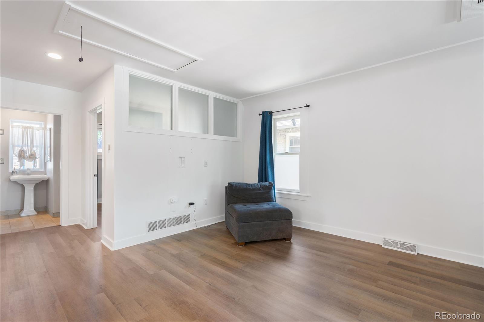 HUGE PRICE DROP!!! Welcome home to this adorable updated bungalow close to schools and Sloan's Lake! This home welcomes you into the cozy living room with a sleek tiled fire place, in addition there is a bonus area that could be used for a desk or reading nook . Open floor concept is bright and perfect for entertaining. The large dining room looks over into the kitchen. The kitchen is built for modern comforts, with gorgeous black granite, stainless steel appliances including a gas stove, plenty of cupboard and pantry space. There is one bedroom and a full updated bathroom on the main level. Heading down to the basement you see the original brick. The basement has an additional bedroom as well as the primary bedroom with an attached bonus room currently used as a walk in closet and laundry. The backyard has an entertaining patio space, and gardening beds. There is a 1 car detached garage, with an attached storage closet and an additional shed. This home is updated with new main floors, new hot water heater, but has kept many of its original built in 1925 charms. It is perfect for working from home or relaxing. Enjoy all the local hot spots - walking .7 miles to Sloan's Lake, Broncos Stadium, the school is down the street, and the shops at 32nd & Lowell!