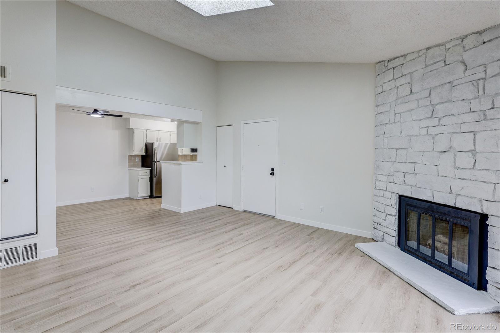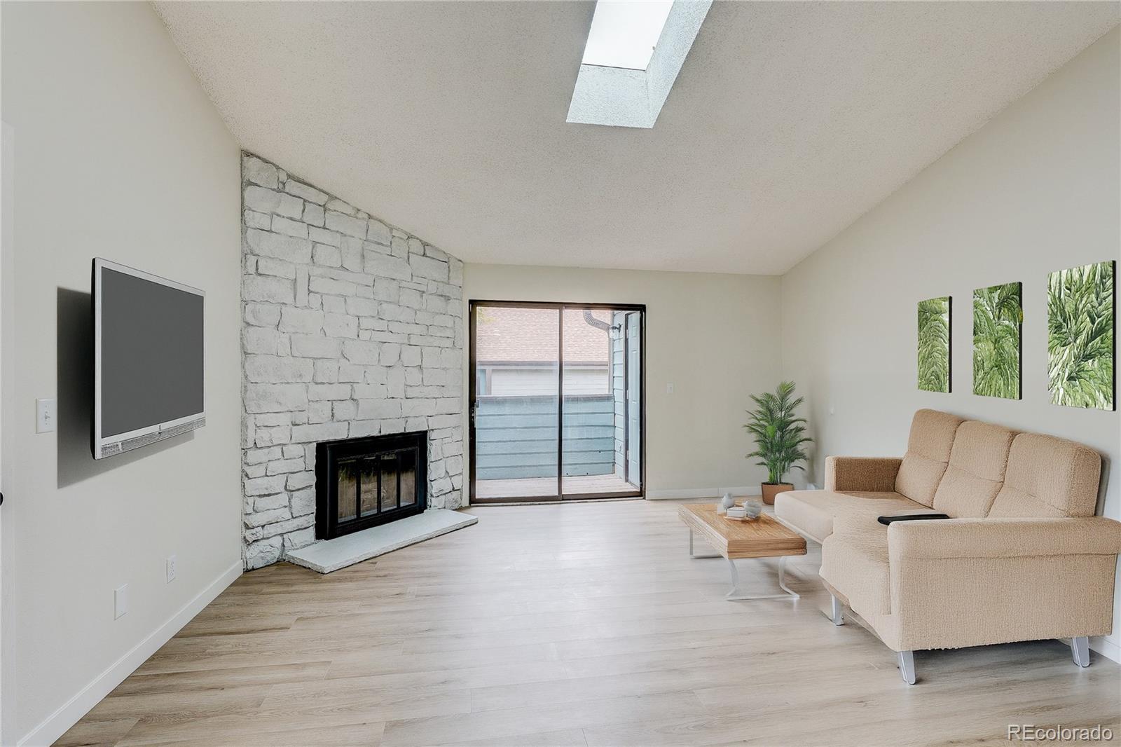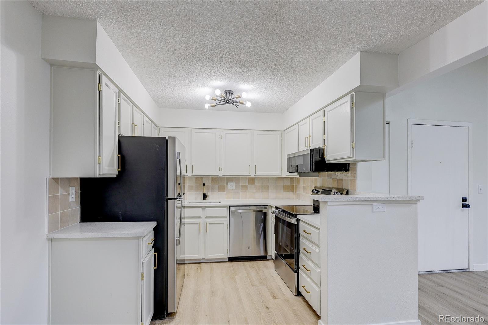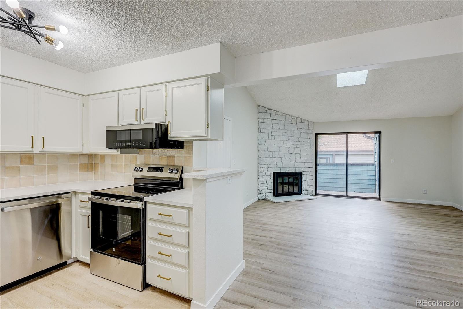 AMAZING Updated 2 Bed, 2 Bath End Unit in Telegraph Hill! Move-in ready and totally chic, this spacious, light-filled condo features vaulted ceilings, new laminate flooring, and stunning modern finishes throughout. Enjoy a stylish kitchen with quartz countertops, sleek tile backsplash, and brand-new stainless steel appliances. The living room boasts a cozy fireplace and opens to one of two private balconies! Both bedrooms are generously sized with walk-in closets, and the bathrooms shine with contemporary black and gold fixtures. Additional perks include a detached 1-car garage, reserved parking space, and plenty of storage. Community amenities: Pool, tennis court, and beautifully maintained grounds. Prime location near Cherry Creek State Park, bike trails, DIA, light rail, DTC, and public transit. Don’t miss this gem—schedule your tour today!