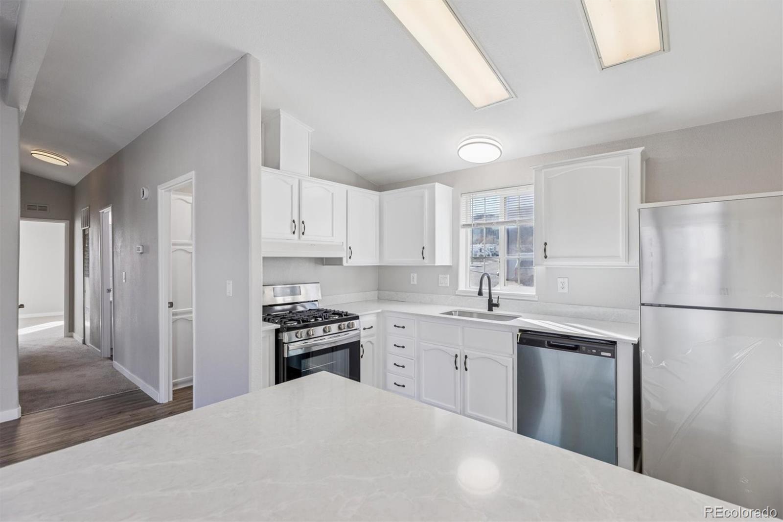 Beautifully remodeled 3-bedroom, 2-bath home located in desirable Golden Terrace. This move-in-ready property features fresh interior and exterior paint with modern tape-and-textured walls throughout. Enjoy new luxury vinyl flooring complemented by brand-new carpet in the bedrooms. The fully remodeled kitchen showcases elegant quartz countertops and new stainless steel appliances, perfect for everyday living and entertaining. Vaulted ceilings and updated lighting enhance the open, bright feel of the home. Both bathrooms have been updated with new vanities, and the spacious primary bedroom offers a large walk-in closet. A stylish, turnkey home you won’t want to miss!