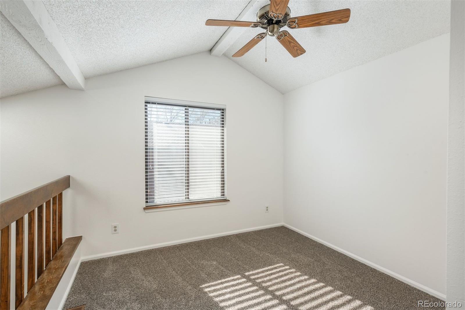 RARE END-UNIT- Freshly painted, light-filled townhome in the highly sought-after Beaumont Place! Soaring ceilings and an abundance of natural light welcome you into a modern, open-concept layout with hardwood flooring and new carpet that flows seamlessly throughout the main living areas. The kitchen features stainless steel appliances, plenty of cabinetry and a peninsula with plenty of room for seating. A main-floor bedroom offers flexible space for guests or a home office, complete with a generous closet and direct access to a full bathroom—ideal for visitors or remote work setups. Upstairs, the expansive primary suite is your private retreat. Enjoy a full bathroom with a large vanity, tiled shower, and plenty of natural light. A versatile loft space adds even more potential—use it as a cozy reading nook, a home gym, or easily enclose it to create an additional bedroom. The basement includes laundry space, is unfinished and ready for your imagination! eStep outside to your private patio—perfect for morning coffee or relaxing evenings. With a thoughtful layout and a prime location, this beautiful end unit truly checks all the boxes. Welcome home.