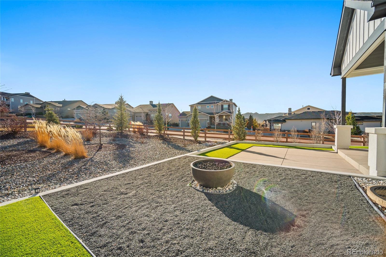 Experience refined main-level living in this stunning semi-custom ranch, thoughtfully designed and loaded with exceptional upgrades, located in the prestigious Flying Horse community. Immaculately maintained, this home sits on a beautifully landscaped corner lot with mountain views, a finished basement, and an oversized 3-car garage. The inviting great room features a beamed cathedral ceiling, floor-to-ceiling stone fireplace, wood flooring, and a striking shiplap accent wall. The gourmet kitchen impresses with a 5-burner gas cooktop, double ovens, stately vent hood, quartz countertops, brick backsplash, expansive island with seating and walk-in pantry. The adjoining light-filled dining area walks out to a partially covered patio, perfect for indoor-outdoor entertaining. A main-level office with 8’ French doors offers an ideal work-from-home space. The primary retreat boasts 12’ ceilings, abundant windows, and a ceiling fan. The spa inspired 5-piece bath includes a soaking tub, double quartz vanity, custom tile, and walk-in shower with pebbled tile floor. The custom walk-in closet features built-ins and generous storage. A second main-level bedroom with adjoining full bath provides private guest accommodations. The finished basement offers 9’ ceilings, a gas fireplace, spacious family room with wet bar and quartz counters, two additional bedrooms with walk-in closets, and a full bath. An unfinished flex space allows for future expansion. Enjoy exceptional outdoor living with a natural gas fire pit. Tesla solar panels and charging station included. Walking distance to The Club at Flying Horse and conveniently near Academy School District schools, Highway 83, Powers Boulevard, and Northgate Boulevard. A rare opportunity for luxurious main-level living in one of Colorado Springs’ most sought-after communities.