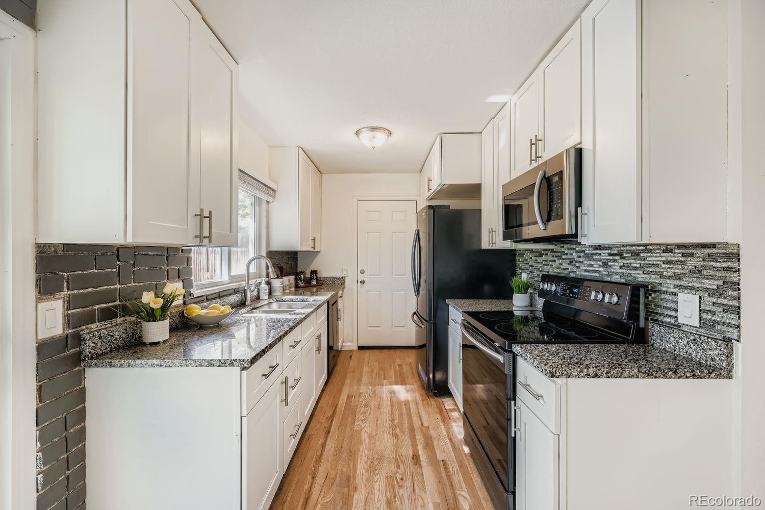 Welcome Home! This beautifully updated 4-bedroom, 2-bathroom home with a spacious, oversized 2-car garage, located in a quiet and established Aurora neighborhood. With over $20K in recent improvements, this move-in-ready property combines modern updates, functional living, and outstanding convenience. Inside, you’ll find refinished hardwood floors that brighten the space and give the home a fresh, modern feel. The kitchen is equipped with sleek black stainless steel appliances and a stylish backsplash, adding both beauty and durability to your cooking experience. Both bathrooms have been fully remodeled, featuring new vanities and custom tile showers, offering a spa-like touch. Enjoy year-round comfort with a newer A/C unit (installed approx. 4 years ago) and a refurbished furnace with a new motherboard and blower. The furnace and water heater have also been recently serviced and inspected, giving you peace of mind and energy efficiency. Step outside to a backyard built for entertaining, featuring an extended patio, a custom fire pit area, and a large shed for additional storage. The spacious, functional layout is perfect for relaxing or hosting guests. The location offers unbeatable convenience—just 3 minutes to I-225, close to the light rail station for easy commuting, and only 15 minutes to Cherry Creek Reservoir for weekend adventures. You’re also near Horseshoe Park, with a neighborhood bike path for daily recreation. No HOA and NO METRO DISTRICT—more freedom, fewer costs. With modern upgrades, stylish features, and an ideal location, this home is truly a standout. Don’t miss your chance to make it yours!