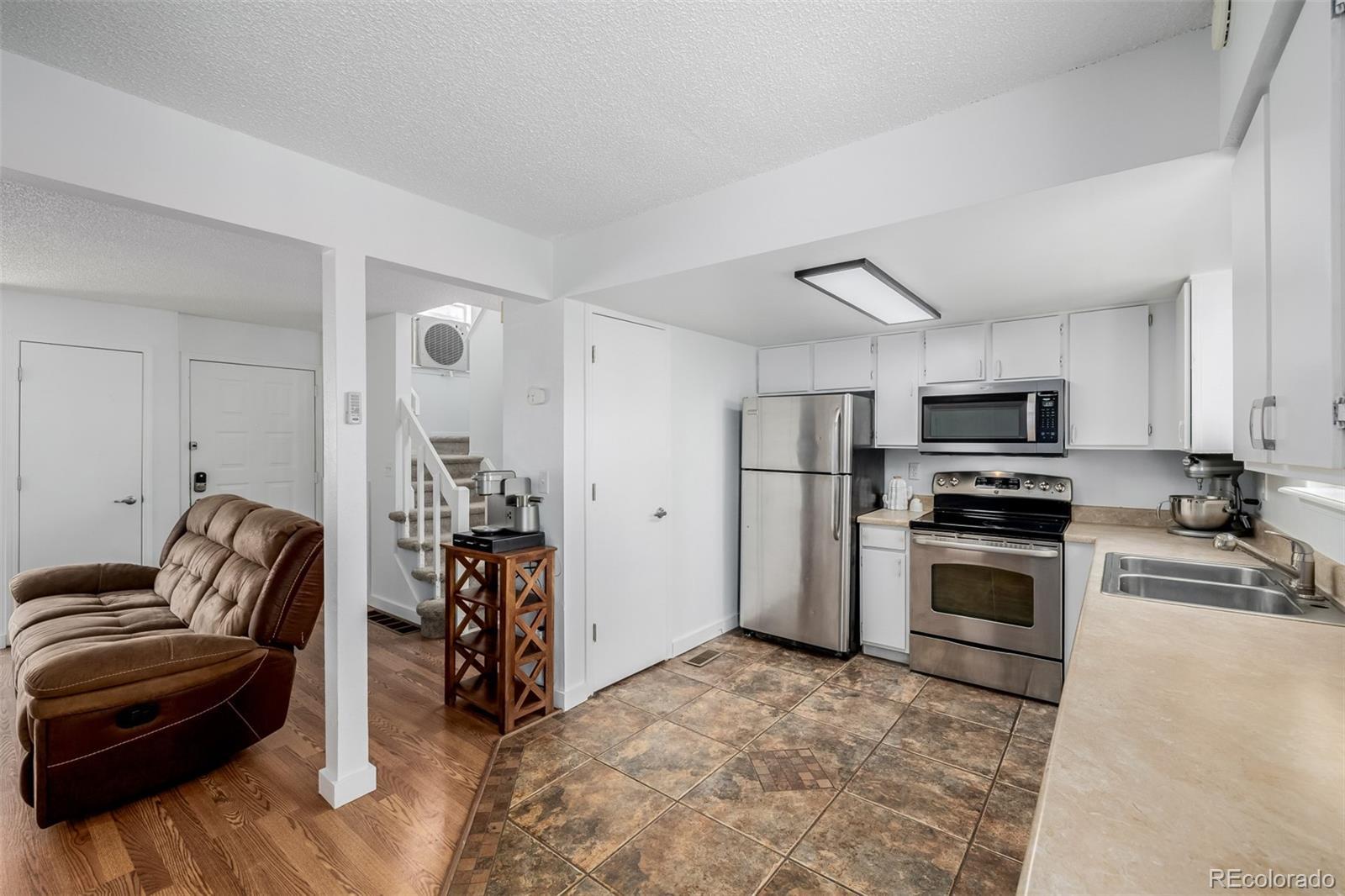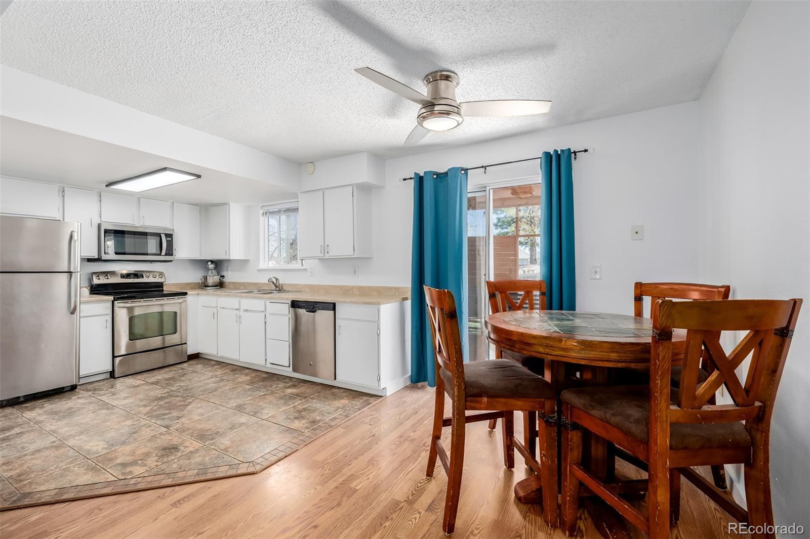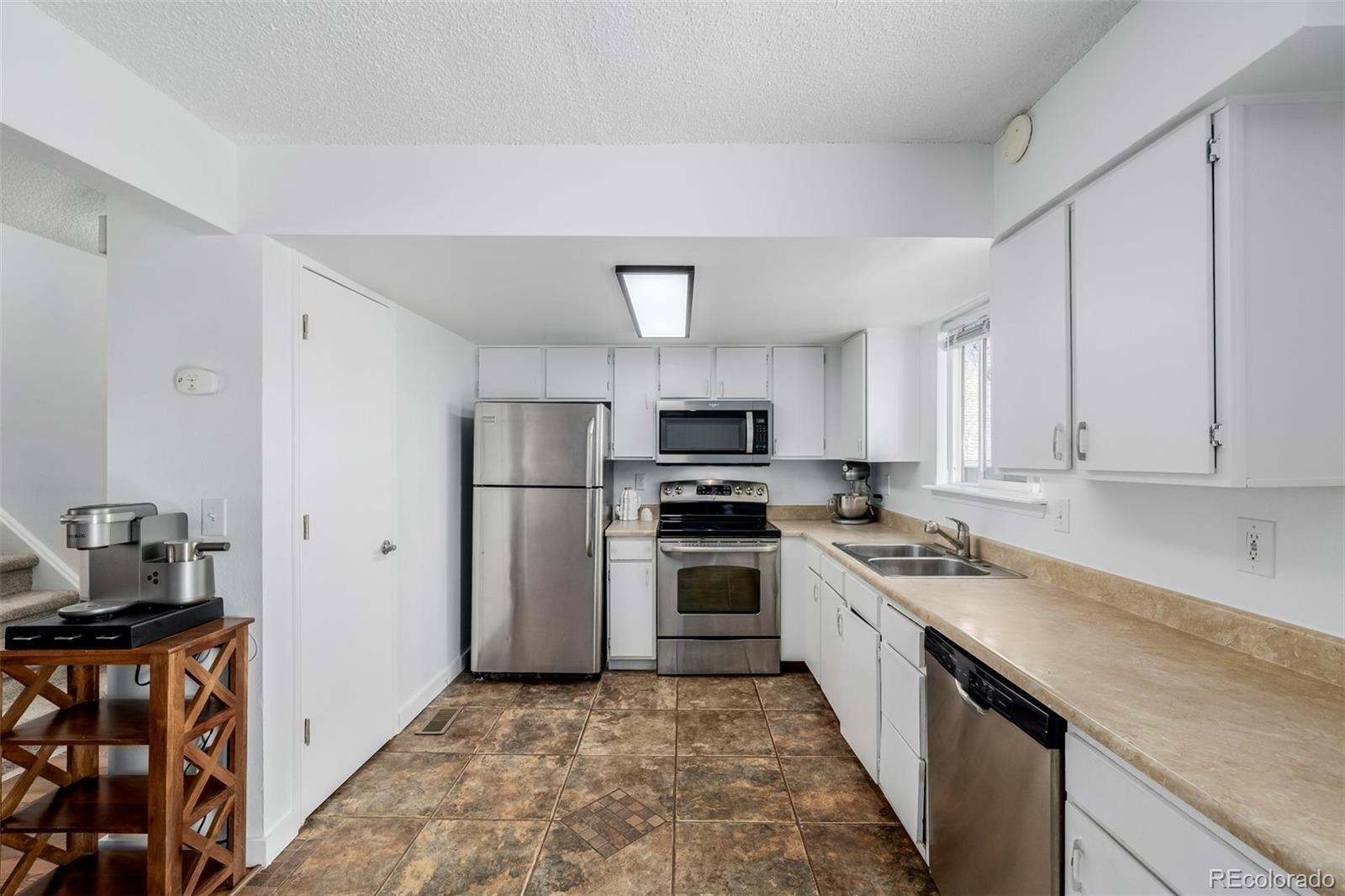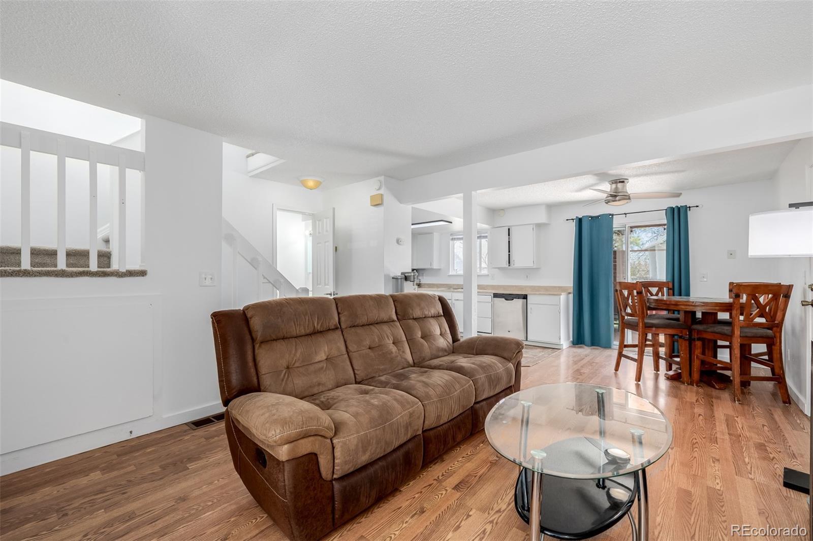 Discover this lovely gem in a peaceful neighborhood with a fantastic location! Welcome to this charming 2-bedroom residence boasting a large living area with new interior paint and warm laminate flooring on the main level. The open floor plan includes an updated kitchen with crisp white cabinetry, sleek stainless steel appliances, and a pantry for storing culinary essentials. Both bedrooms on the upper level offer a cozy ambiance and comfortable space, enhanced by newer carpeting. You'll also find a laundry closet located on the second level for your convenience, and a new swamp cooler has been installed for the hot summer months. Spend relaxing moments in the private yard, showcasing a back deck refinished and recently stained for weekend get-togethers. A new roof and gutters with a transferable warranty are an added bonus! Situated in the desirable Cherry Creek School District with no HOA and located moments away from Quincy Reservoir, Marina Park, Grandview Dog Park, and Meadow Point Elementary School, this home is just the one!