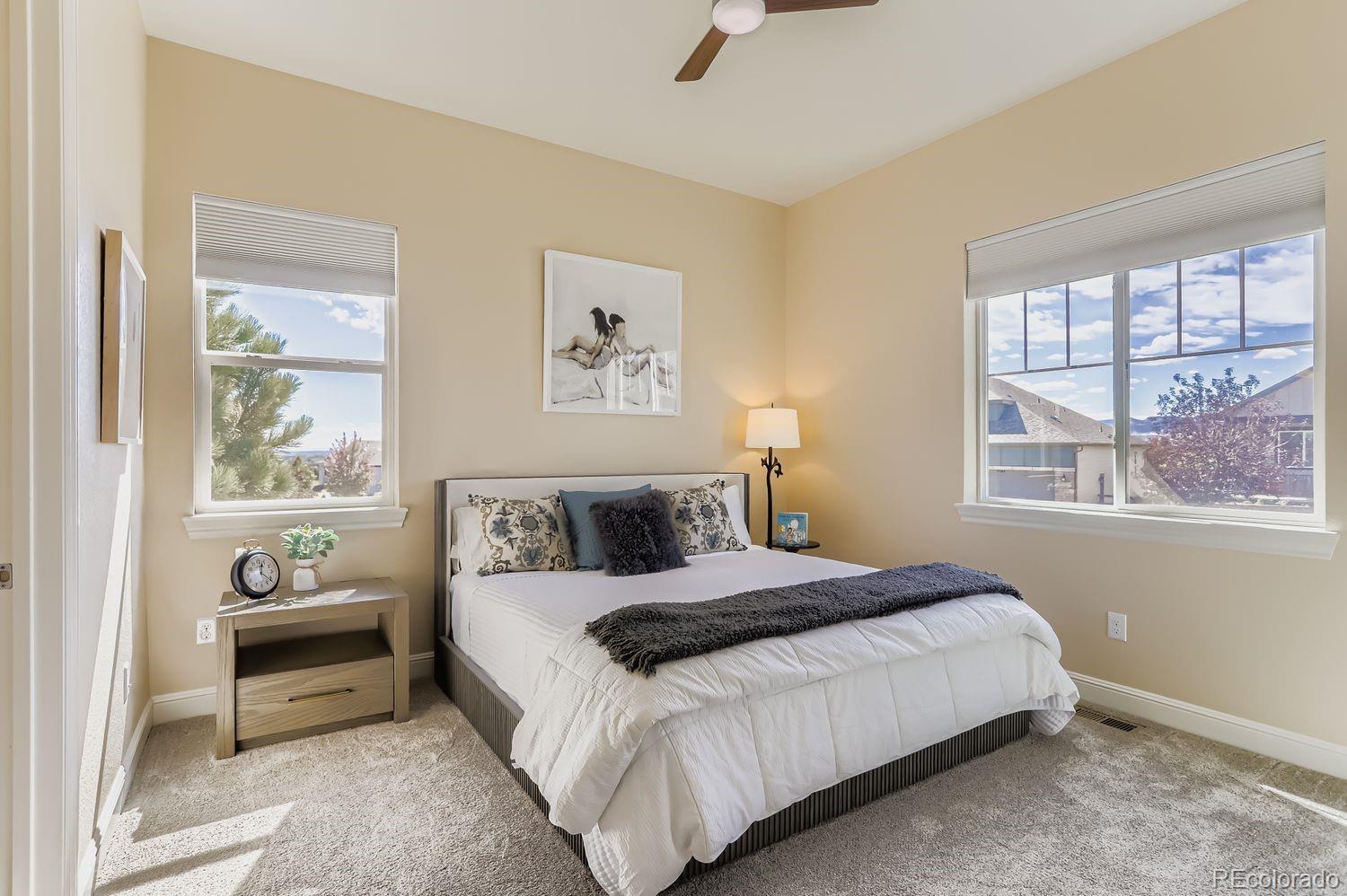 Immaculate home in incredible neighborhood!! Nestled in a highly sought-after neighborhood with top-rated schools, this 3-bedroom, 2.5-bath home offers the perfect balance of comfort, style, and functionality. The large home office makes for a wonderful third bedroom. Step inside to find new, top-of-the-line LED lighting throughout the kitchen, living, and dining areas that brighten every space. The living room is enhanced with elegant new drapes, while the bedrooms and office feature blackout shades for privacy and comfort. Outside, newly installed front steps add to the home’s curb appeal. The primary bedroom suite is a true retreat—exceptionally spacious with his-and-her walk-in closets. Wake up each morning to breathtaking views that make every day feel special. Designed for today’s lifestyle, the property includes an electric car charger and a top-of-the-line workstation in the garage, making it as practical as it is beautiful. The unfinished basement offers endless potential to create a custom retreat—whether a home gym, theater, or additional living space. Enjoy stunning views from throughout the home, with the peace of mind of being in a community known for its excellent schools. This home combines thoughtful upgrades with future possibilities, making it truly one of a kind.