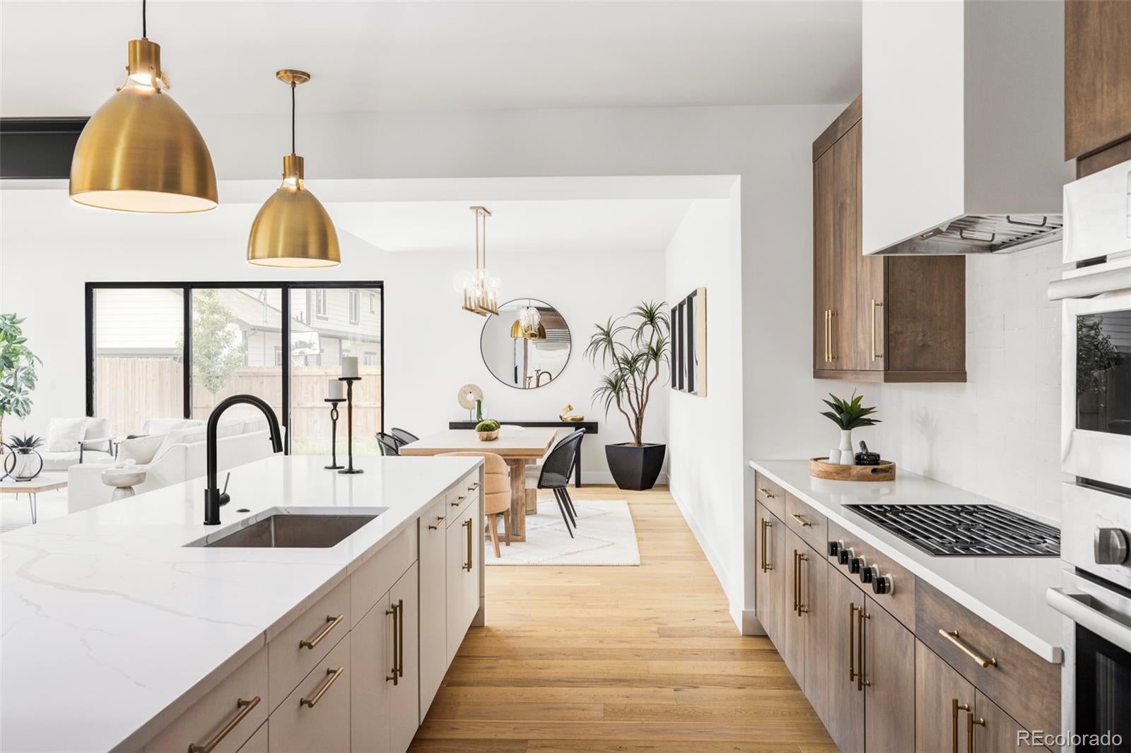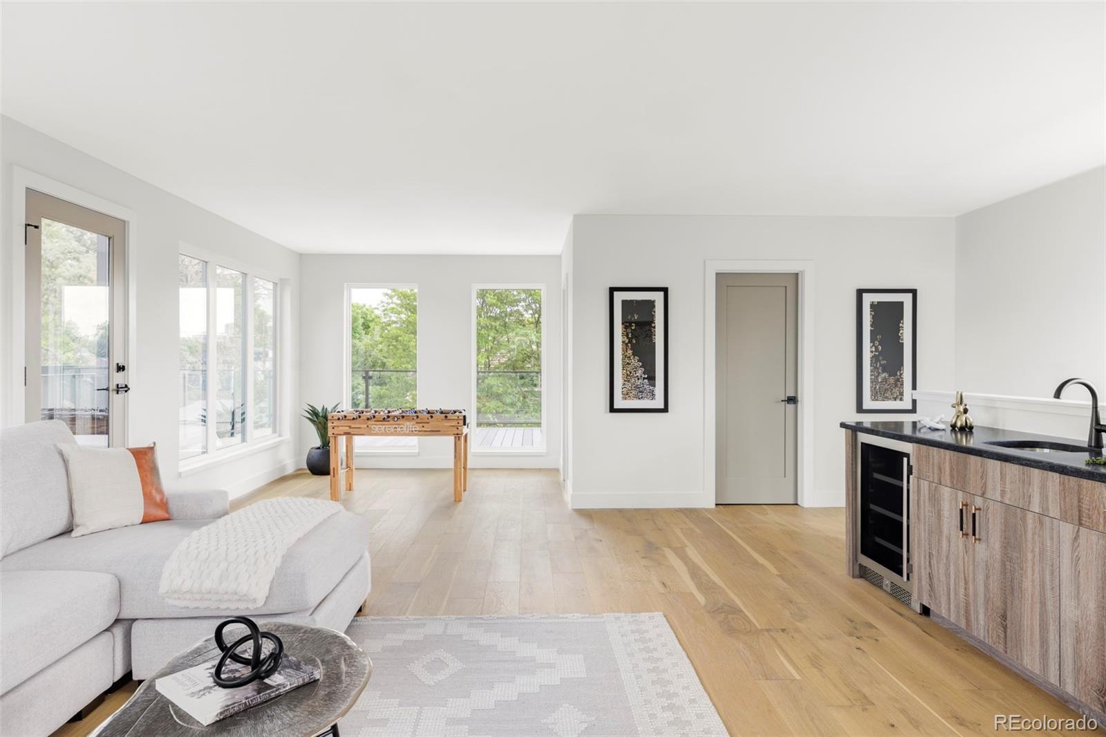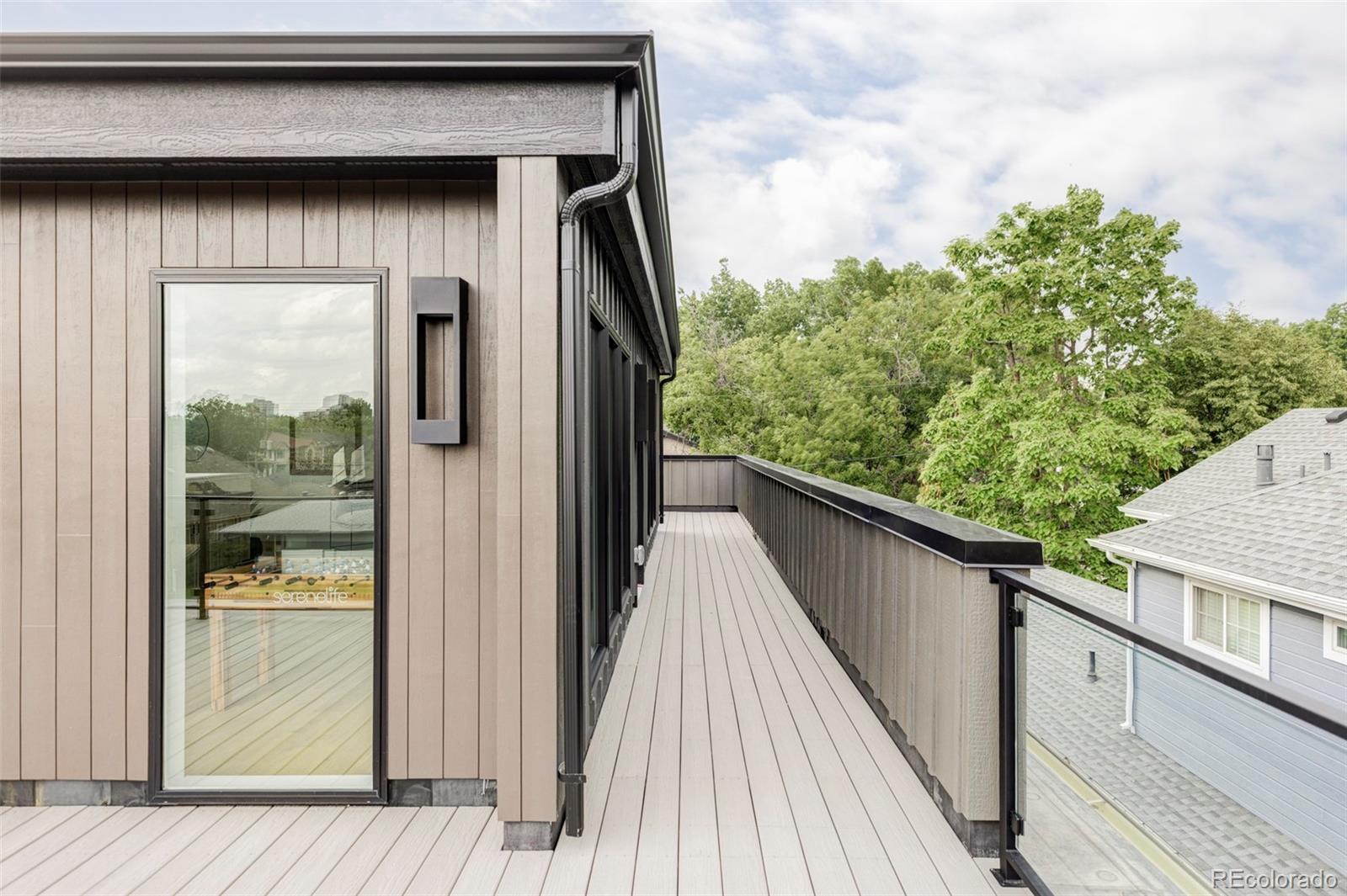 Refined elegance meets modern luxury in this exceptional Cory-Merrill home crowned by a rare rooftop deck. A contemporary façade with a covered front porch introduces a luminous, open layout brimming with thoughtful design and stylish designer millwork throughout. The gourmet kitchen impresses with high-end appliances including a Wolf cooktop, custom cabinetry and a vast center island — seamlessly connecting to a sophisticated dining area with a multi-slide door to a patio in a private, fenced backyard. The living room stuns with vaulted ceilings and a floor-to-ceiling fireplace. A main-floor office exudes style and function, while the primary suite offers a spa-like retreat with a soaking tub and walk-in shower. The third-floor party room features a wet bar and opens to a showstopping rooftop deck with mountain views. A finished basement includes a second wet bar and home gym. With built-in speakers and a three-car attached garage, this home balances striking design with everyday comfort.