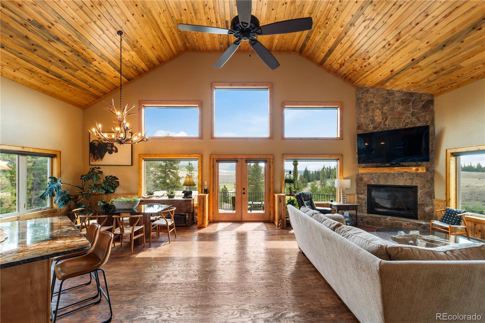Welcome to Fairplay, Colorado’s masterpiece with panoramic views, and a seasonal pond. SINGLE FAMILY/INCOME/AIRBNB. Located near Alma, Fairplay, and, Breckenridge. Enjoy summer activities in Buena Vista and Salida. Step inside 662 County Road 1, a remarkable mountain home, mostly furnished, and situated on 6.3 acres of gorgeous mountain land and located only 3/4 mile off Hwy 9. This residence is 4,491 square feet and offers ample space for comfortable living and distinct entertaining. With four spacious bedrooms and 3.5 bathrooms, the home provides an ideal setup for both family living and hosting guests. Enjoy Colorado outdoor activities such as skiing, hiking, fishing, biking, horseback riding, rafting, and much more. Enter into a world of elegance where expansive living areas effortlessly blend modern design with rustic charm. The open-concept layout allows for a seamless flow between the living, dining, and kitchen spaces, creating a welcoming atmosphere for gatherings of any size. Large windows flood the home with natural light while offering breathtaking views of the surrounding landscape. The kitchen, a haven for culinary enthusiasts, is equipped with generous counter space, making meal preparation a delight. Adjacent to the kitchen, the dining area offers a perfect spot for both casual meals and formal dinners. Retreat to the master suite, a true sanctuary featuring a luxurious ensuite bathroom. Each additional bedroom provides comfort and privacy, ensuring every family member has their own personal retreat. The fully finished basement has 2 bedrooms and 1 bath. A wood burning stove, and radiant floor heating. A private entry for guests and currently can be used as an Airbnb for additional potential income.