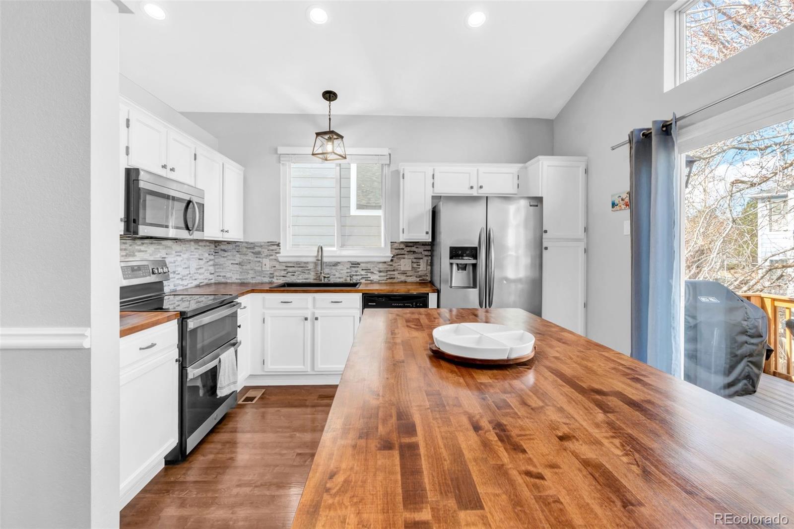 Welcome home to this beautifully updated Parker gem—where the upgrades are done, the layout is functional, and the home feels warm, inviting, and truly move-in ready. The main level feels bright and open thanks to the high ceilings, creating that airy, spacious look buyers love. At the heart of the home is the updated kitchen, featuring a newer island with butcher block countertops—perfect for meal prep, entertaining, or gathering with friends while dinner’s cooking. It’s the kind of kitchen that actually works for real life, with plenty of space to spread out. The main living area is equally inviting, centered around a cozy stone fireplace, making it the perfect spot for relaxing evenings, holiday mornings, and Colorado winters. Upstairs, the home offers a thoughtfully designed bedroom layout. The primary suite provides a private retreat with great space to unwind, while the secondary bedrooms share a Jack-and-Jill bathroom, giving everyone their own access without sacrificing privacy. Downstairs, the finished basement adds an impressive amount of extra living space, complete with built-in cabinets—ideal for a media room, playroom, home gym, office, or guest setup. The outdoor space seals the deal. Step onto the beautiful deck overlooking a large backyard, ready for BBQs, entertaining, and enjoying Colorado’s sunshine. To top it all off, the location is hard to beat—convenient to Parker (Whole Foods, Trader Joes,, and Costco is within walking distance!), Park Meadows, DIA, and the Denver Tech Center, making commuting, shopping, dining, and travel incredibly easy. This home checks all the boxes: updated, spacious, functional, and in a prime location. Come see it before someone else grabs it. Ask about our lender incentives!