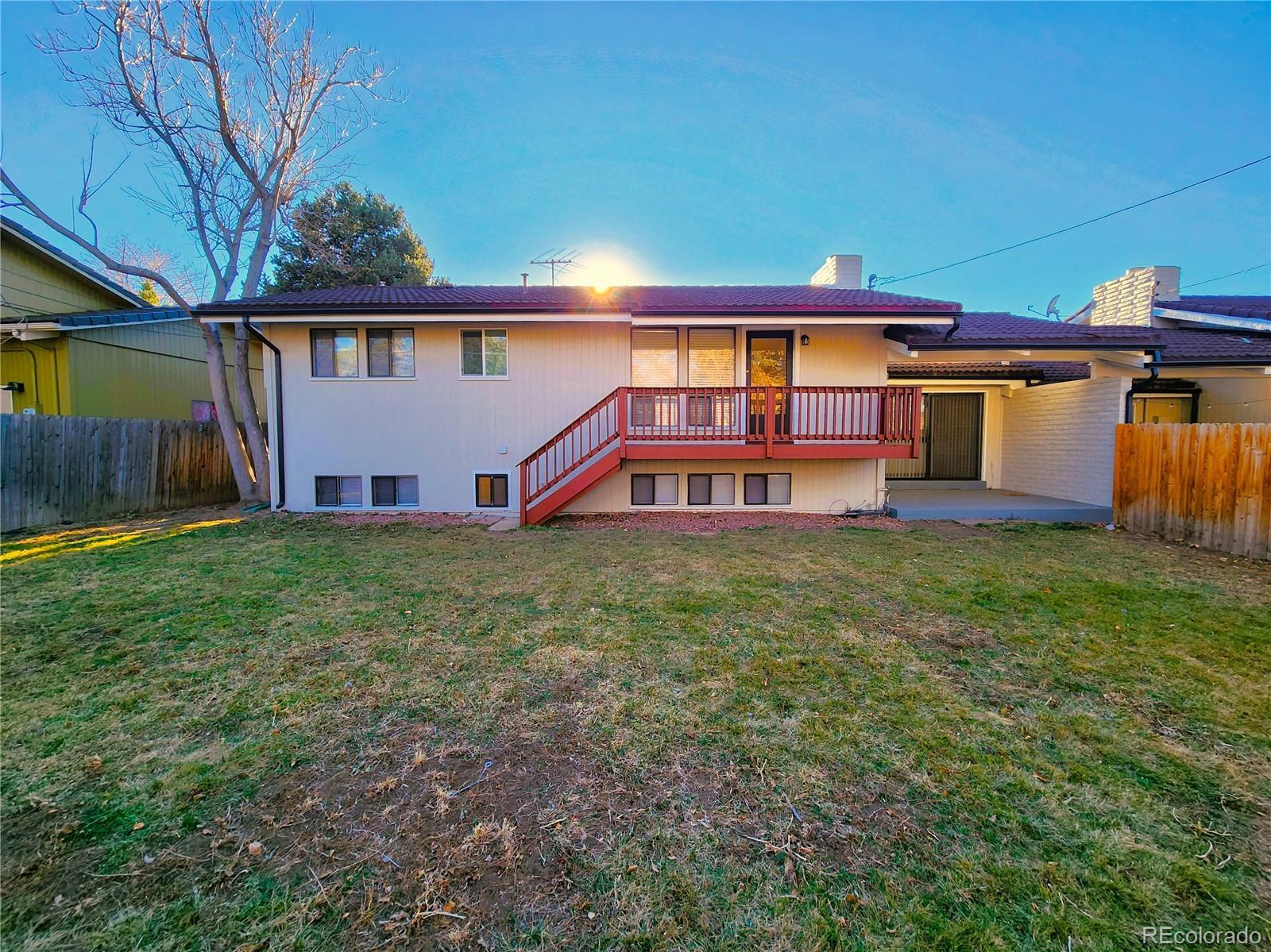 Located in coveted Greenwood Village, this exceptional property offers everything you could want in a home. situated just three blocks from the top-rated Cherry Creek elementary, middle, and high schools, the location is truly unbeatable. Outdoor enthusiasts will love being minutes from the trails of Cherry Creek State Park, with the reservoir marina only six minutes away. For entertainment, you are a short Uber ride from Fiddler's Green Amphitheatre and the premier dining, shopping, and pubs of the Denver Tech Center. The interior features a masterful, open-flowing floor plan highlighted by vaulted ceilings, gleaming oak floors, and fresh paint. The updated kitchen boasts new appliances, granite countertops, and refaced cabinetry, transitioning seamlessly into a formal dining room and an informal eating area that opens to a covered patio. The expansive living room features soaring ceilings and access to an elevated deck overlooking a generous backyard, while the cozy family room is equipped with a fireplace and wet bar—perfect for a home theater or recreation space. The layout ensures maximum privacy, with all three bedrooms situated away from one another, each featuring an adjacent bathroom. Additional highlights include new light fixtures throughout, an oversized two-car garage for all your gear, and a massive unfinished basement with tall ceilings, offering an excellent opportunity for future sweat equity. The home is huge for a 1/2 duplex and has a very generous lot giving it the feel of a single family home—don't miss your chance. Call today for a private showing!