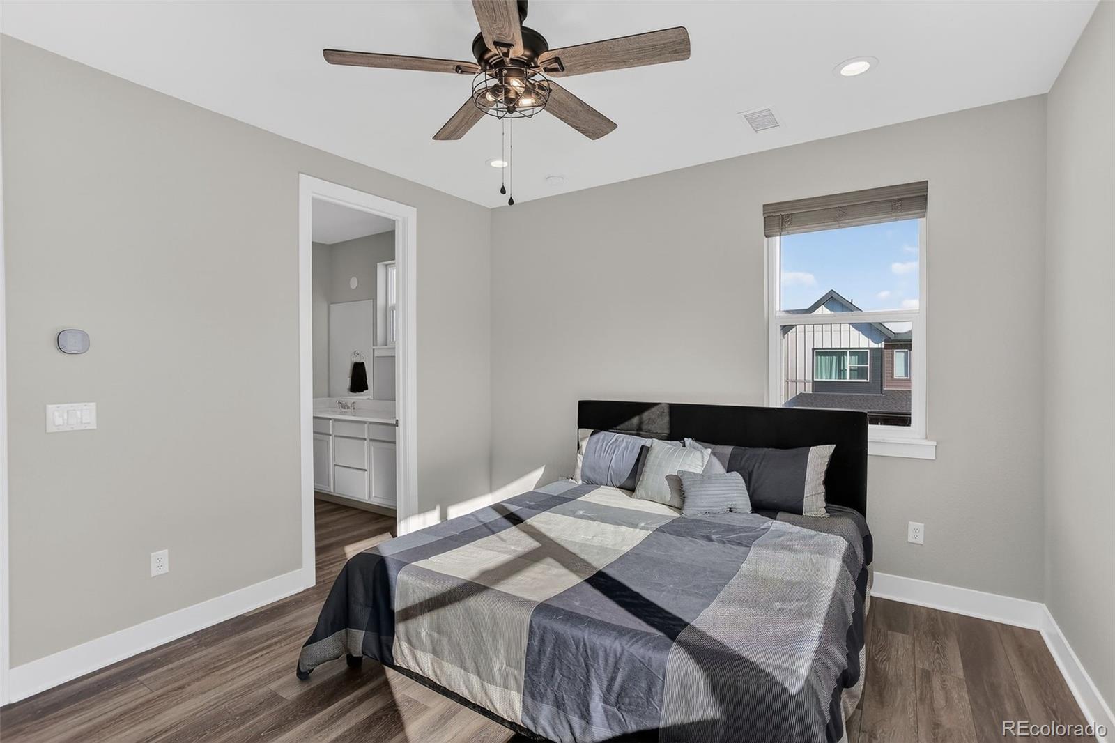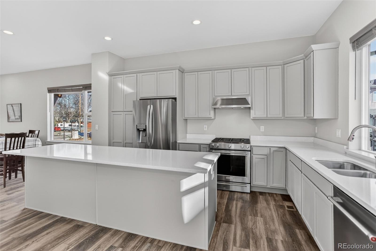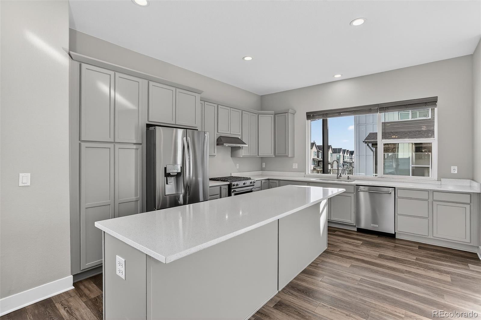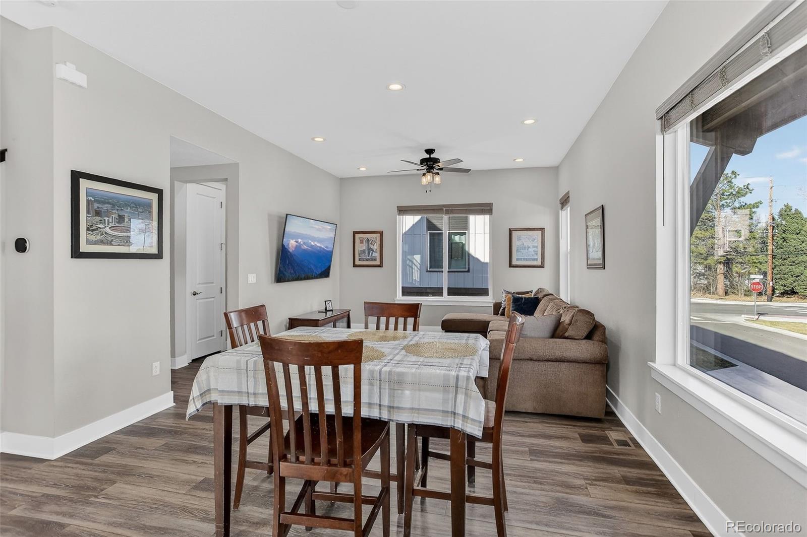 There’s something special about a home that greets you with light. In the heart of Wheat Ridge at the Ridge at Ward Station, this beautiful end-unit townhome is filled with sunshine, warmth, and a sense of ease that instantly feels like home. Just steps from Clear Creek trails and nearby parks, mornings begin with fresh air and peaceful walks, and evenings invite you back to a place that feels calm and connected. Inside, clean architectural lines and oversized windows create an open, airy flow, while stylish luxury vinyl floors add warmth throughout the main living spaces. The kitchen becomes the natural gathering place—anchored by a generous quartz island, stainless steel appliances, and thoughtfully designed cabinetry with pull-out shelving and rotating corner storage. It’s easy to imagine slow weekend breakfasts, casual dinners with friends, and conversations that linger. A main-level powder bath adds everyday convenience. Upstairs, the primary suite feels like a private retreat with a spa-inspired bath, dual sinks, and a beautifully tiled shower. A second upstairs bedroom offers its own ensuite bath and walk-in closet, while laundry is conveniently located upstairs for everyday ease. The lower level offers flexibility and possibility with a private bedroom, full bath, and bonus office or flex space—perfect for guests, working from home, or creating a personal haven. Smart-home features include smart appliances, lighting, thermostat, and a tankless water heater. Located within top-rated Jefferson County schools and a neighborhood that values local favorites like Edwards Meats and Heinie’s Market, this home isn’t just where you live—it’s how you live. Close to dining, parks, and easy highway access, life here simply feels good.