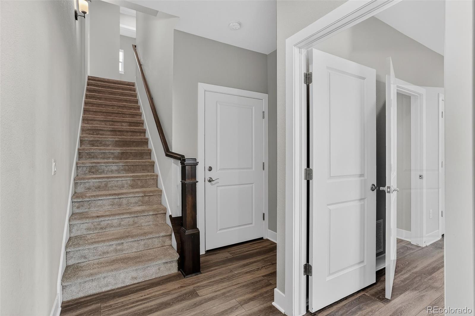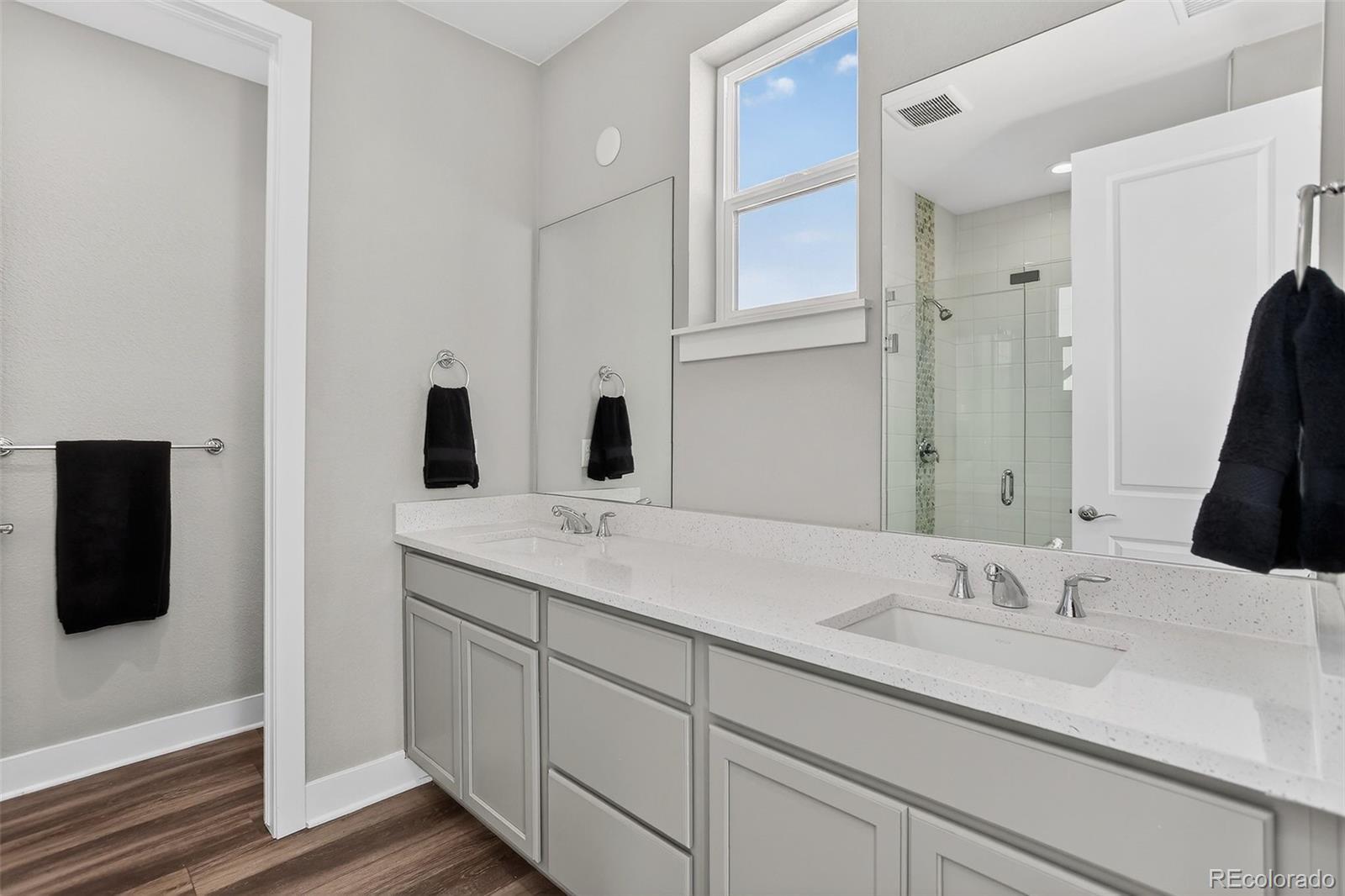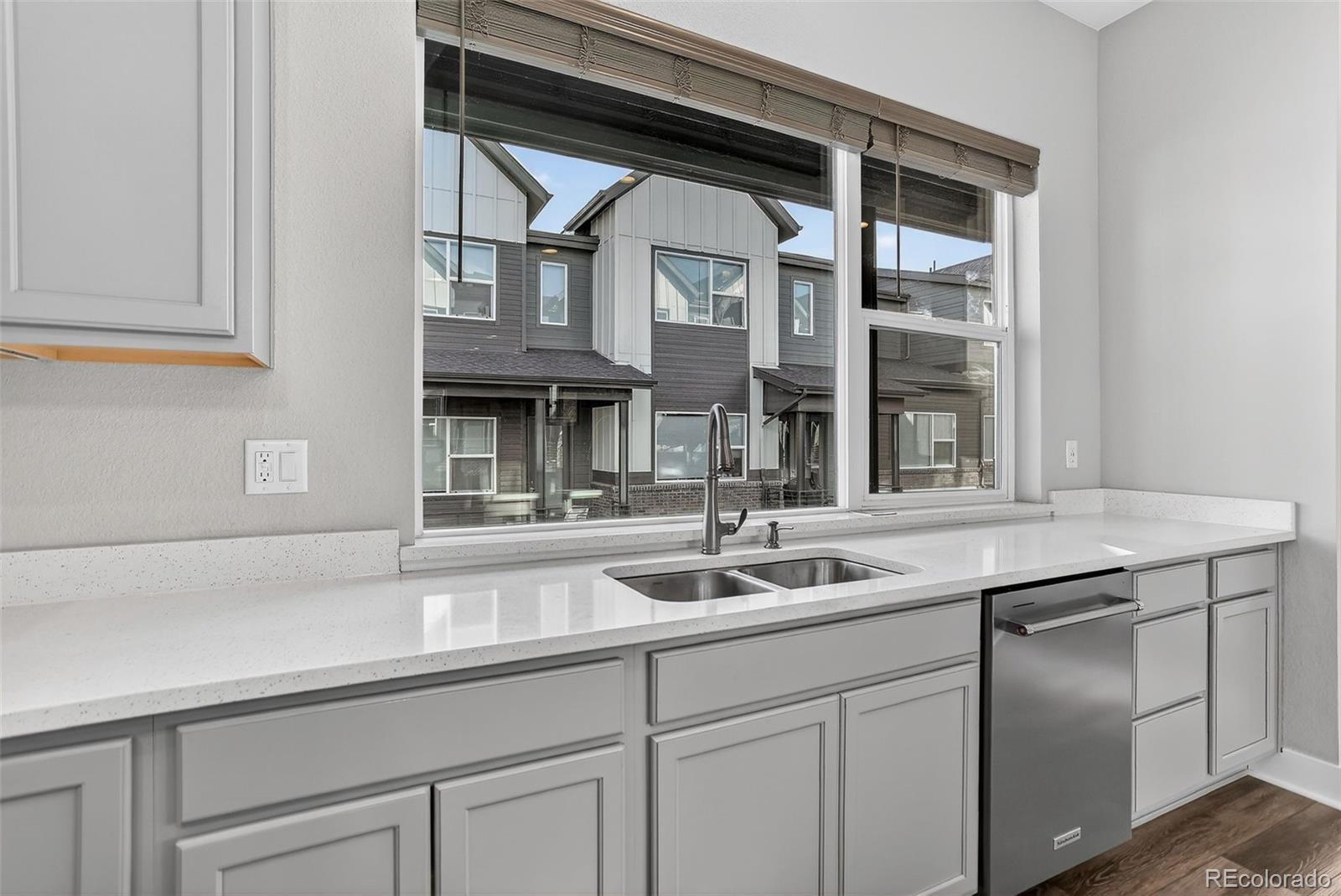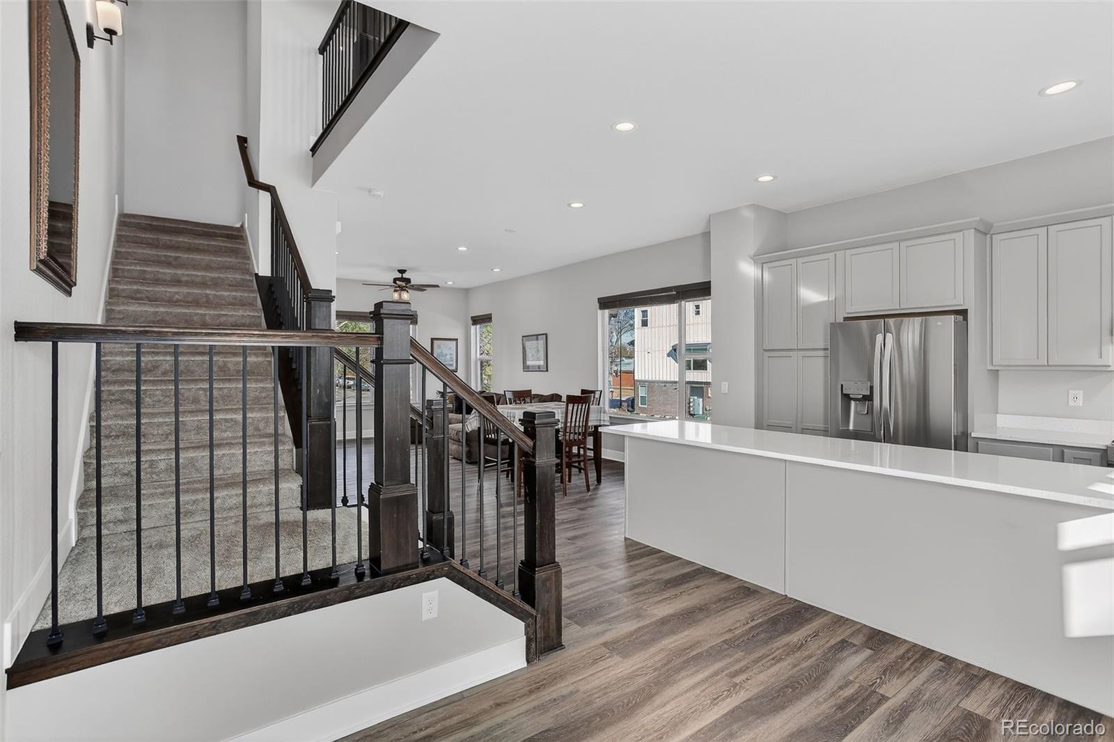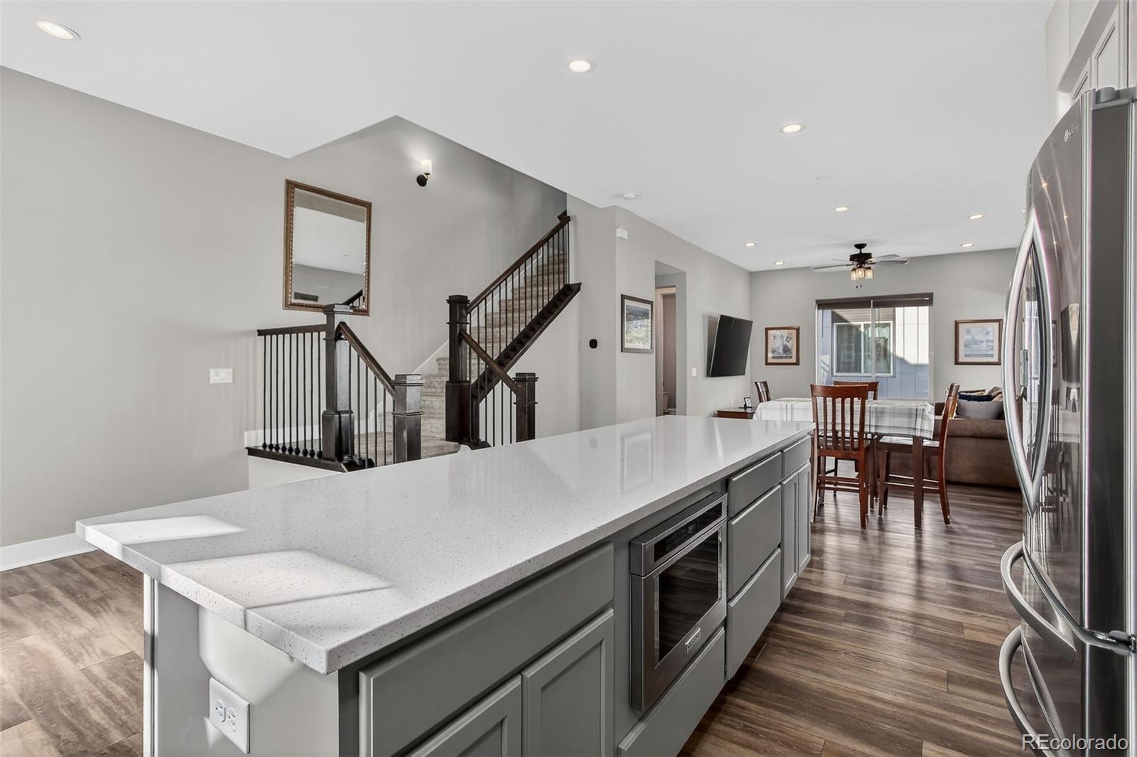 There’s something special about a home that greets you with light. In the heart of Wheat Ridge at the Ridge at Ward Station, this beautiful end-unit townhome is filled with sunshine, warmth, and a sense of ease that instantly feels like home. Just steps from Clear Creek trails and nearby parks, mornings begin with fresh air and peaceful walks, and evenings invite you back to a place that feels calm and connected. Inside, clean architectural lines and oversized windows create an open, airy flow, while stylish luxury vinyl floors add warmth throughout the main living spaces. The kitchen becomes the natural gathering place—anchored by a generous quartz island, stainless steel appliances, and thoughtfully designed cabinetry with pull-out shelving and rotating corner storage. It’s easy to imagine slow weekend breakfasts, casual dinners with friends, and conversations that linger. A main-level powder bath adds everyday convenience. Upstairs, the primary suite feels like a private retreat with a spa-inspired bath, dual sinks, and a beautifully tiled shower. A second upstairs bedroom offers its own ensuite bath and walk-in closet, while laundry is conveniently located upstairs for everyday ease. The lower level offers flexibility and possibility with a private bedroom, full bath, and bonus office or flex space—perfect for guests, working from home, or creating a personal haven. Smart-home features include smart appliances, lighting, thermostat, and a tankless water heater. Located within top-rated Jefferson County schools and a neighborhood that values local favorites like Edwards Meats and Heinie’s Market, this home isn’t just where you live—it’s how you live. Close to dining, parks, and easy highway access, life here simply feels good.