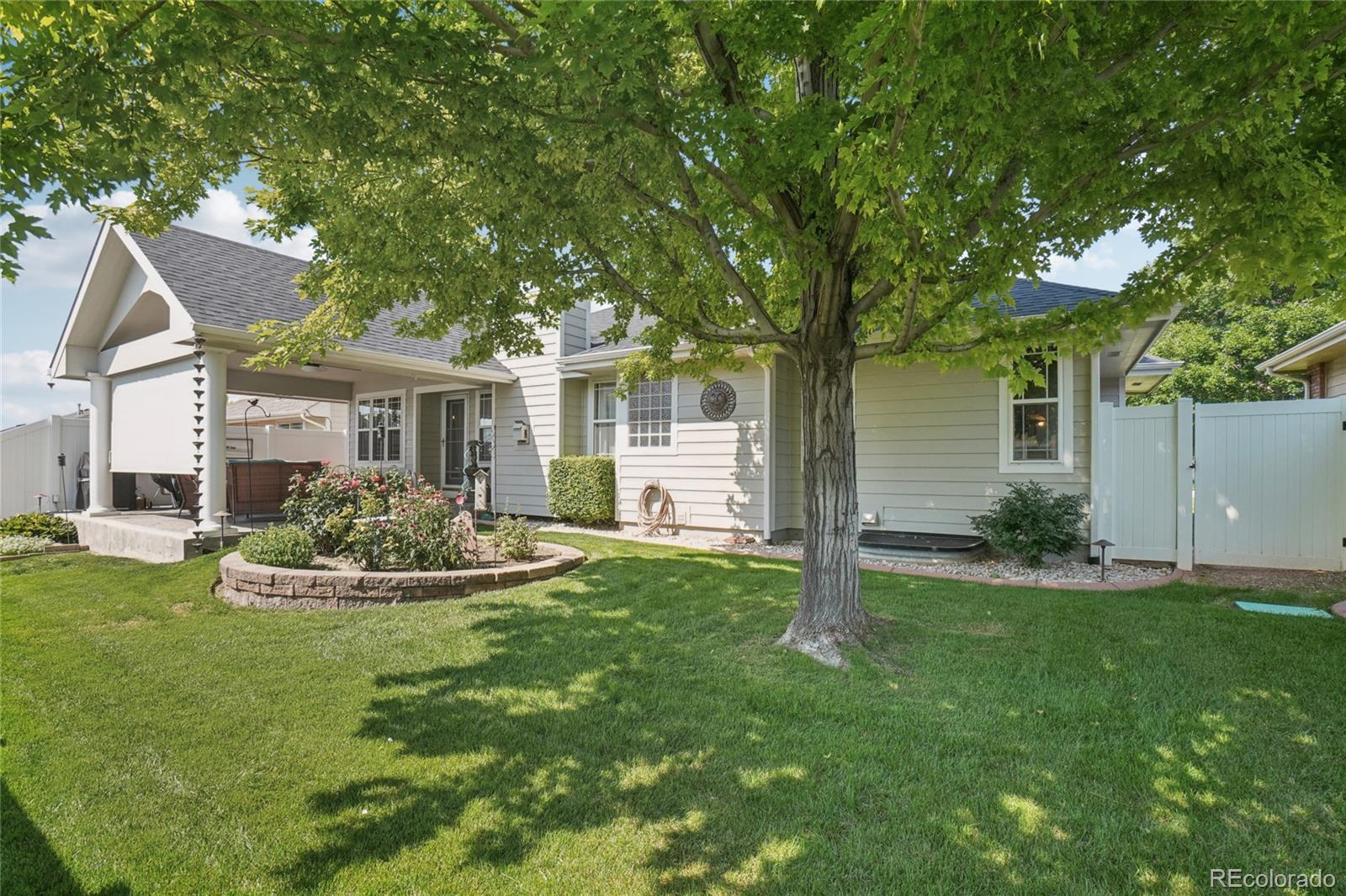 Welcome to your beautifully maintained home in the desirable St. Michaels community of Greeley. Nestled in a quiet, well-kept neighborhood, this residence offers the perfect blend of comfort, style, and convenience. Step inside to discover a spacious open-concept living area with soaring vaulted ceilings and abundant natural light. The inviting living room centers around a cozy gas fireplace and flows seamlessly into the dining area with direct access to the covered patio—ideal for indoor-outdoor living. The kitchen continues the vaulted ceilings and features granite countertops, stainless steel appliances, rich wood cabinetry, and plenty of prep space for all your culinary needs. The bedroom wing of the home offers privacy and functionality. The primary suite is a true retreat with tray ceilings, a luxurious 5-piece ensuite bath, and a generous walk-in closet. Two additional bedrooms—one with vaulted ceilings—share a full bath, and a convenient laundry closet completes the main level. Downstairs, the finished basement expands your living space with a large media room equipped with a sound system, perfect for movie nights and entertaining. You’ll also find a fourth bedroom with egress windows, a ¾ bathroom, and a spacious utility/storage room. Out back, enjoy your own private oasis with a beautifully landscaped, fenced-in yard, lush lawn, flower beds, and a comfortable covered patio for relaxing evenings or morning coffee. A 2-car attached garage offers convenience and additional storage. Furnace and AC are both NEW, the roof and fresh paint both recently updated, and water heater is 8 years old. With its peaceful setting, quick access to local amenities, and a true sense of community, this St. Michaels gem is ready to welcome you home!