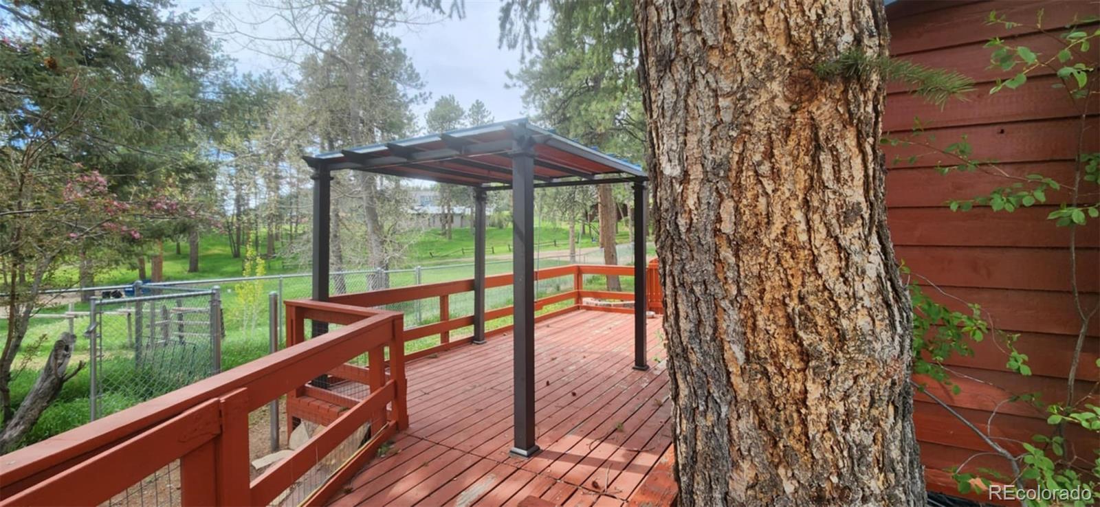 Welcome to this inviting ranch-style retreat set on .70 acres in the heart of Indian Hills. Next to towering ponderosa pines, this home blends mountain charm with modern comfort. Inside, you’ll find 3 bedrooms, 2 baths, plus an office and a versatile workout/flex room that adapts to your lifestyle. The open Great Room is the true centerpiece, featuring a cozy gas fireplace with a stone surround and a bay window that brings in natural light, creating a warm and welcoming space. The kitchen flows easily into this gathering area, perfect for everyday living and entertaining. Step outside to enjoy the best of Colorado living. A spacious L-shaped deck overlooks a fully fenced yard, offering room for pets to roam, for gardening, or simply for soaking up the peace of your private setting. A small water feature near the deck adds a touch of tranquility, making it the perfect spot for morning coffee or to unwind at the end of the day. The property also includes a two-car detached garage and a storage shed, giving you plenty of room for vehicles, gear, and tools. Living in Indian Hills offers a unique lifestyle—quiet mountain surroundings with easy access to recreation, trails, and wildlife, yet close enough to Evergreen, Morrison, and Denver for shopping, dining, and commuting. Whether you’re working from your private office, gathering around the fire on crisp evenings, or hosting friends for summer barbecues under the trees, this home delivers the best of both worlds: mountain serenity with modern convenience. Discover why this is the perfect place to call HOME!