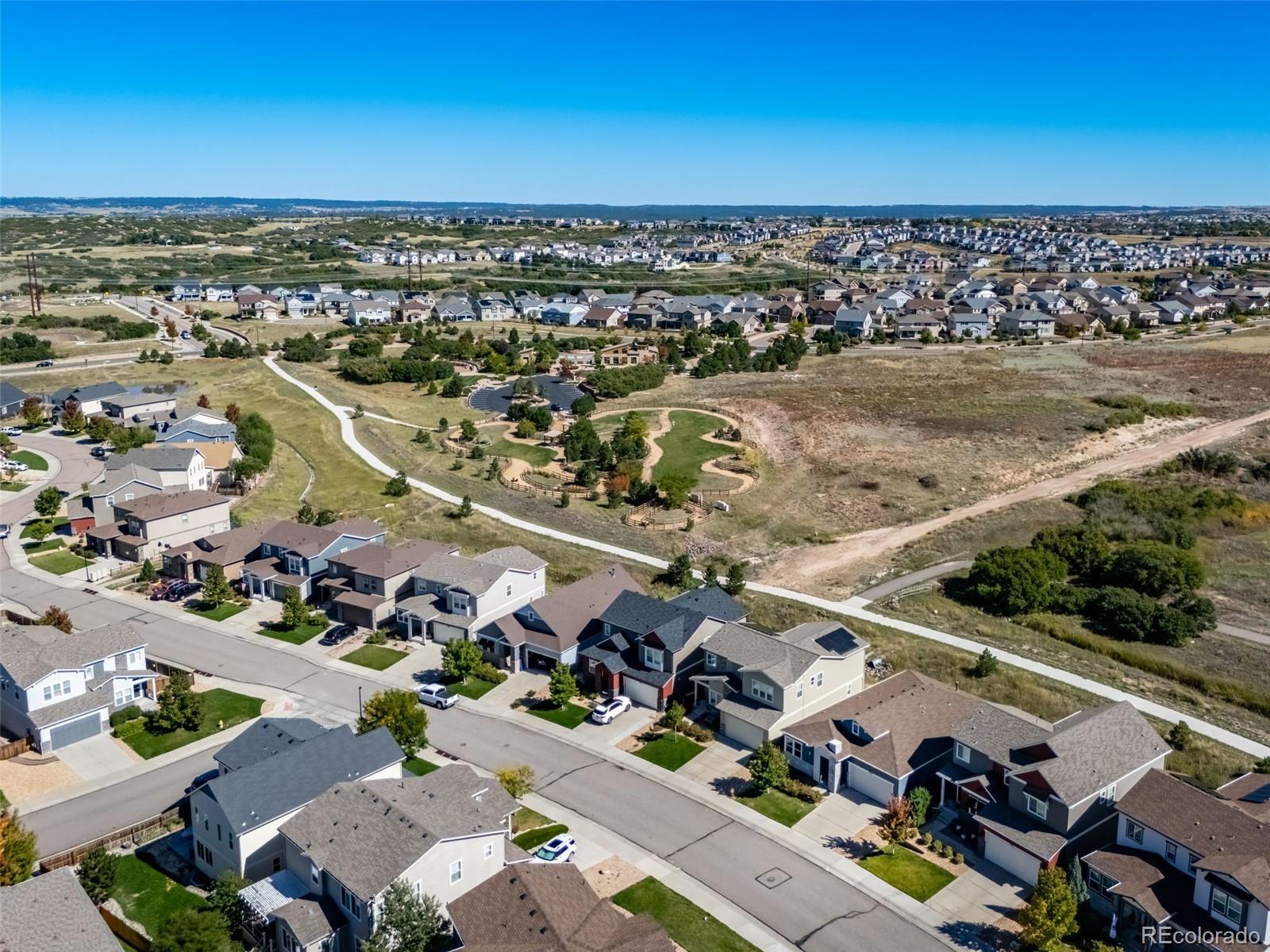 Welcome to your dream home in the highly sought-after Terrain Neighborhood! This gorgeous ranch-style walkout is filled with natural light and backs to highly desirable open space views—giving you the peaceful feel of Colorado living right from your backyard! Your attention will be drawn to the outdoor scenery out back as you enter the home before you fall in love with the layout and thoughtful finishes! Featured in this easy and convenient ranch layout you'll find two spacious bedrooms, each with their own en-suite bathrooms for ultimate privacy and comfort; a dedicated home office—perfect for remote work or study; an expansive open-concept kitchen with craftsmanship level cabinetry, granite countertops and an oversized walk in pantry; a main level laundry room right off the garage for easy access; a large living room with windows which fill the room with that beautiful Colorado sunshine from dawn until dusk, while providing expansive open space views. A cozy fireplace is the perfect gathering space for chilly fall and winter nights. The primary bedroom provides the same stunning views, high ceilings, a spacious walk-in closet, and an oversized walk-in shower. The unfinished basement offers endless possibilities and space for customization—whether you want additional living spaces or just need extra storage. The turfed and landscaped backyard complements the home and provides low maintenance luxury perched above a backdrop of Colorado grassland. Situated in a vibrant community with nearby parks, trails, pools, dog park and top-rated schools. Just minutes from downtown Castle Rock, shopping, and dining. Book your showing today!