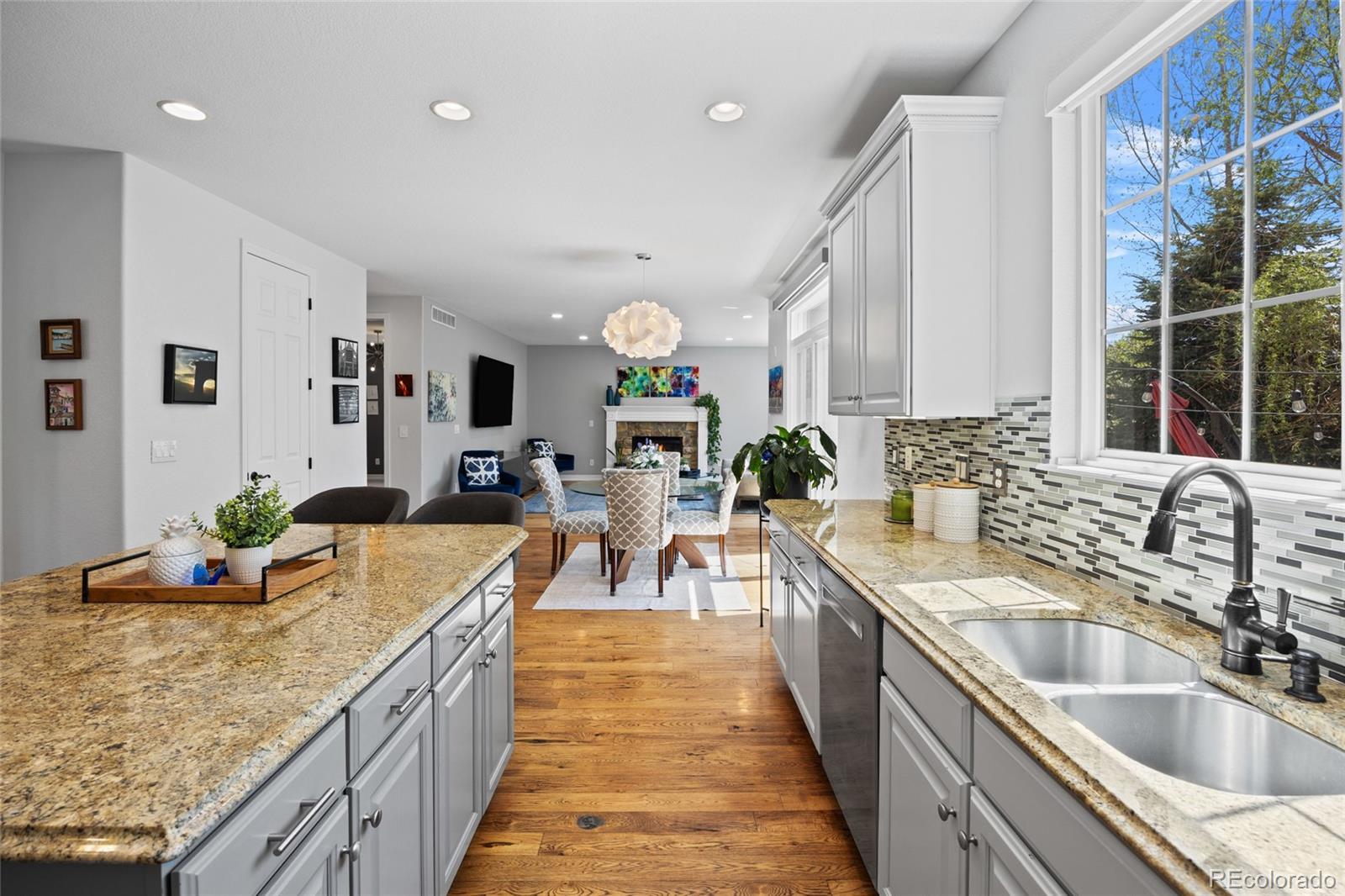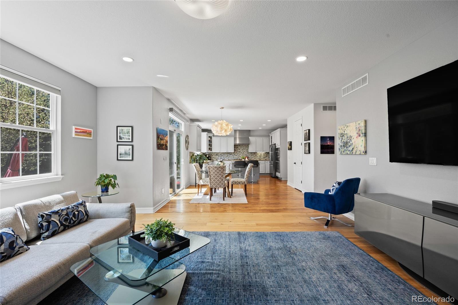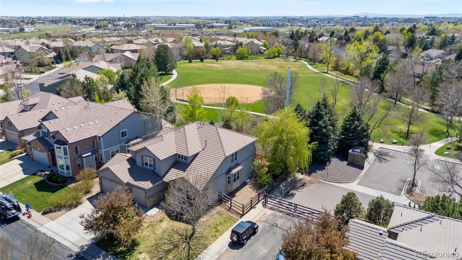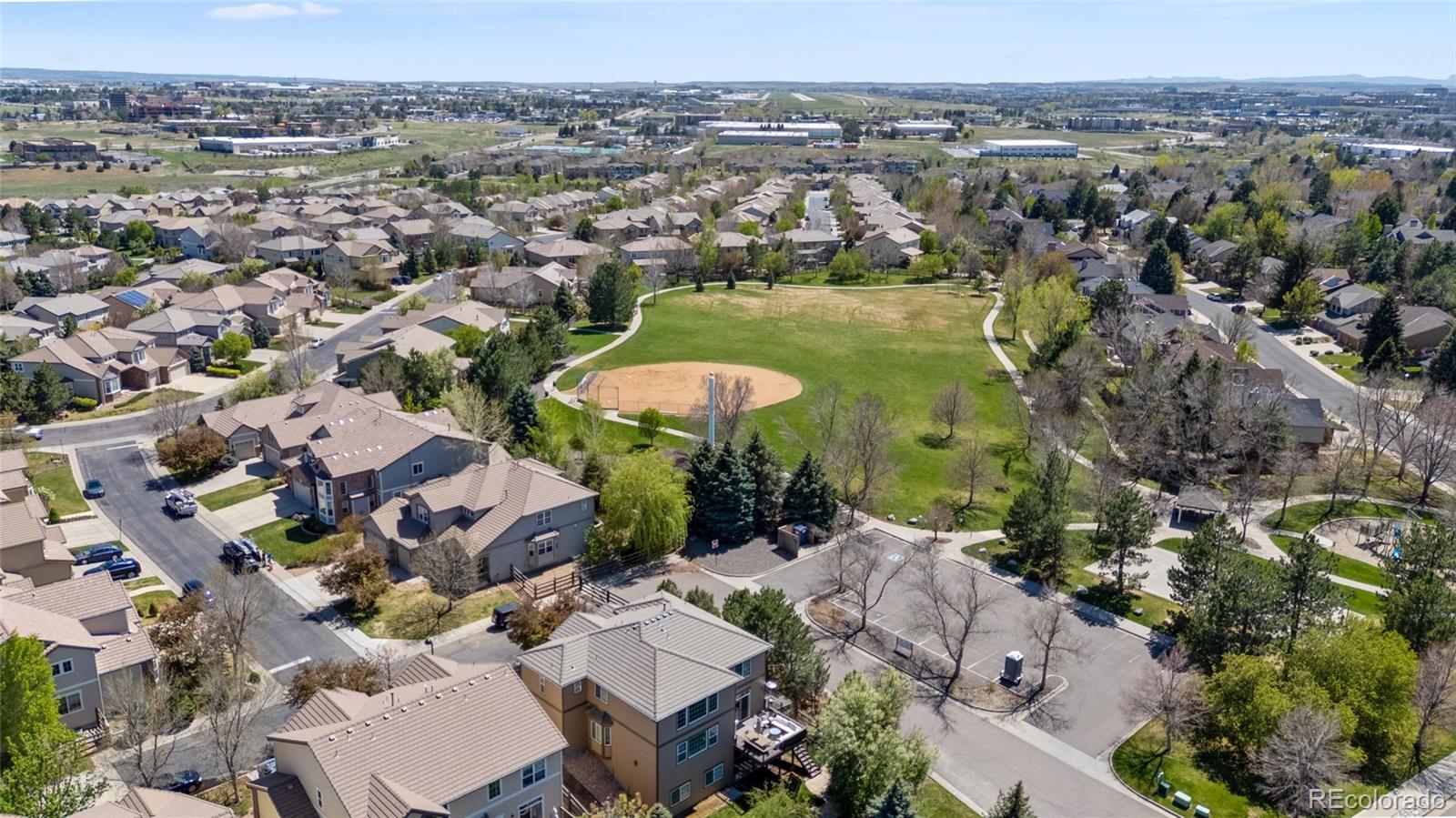 Located in the gated community of The Reserve at Cherry Creek Vista in Greenwood Village, this well-maintained home sits on a private corner lot backing directly to Lakeview Park. The setting offers a rare combination of privacy, open space, and direct access to trails and neighborhood amenities. Inside, the home features hickory hardwood floors, vaulted ceilings, custom lighting, and updated finishes throughout. The kitchen includes granite countertops, a gas cooktop, ample cabinetry, and a generously sized pantry, opening to comfortable living and dining areas designed for everyday use. A main-level study provides flexible space for work or hobbies, while the family room is anchored by a custom fireplace surround. The finished basement adds valuable versatility with a full bathroom and built-in Murphy bed, ideal for guests, entertaining, or additional living space. Outdoors, the professionally landscaped backyard includes a fire pit and direct access to Lakeview Park, creating an extension of the home’s living area. Residents enjoy close proximity to the community pool, tennis courts, playground, and highly regarded Cherry Creek schools. Conveniently located near Cherry Creek Reservoir, the Denver Tech Center, shopping, dining, and major commuting routes, this property offers a desirable balance of location, layout, and outdoor connection.